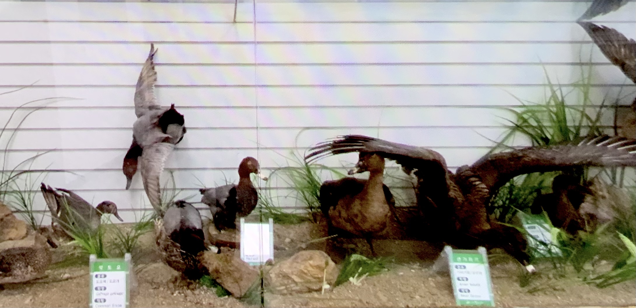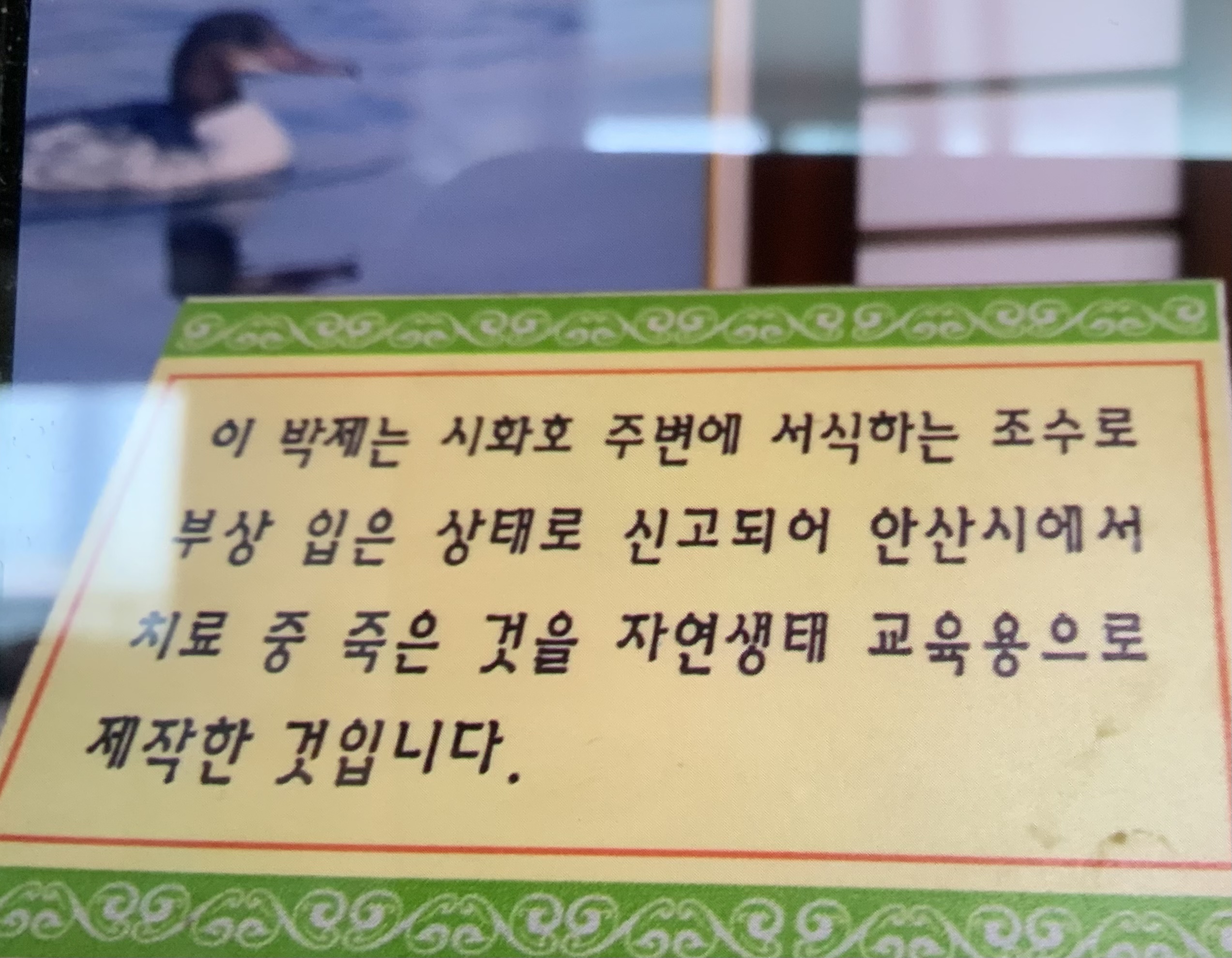 이 박제품은 시화호 주변 부상으로 치료 받다 죽은 조수들을