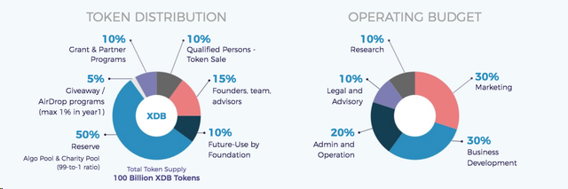 - Token for sale 10,000,000,000 XDB (10%)