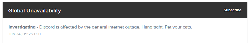 Discord is down. Looks like cloudflare is having a wide spread outage. Even drugwars.io is having problems loading.