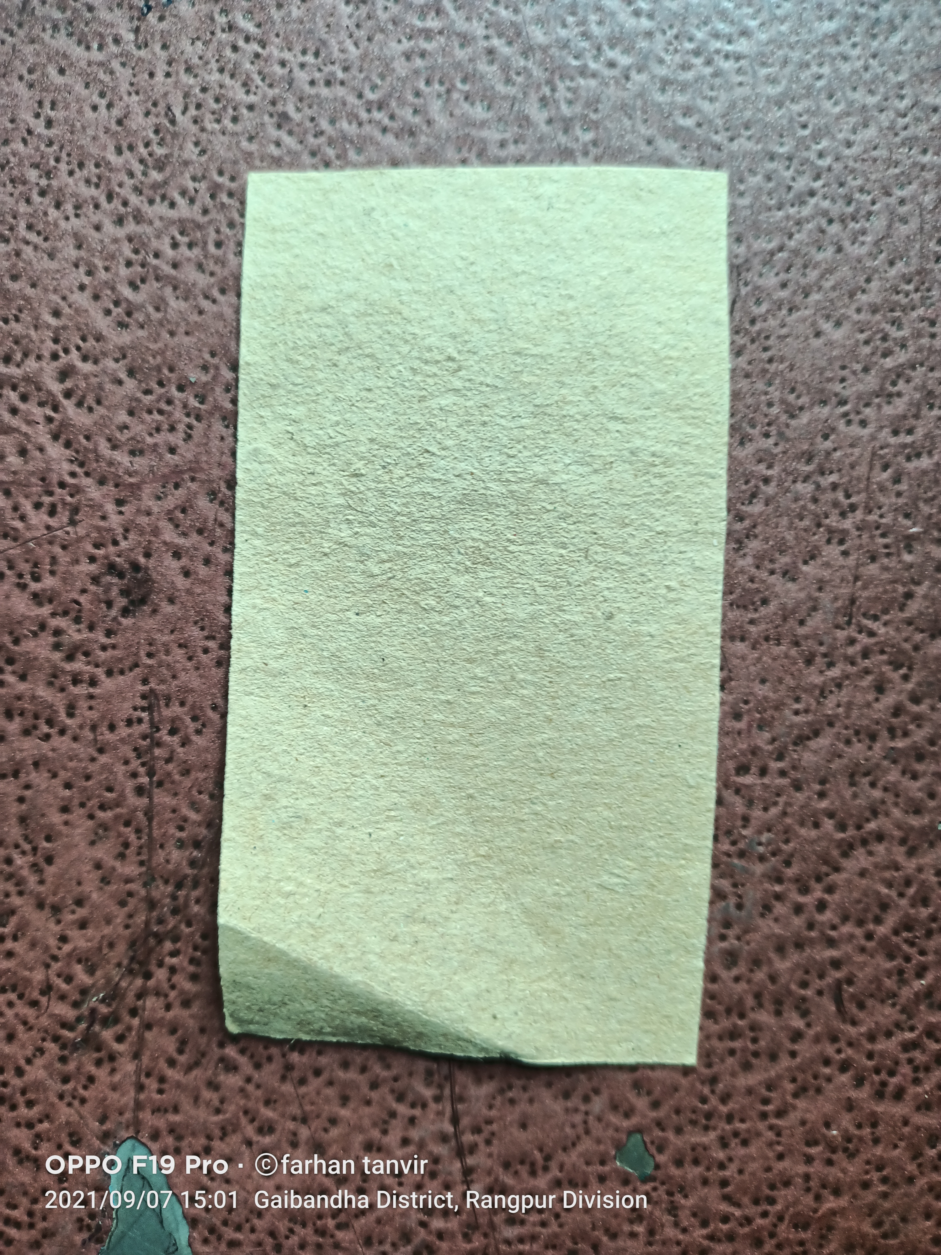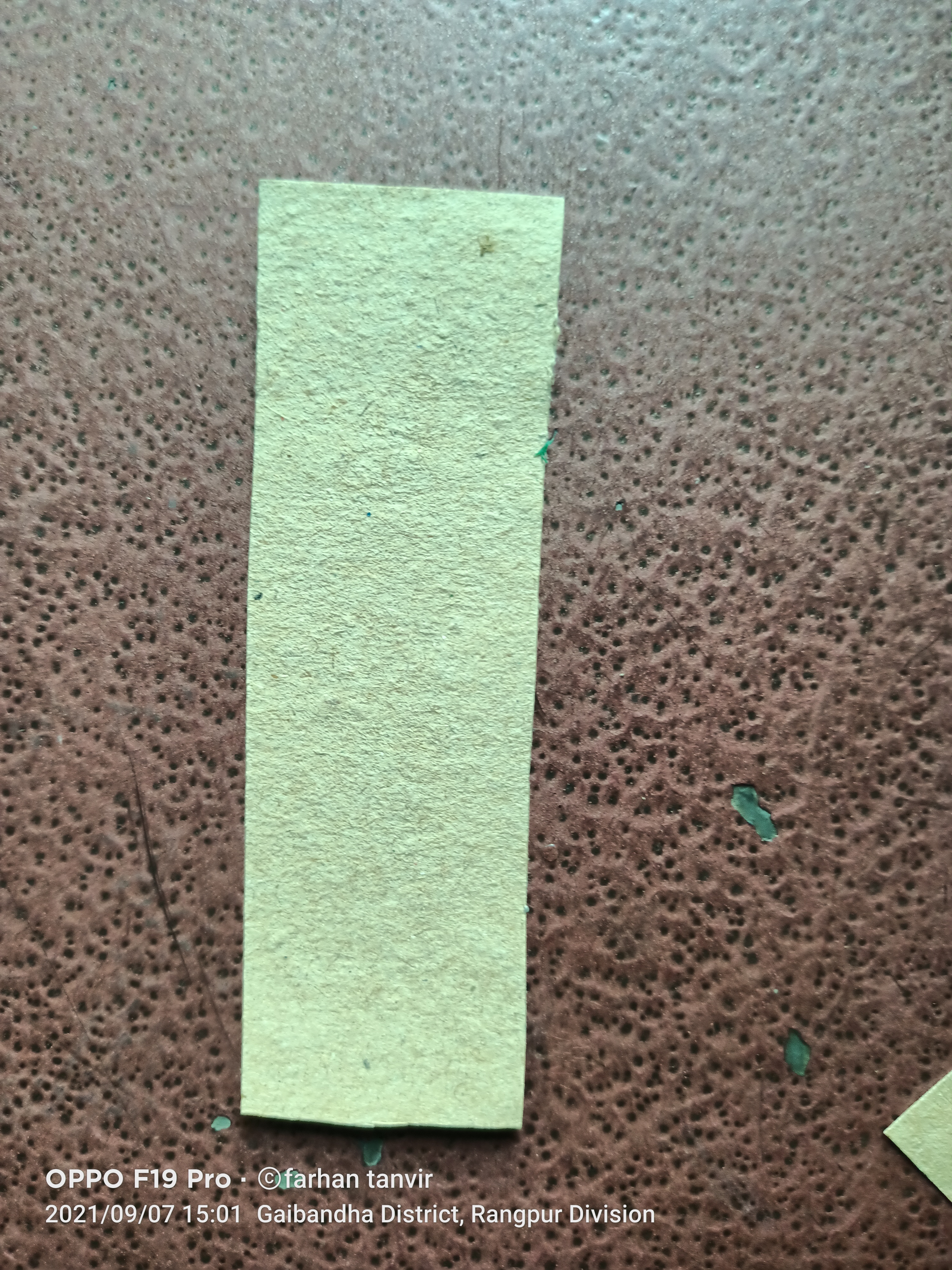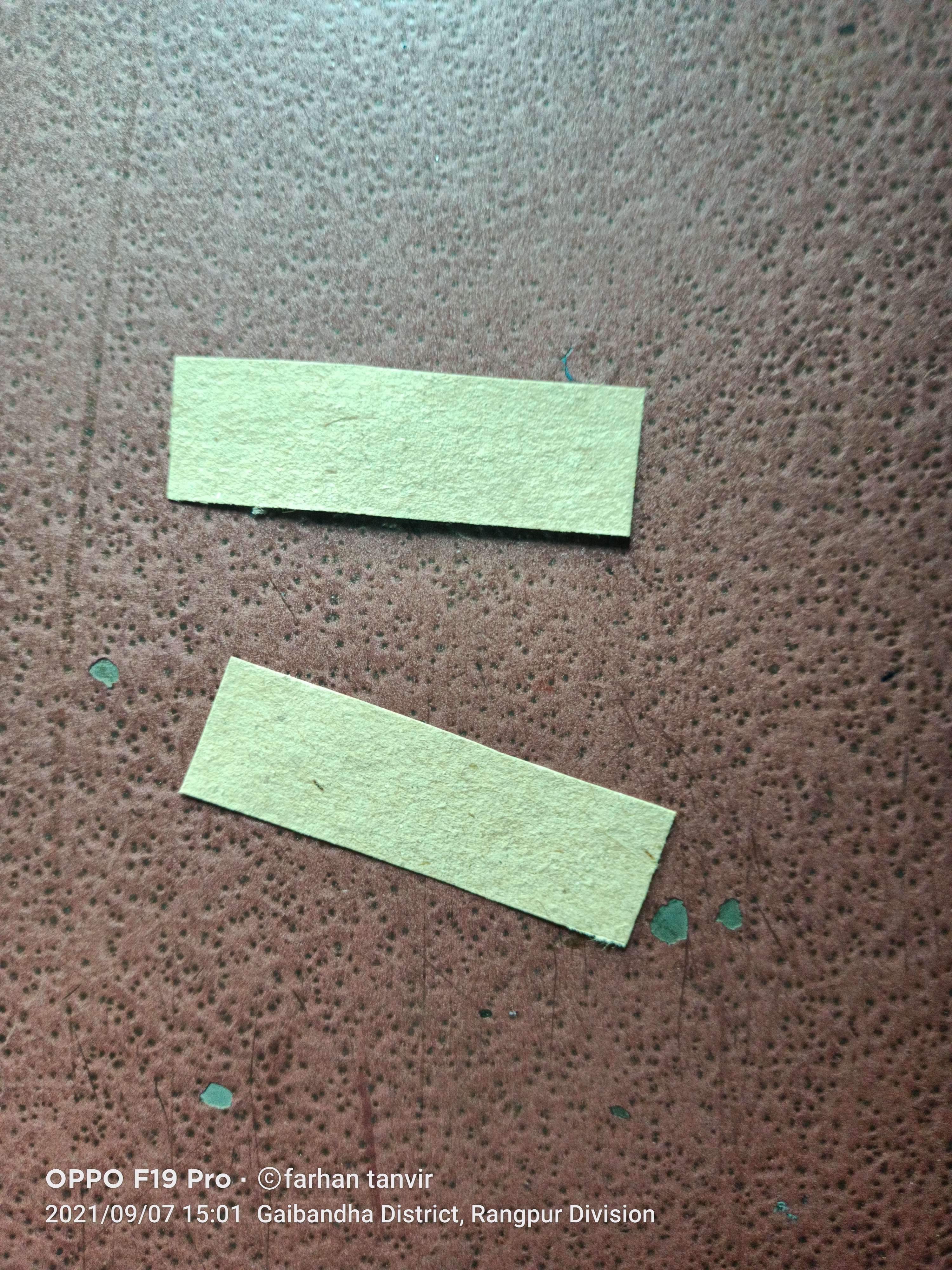 সর্বপ্রথম মোটা কাগজটিকে সুবিধামতো মাপ অনুযায়ী কেটে নিতে হবে।কেটে নেওয়া কাগজের দৈর্ঘের মাপ অনুযায়ী আরেকটি কাগজ কেটে নিতে হবে কিন্তু প্রস্থ আগেরটার থেকে কম রাখতে হবে।এবার প্রথমে কাটা কাগজের প্রস্থের মাপ অনুযায়ী দুইটি কাগজ কেটে নিতে হবে কিন্তু দৈর্ঘ্য হবে আগেরটা থেকে অনেক কম।