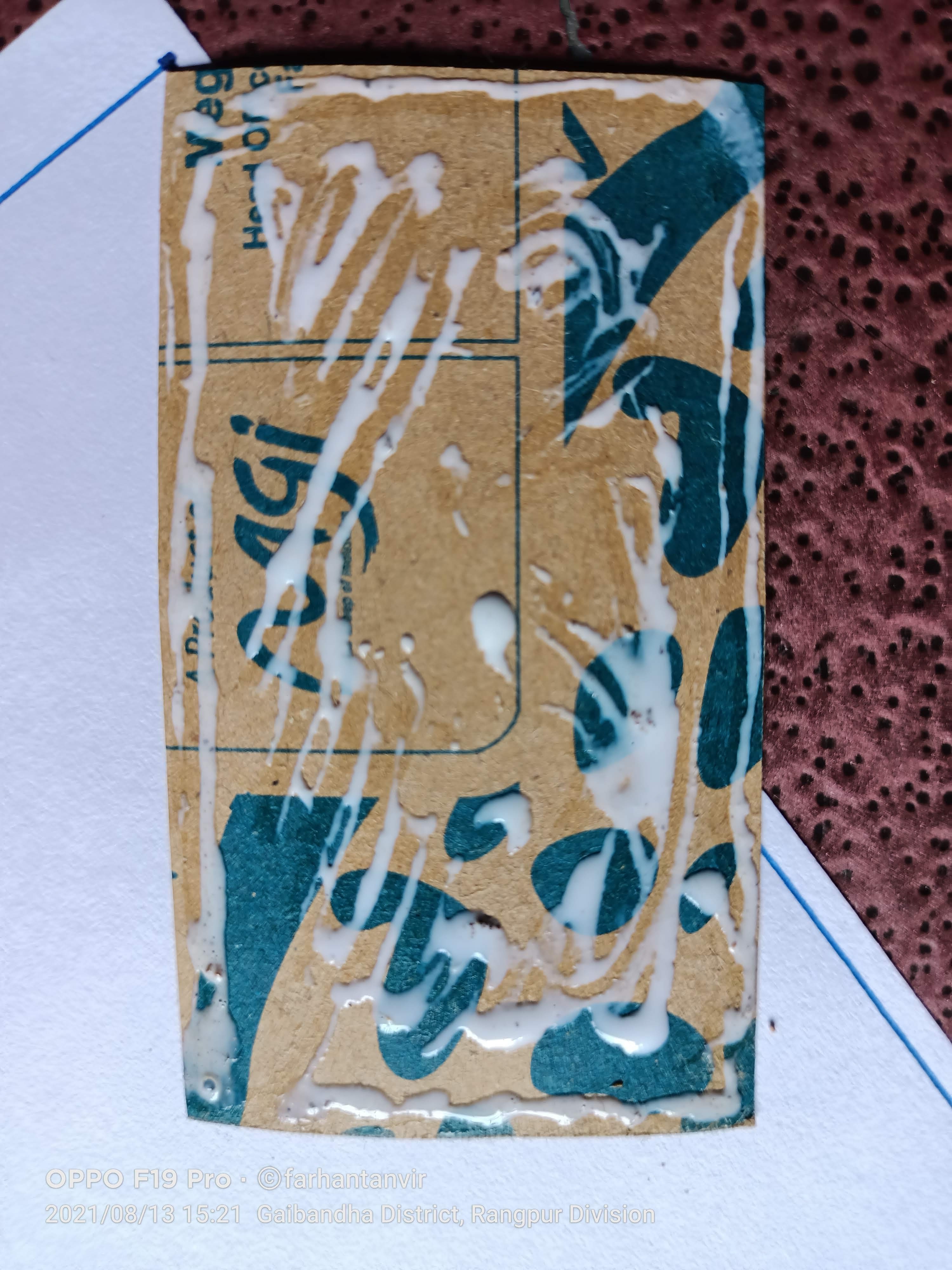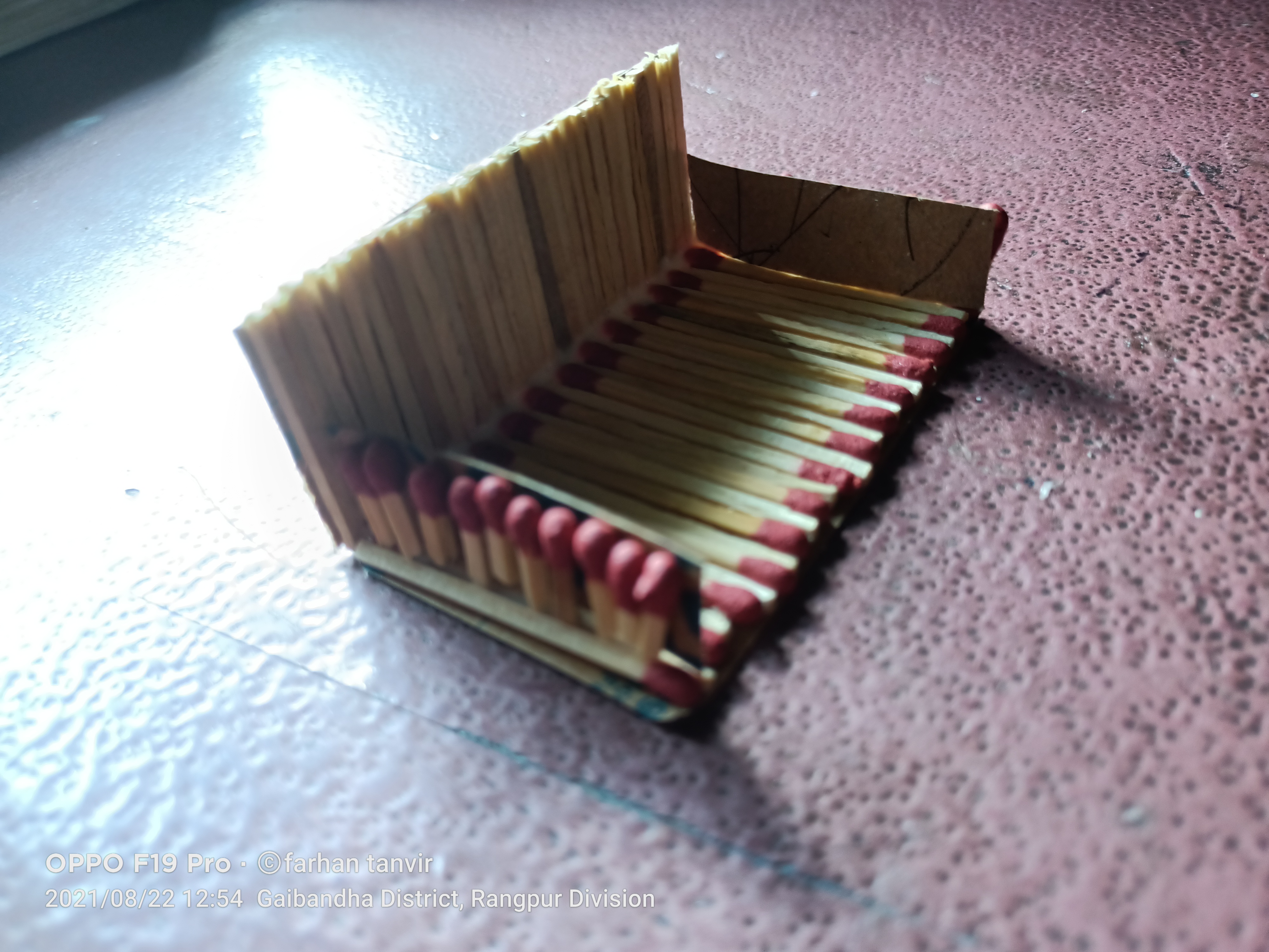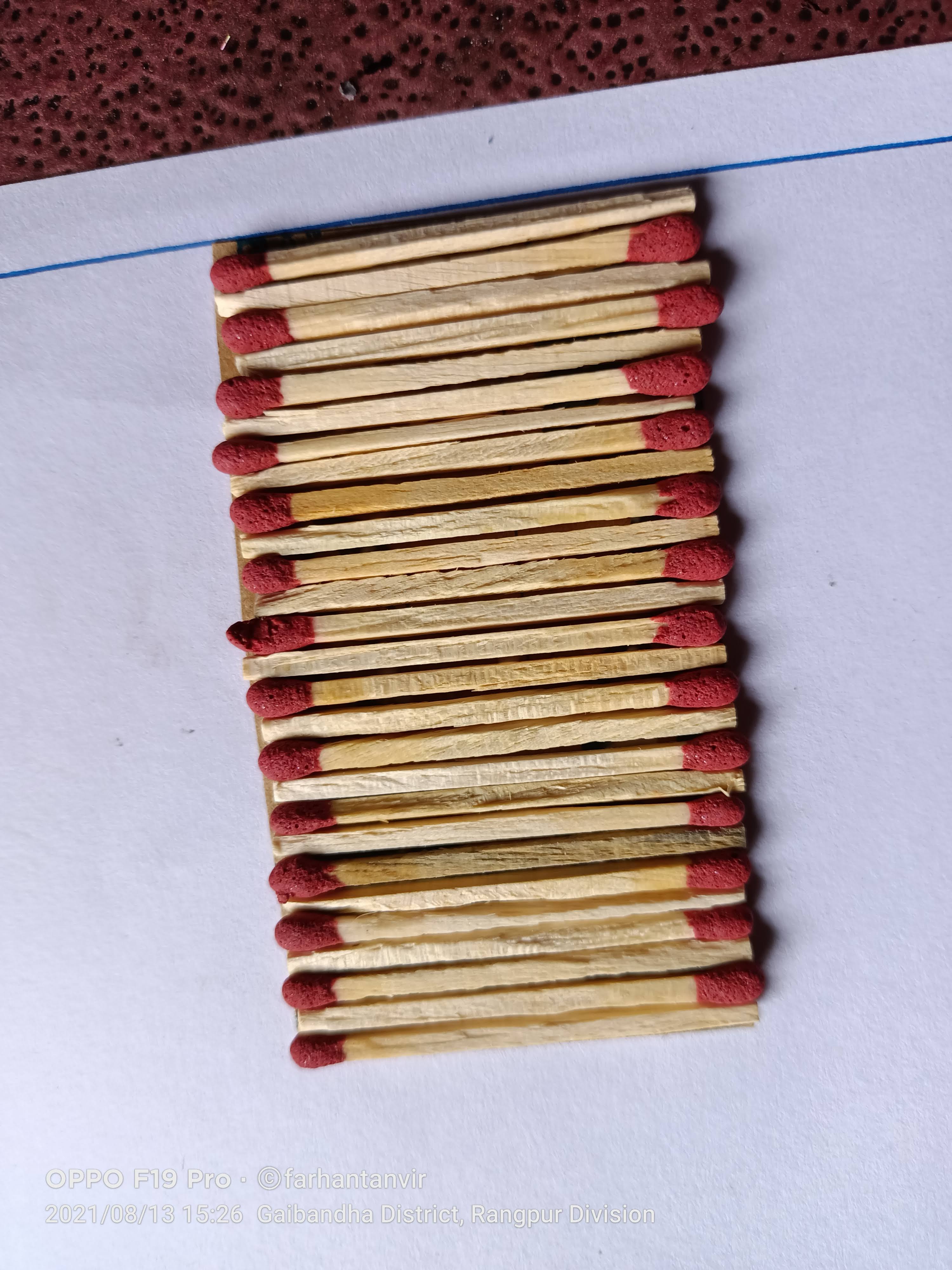 কেটে নেওয়া চারটি কাগজের উপরই এবার ফেভিকল লাগিয়ে নিয়ে দিয়াশলাই কাঠি আটকে দিতে হবে।