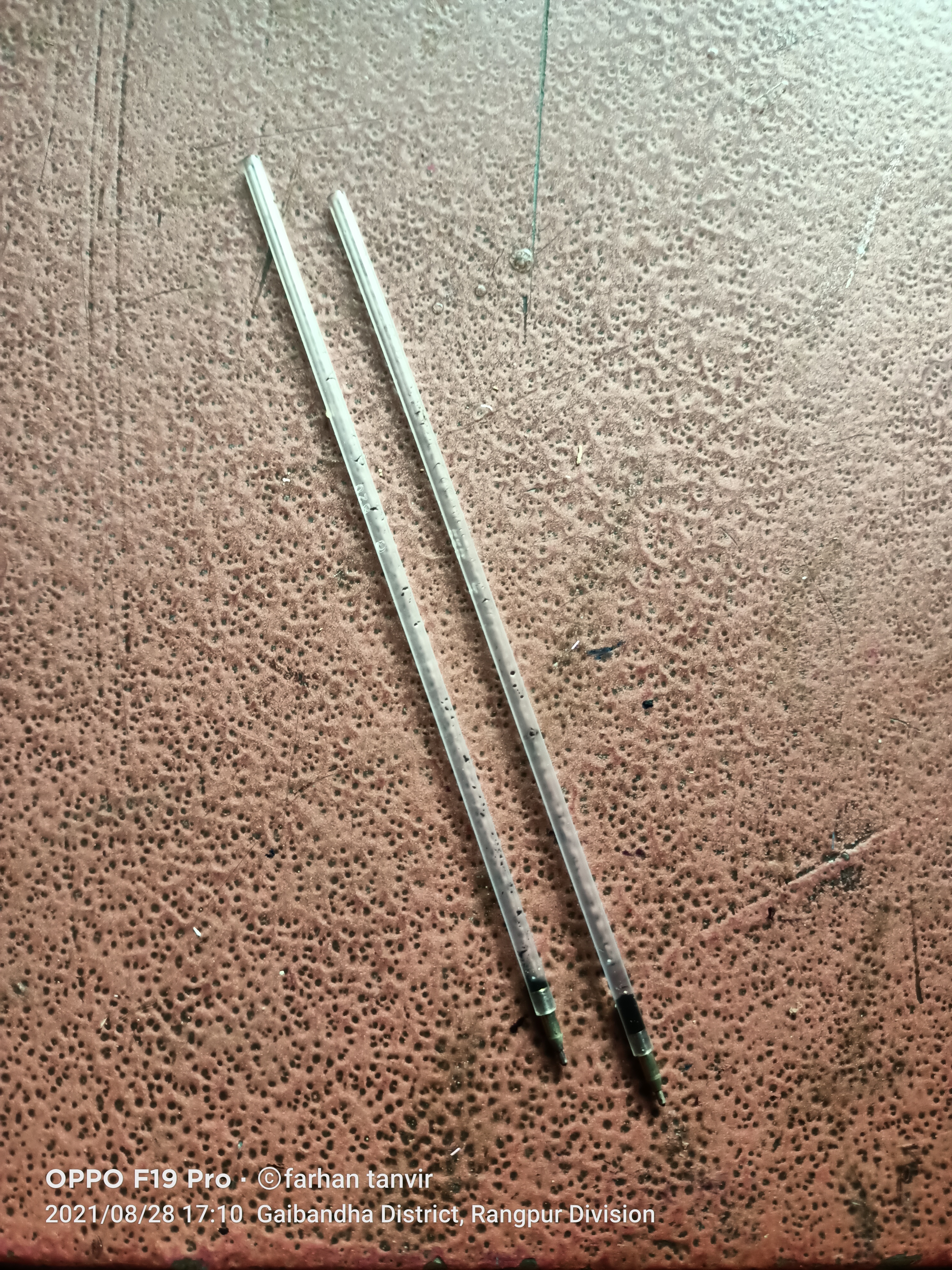 এবার কলমের শিষটিকে একটি কাগজ দিয়ে মুড়িয়ে নিয়ে কাঠি দিয়ে বানানো এ আকৃতির অংশ দুটির মাঝে ঢুকিয়ে দিতে হবে।