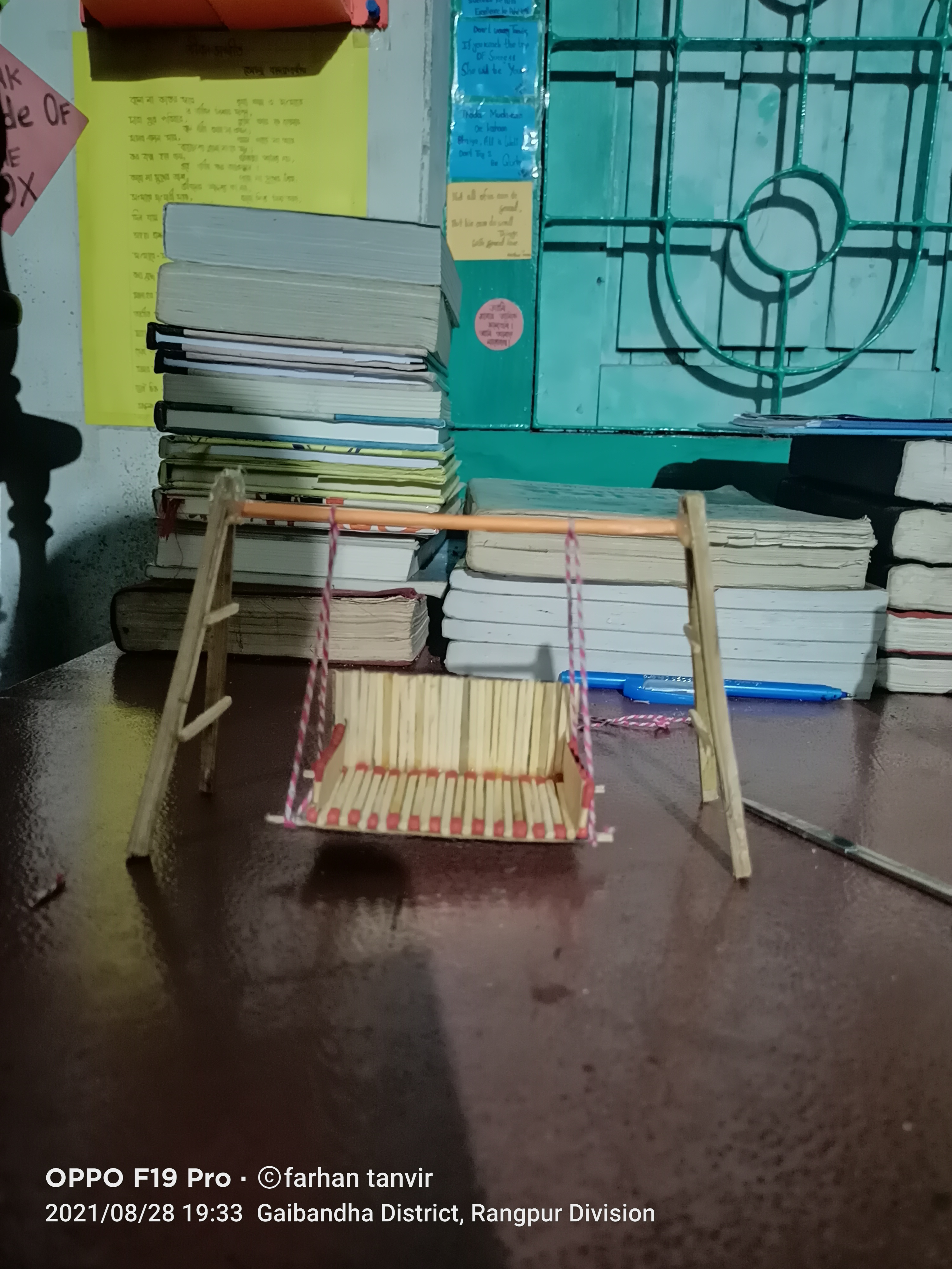ক্রাফটের নামঃদিয়াশলাই কাঠি দিয়ে দোলনা তৈরি।