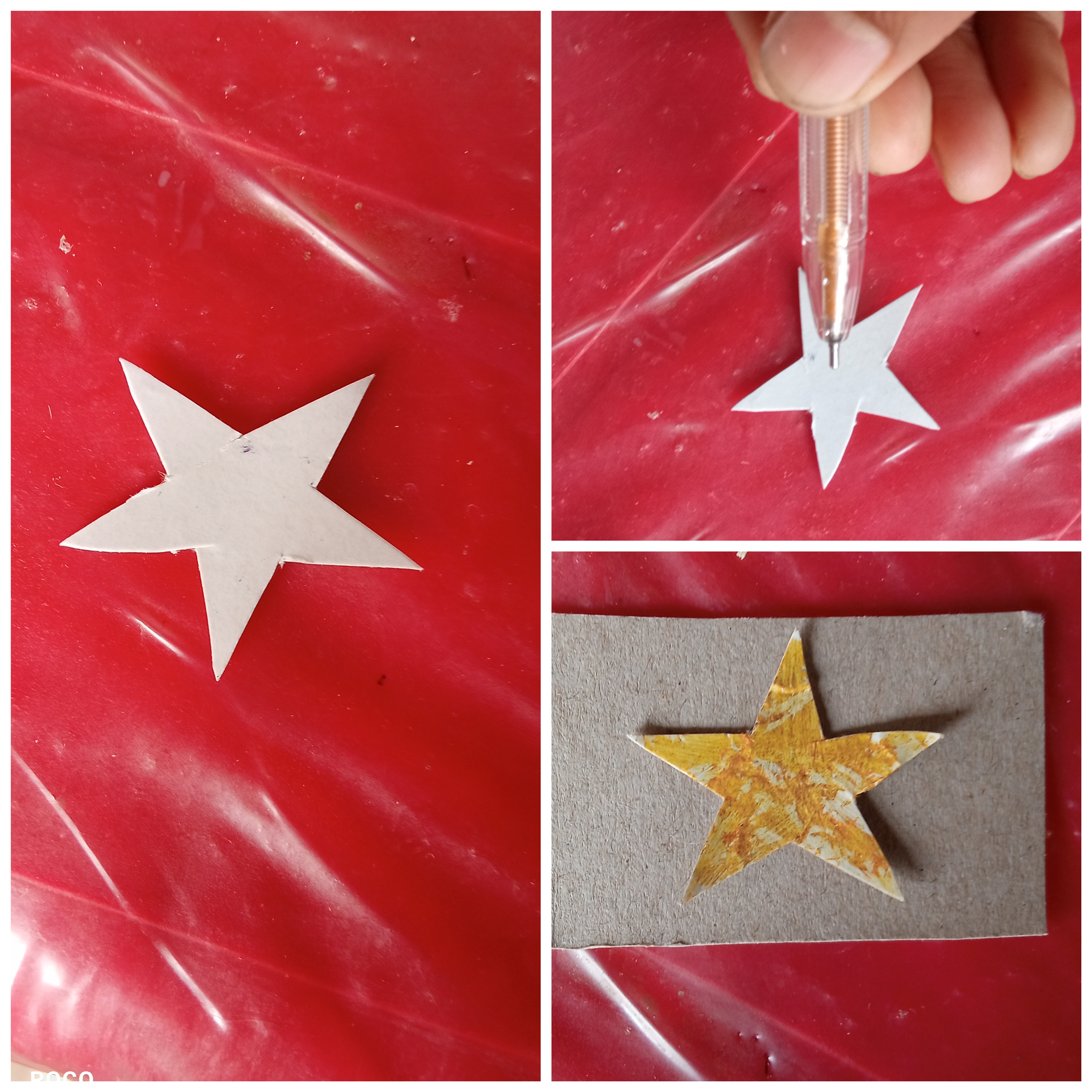 ◆এইবার কেচি দিয়ে একটা স্টার চিহ্ন তৈরি করে নিলাম কাগজ কেটে।