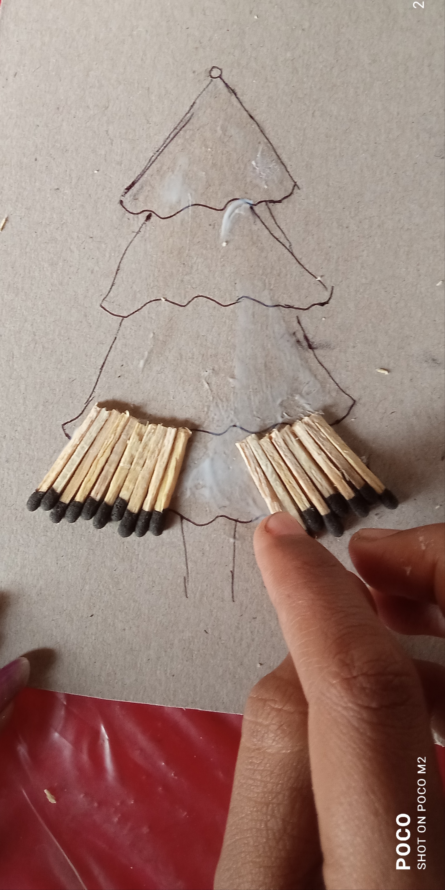 ◆গাছটি প্রায় সম্পূর্ণ হওয়ার পথে।আমি এখানে কাঠিগুলির কালো অংশ এলোমেলো ভাবে সাজিয়ে নিয়েছি।