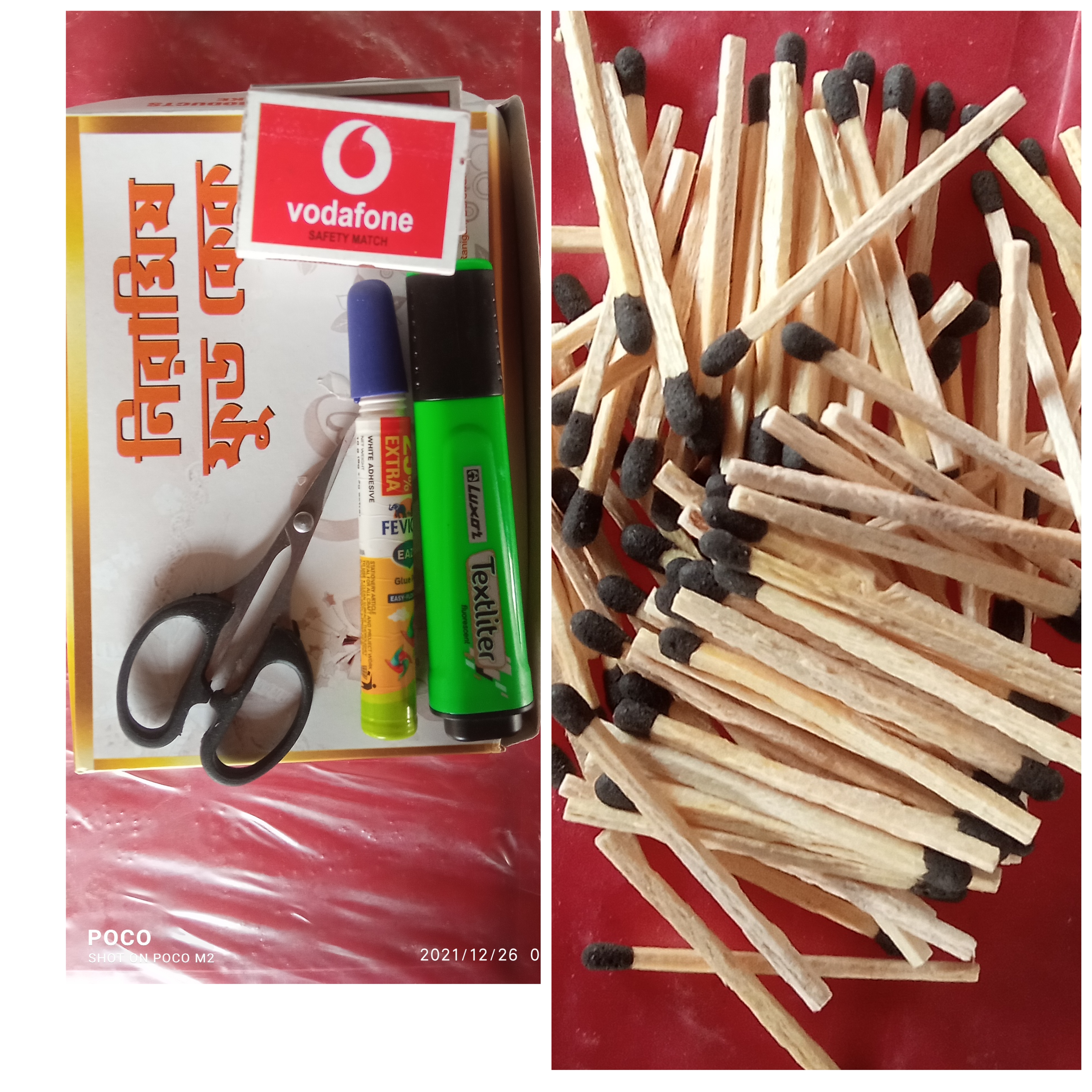 ◆প্রথমে আমি প্রয়োজনীয় উপকরণগুলি নিয়ে নেব দেশলাই কাঠিসহ।