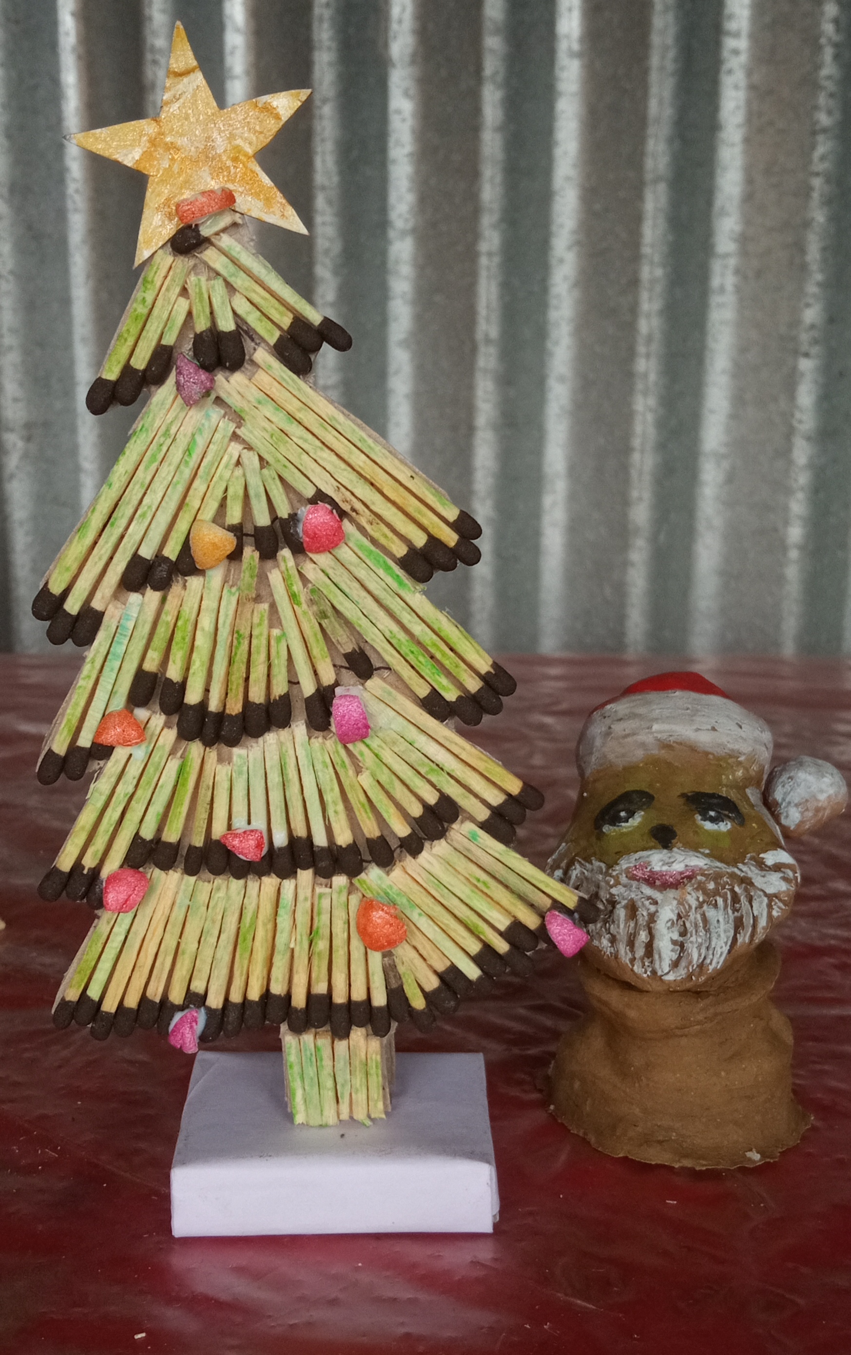 ◆আমার তৈরি মাটির স্যান্টা-ক্লজের মুখের ভাস্কর্যটি বসিয়ে দিলাম ক্রিসমাস ট্রির পিছনে।