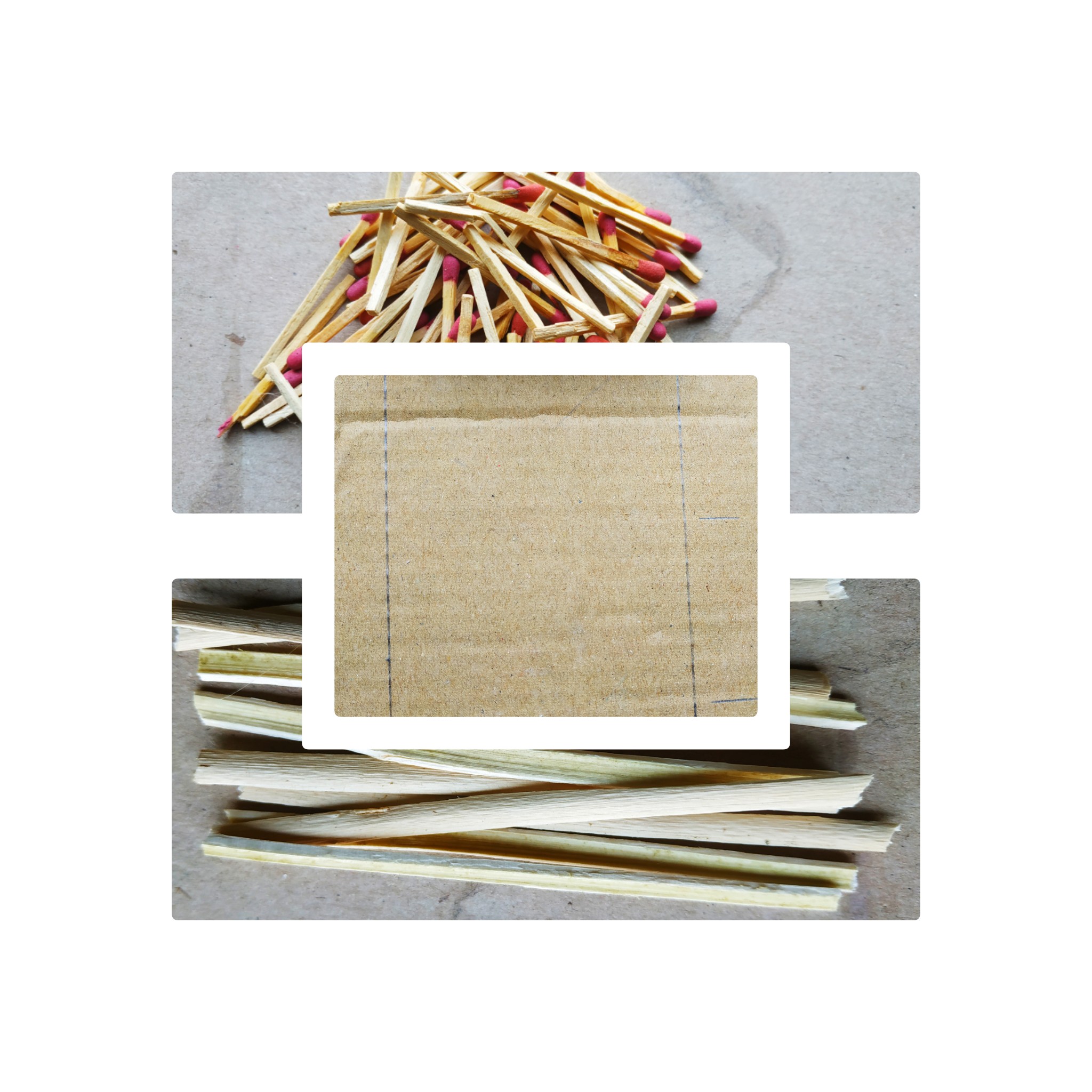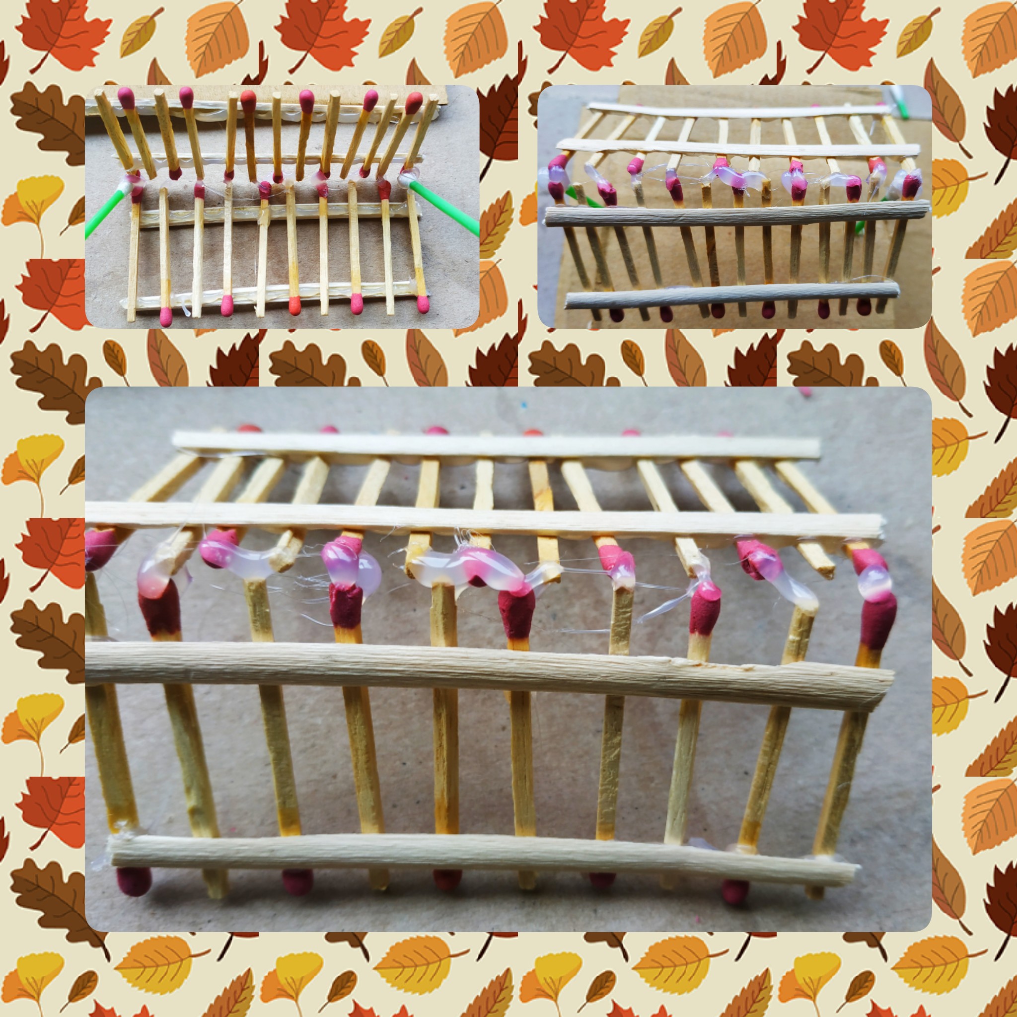 প্রয়োজনীয় উপাদান হিসেবে প্রথমে আমি বেছে নিয়েছি কিছু ম্যাচের কাঠি, টুকরো পাটকাঠি,এবং কাটুন সাথে ছিল কিছু পুতি। |