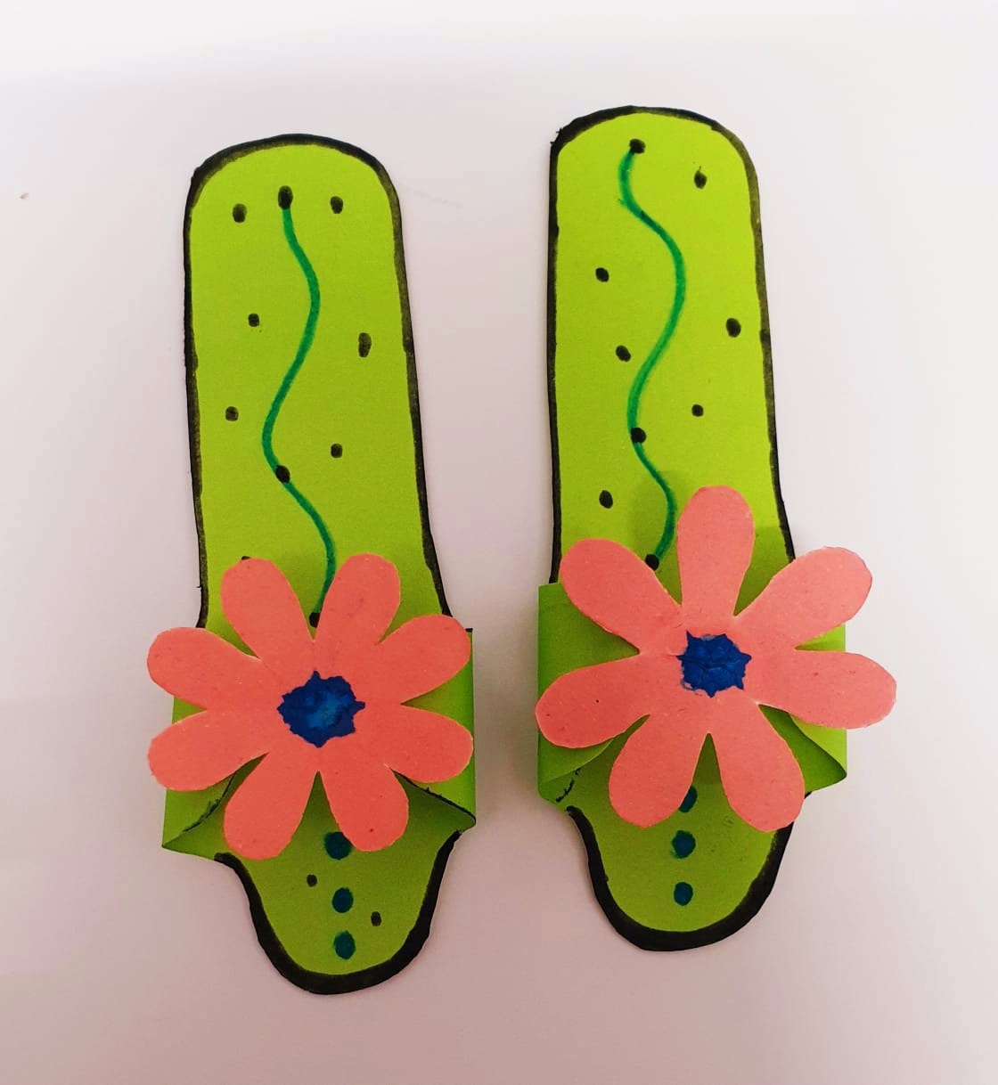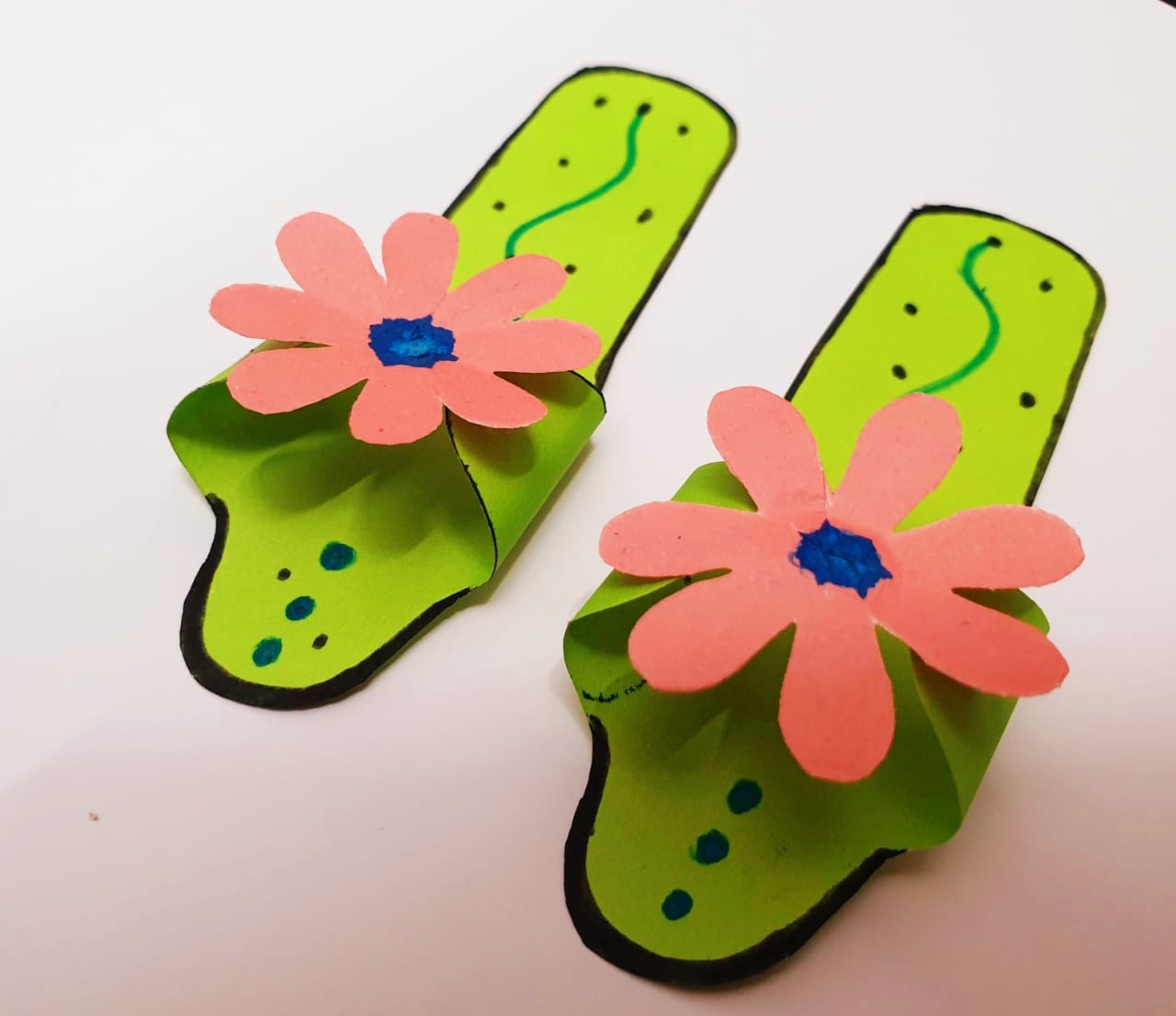 এরপর বিভিন্ন রঙের মার্কার পেন দিয়ে ডিজাইন করে নিলাম। আর এভাবেই জুতা দুটি তৈরি করে নিলাম। দেখতে সত্যিই খুব সুন্দর লাগছে।