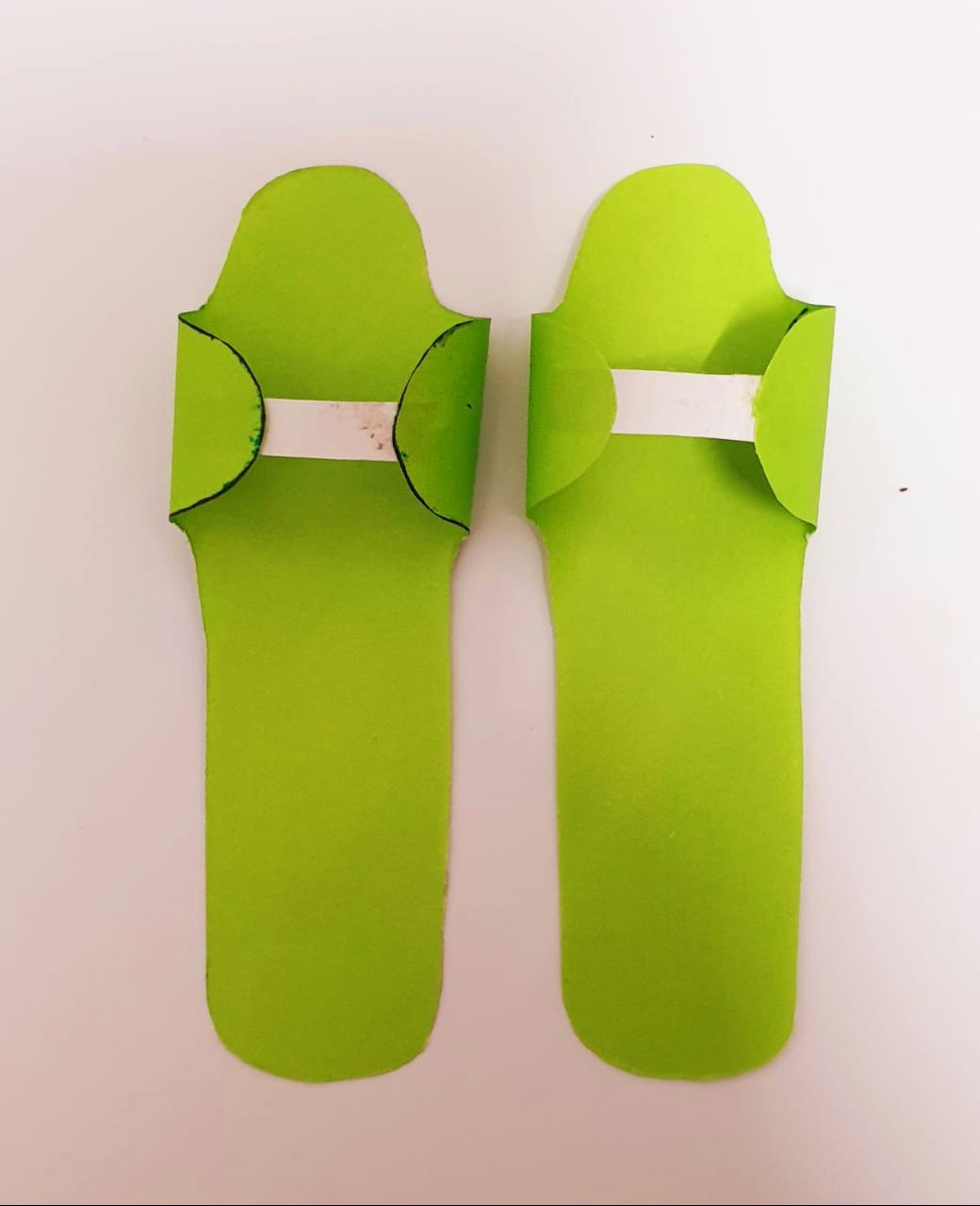 এরপর সাদা কাগজ কেটে,চিত্রের মতো করে আঠা দিয়ে লাগিয়ে নিলাম জুতার আকৃতি গুলোর সাথে।