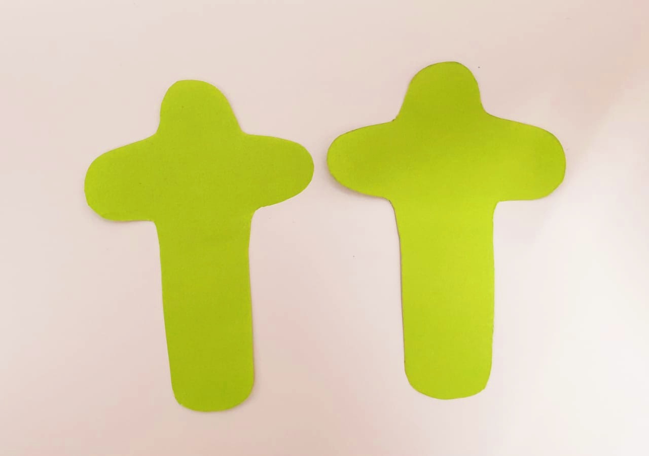 তারপর দাগ অনুযায়ী কাঁচি দিয়ে কেটে জুতার আকৃতি তৈরি করে নিলাম।