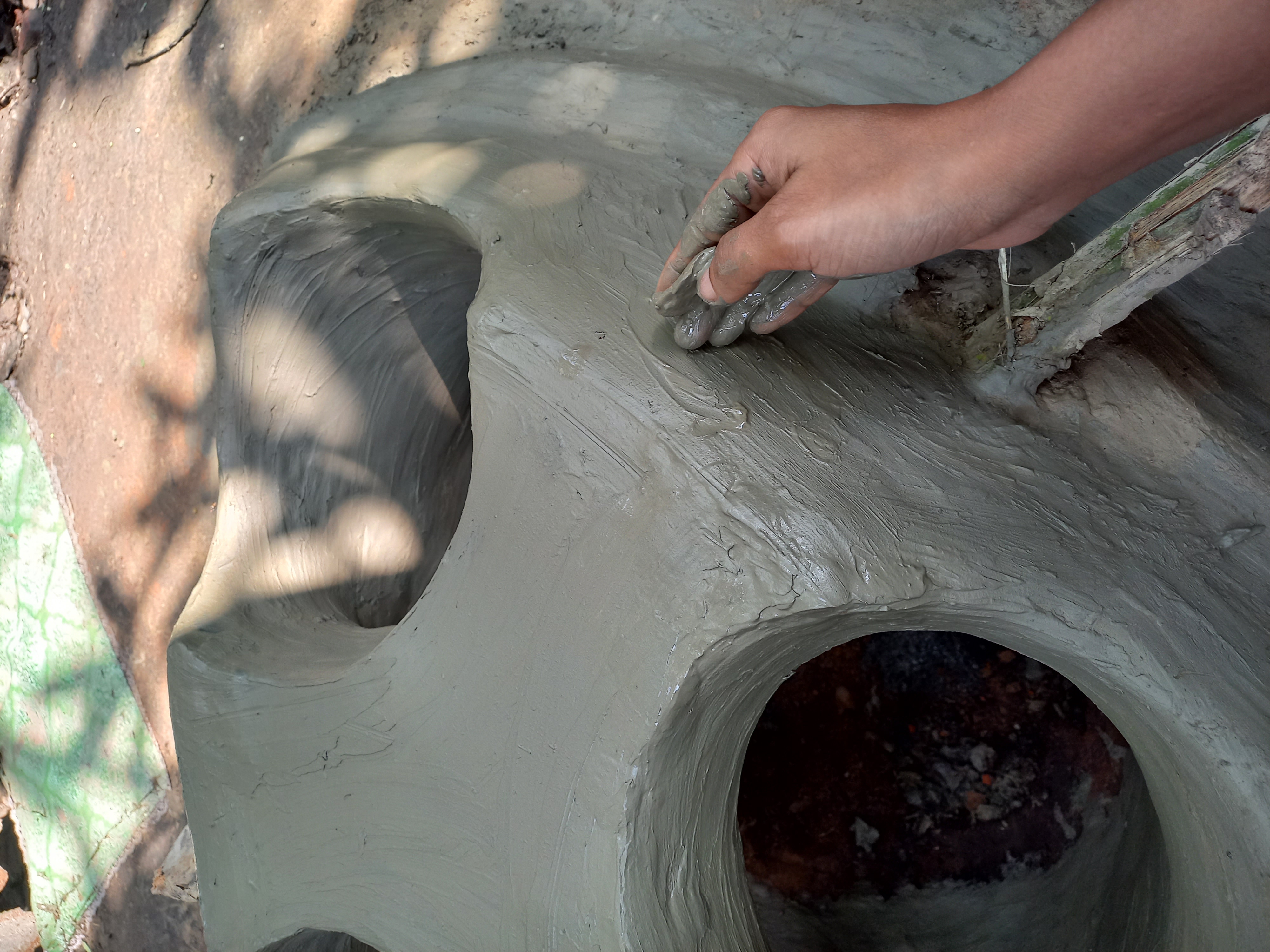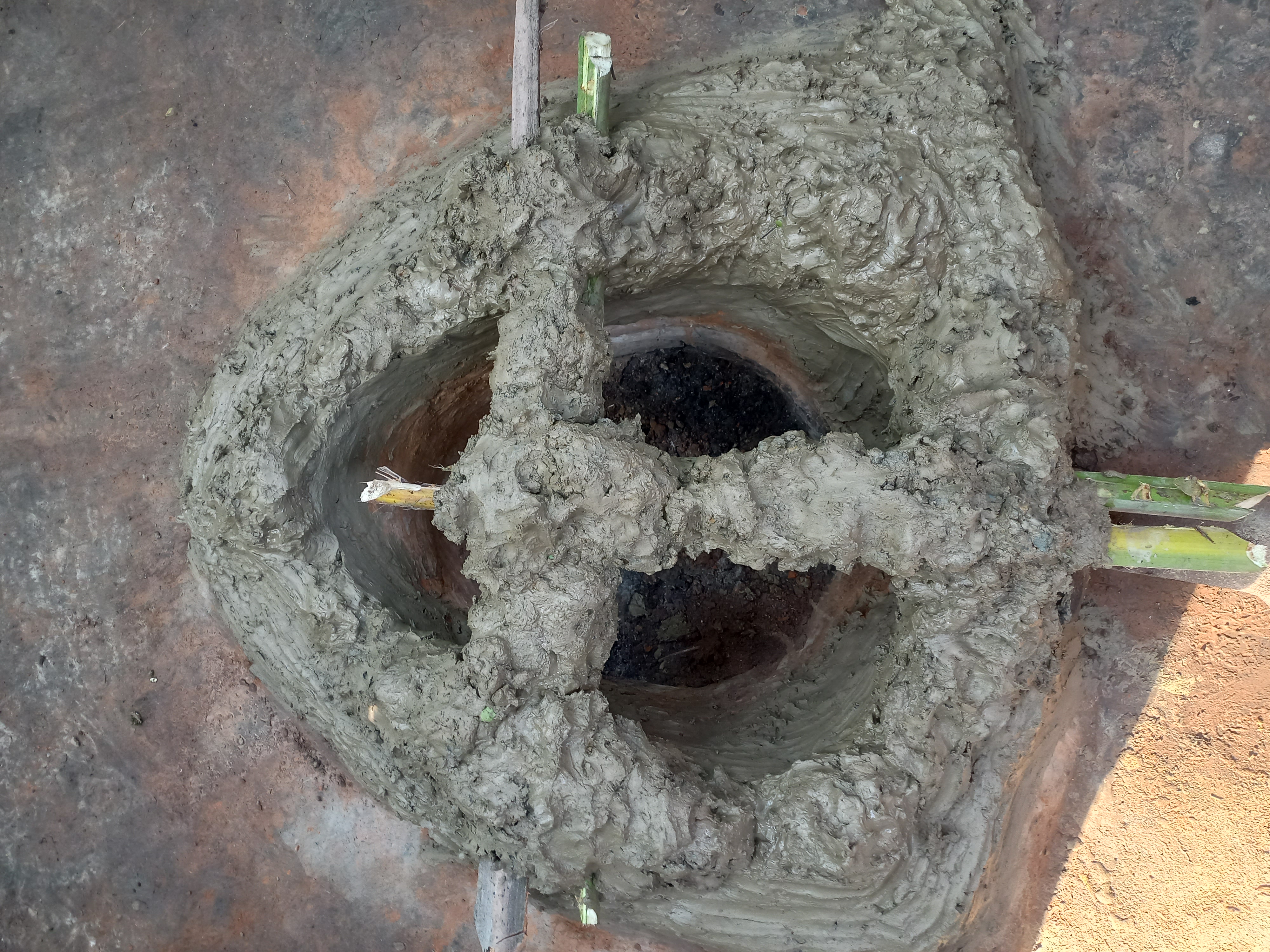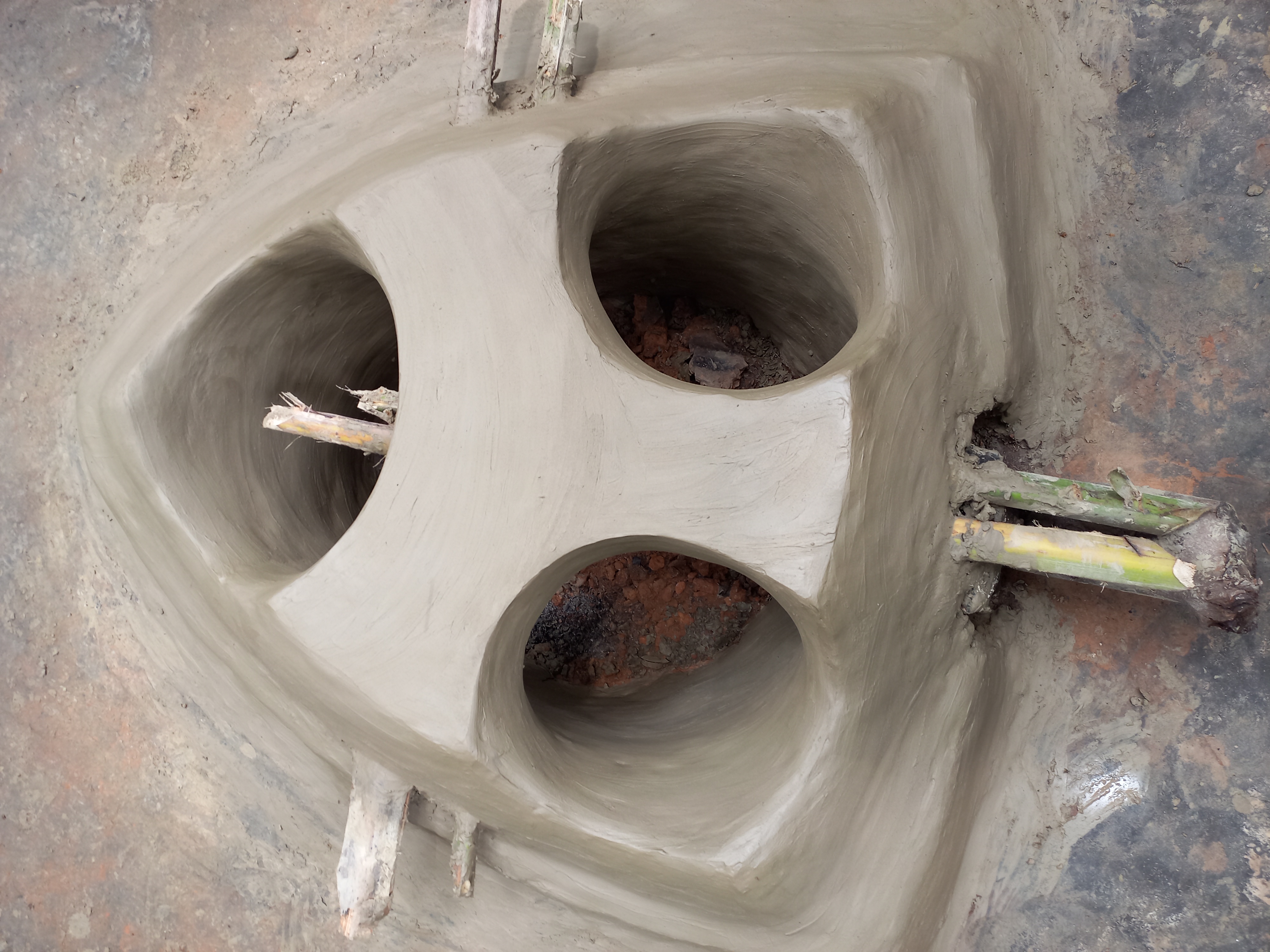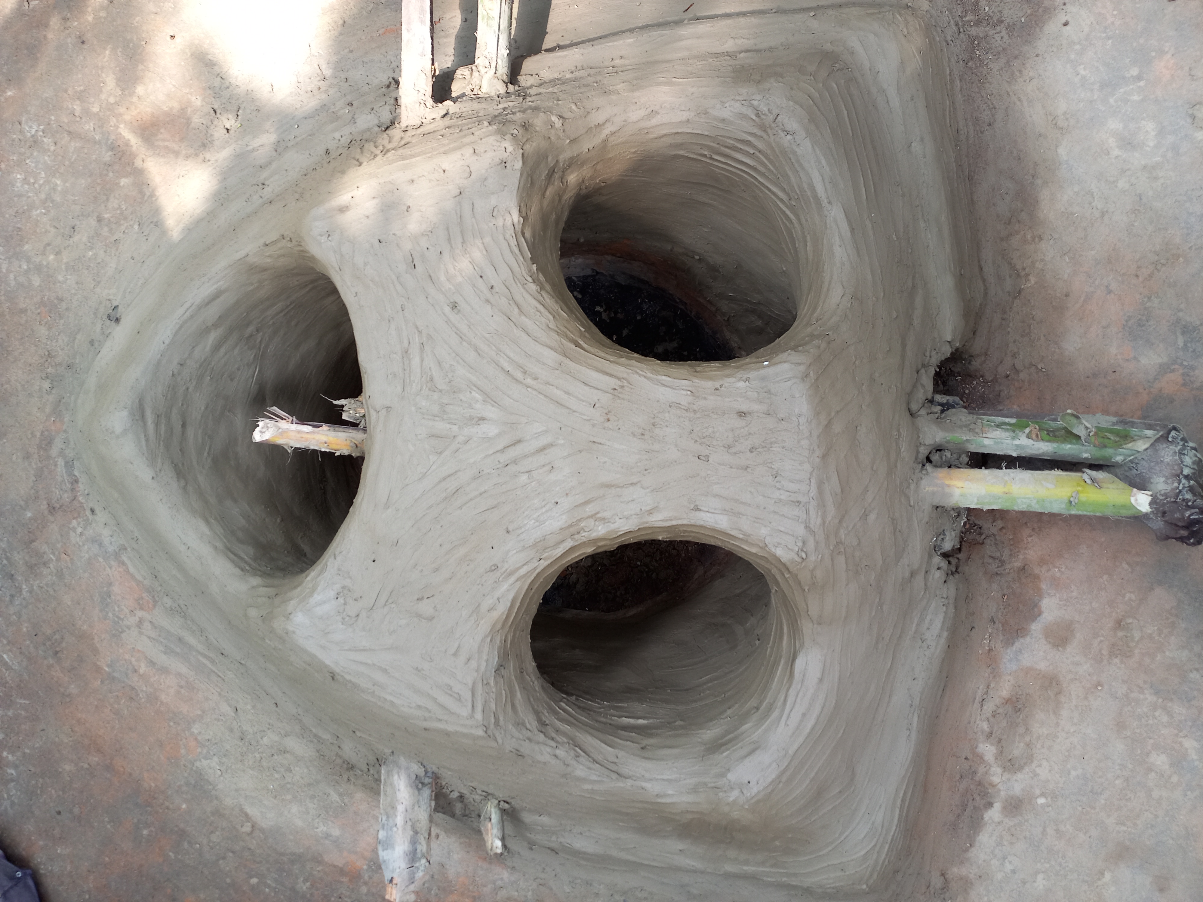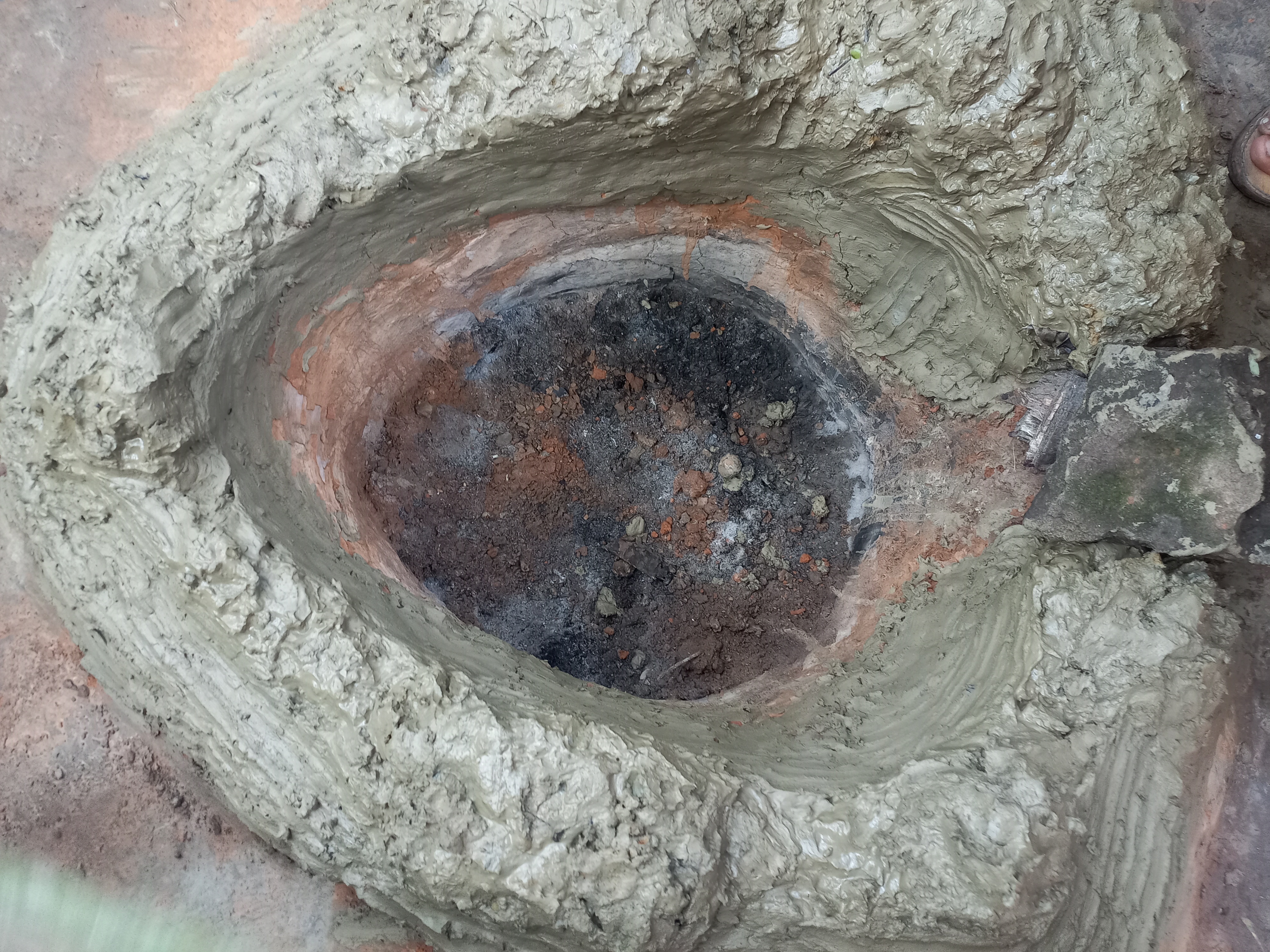 আমরা যেখানে চুলাটি বানাবো সেখানে আগে একটি চুলা ছিল তাই গর্ত তৈরি করতে হয়নি। এবার চুলাটির তিন পাশে মোটা করে মাটি দিয়ে দিতে হবে।