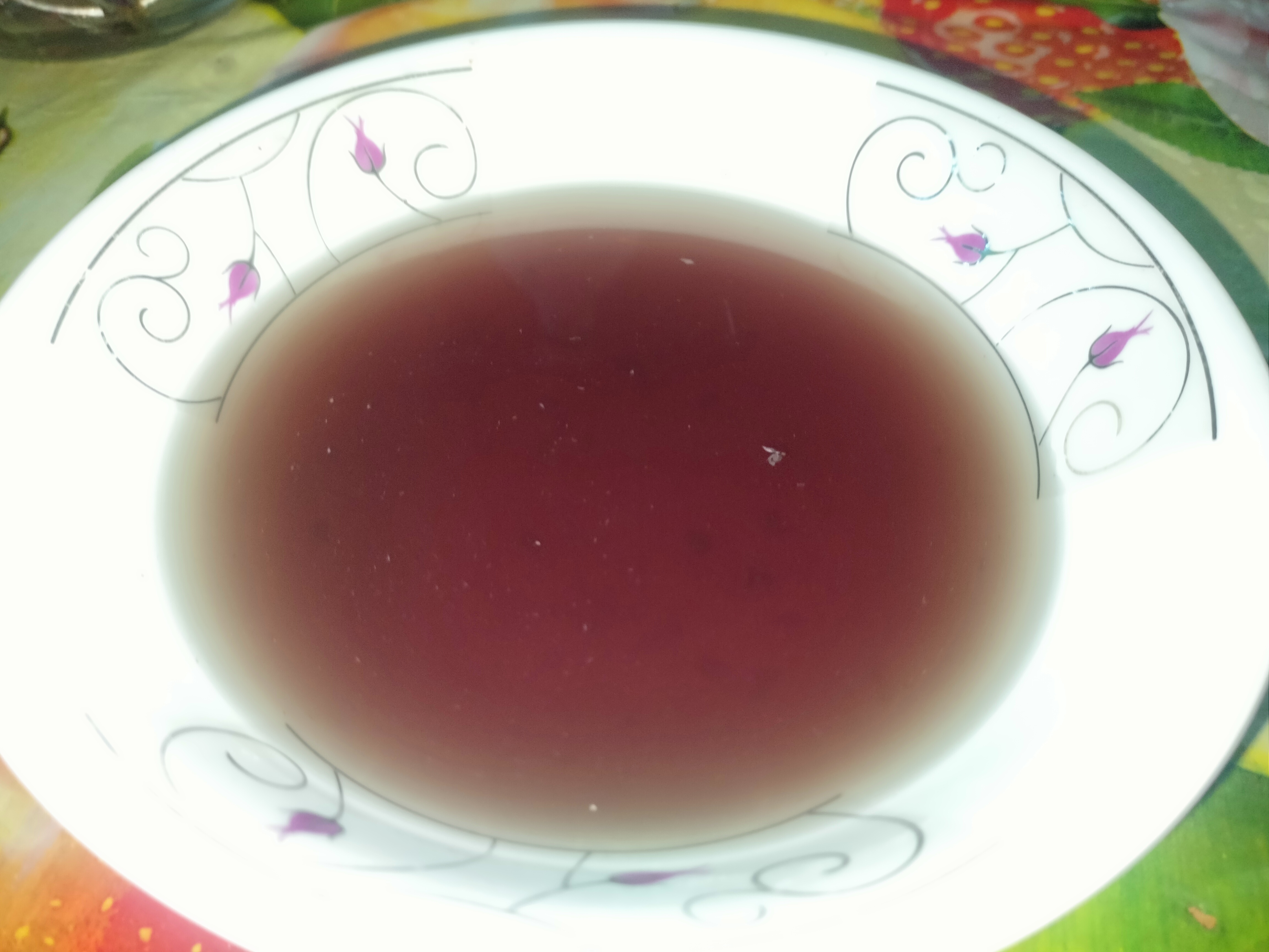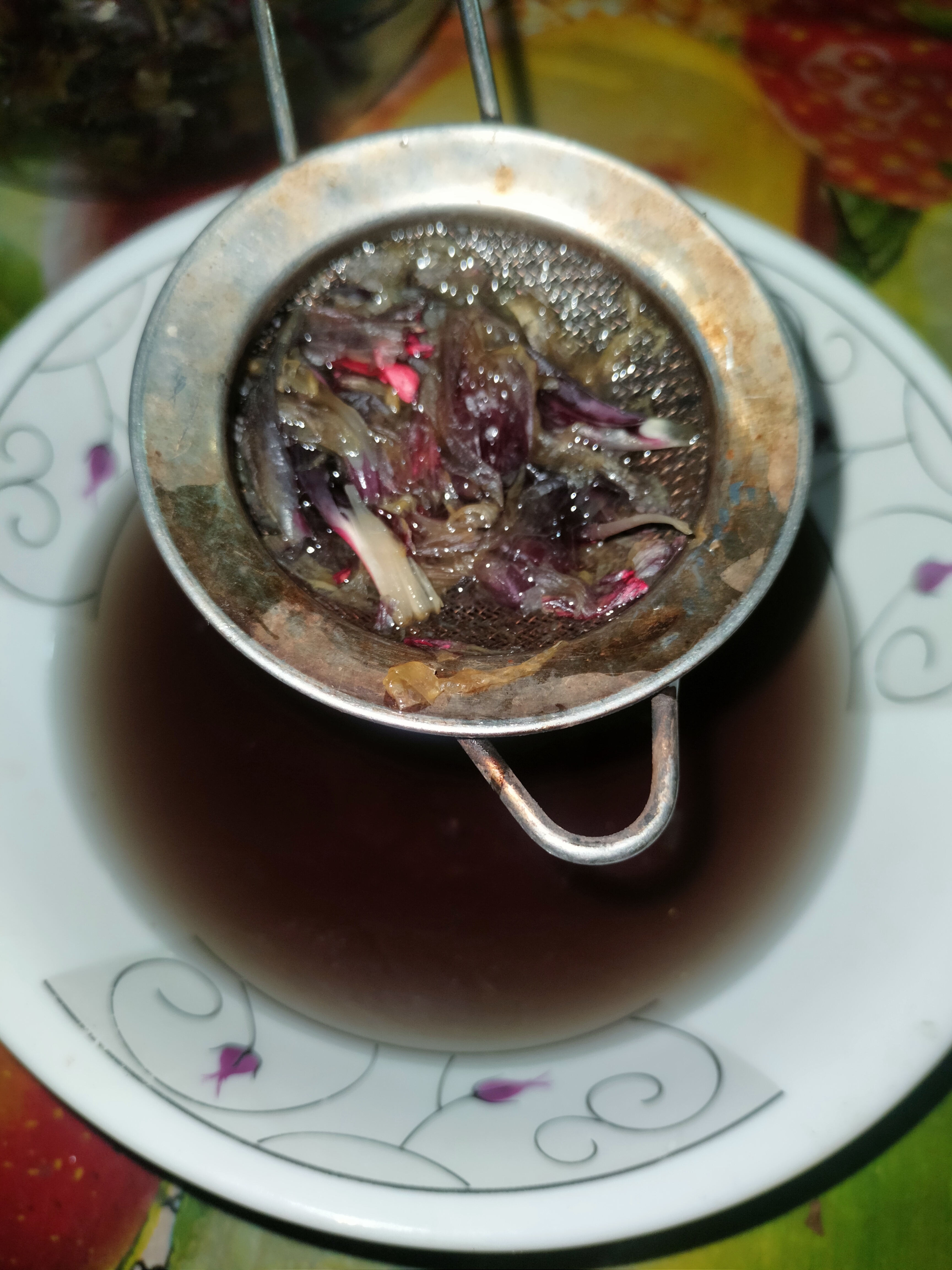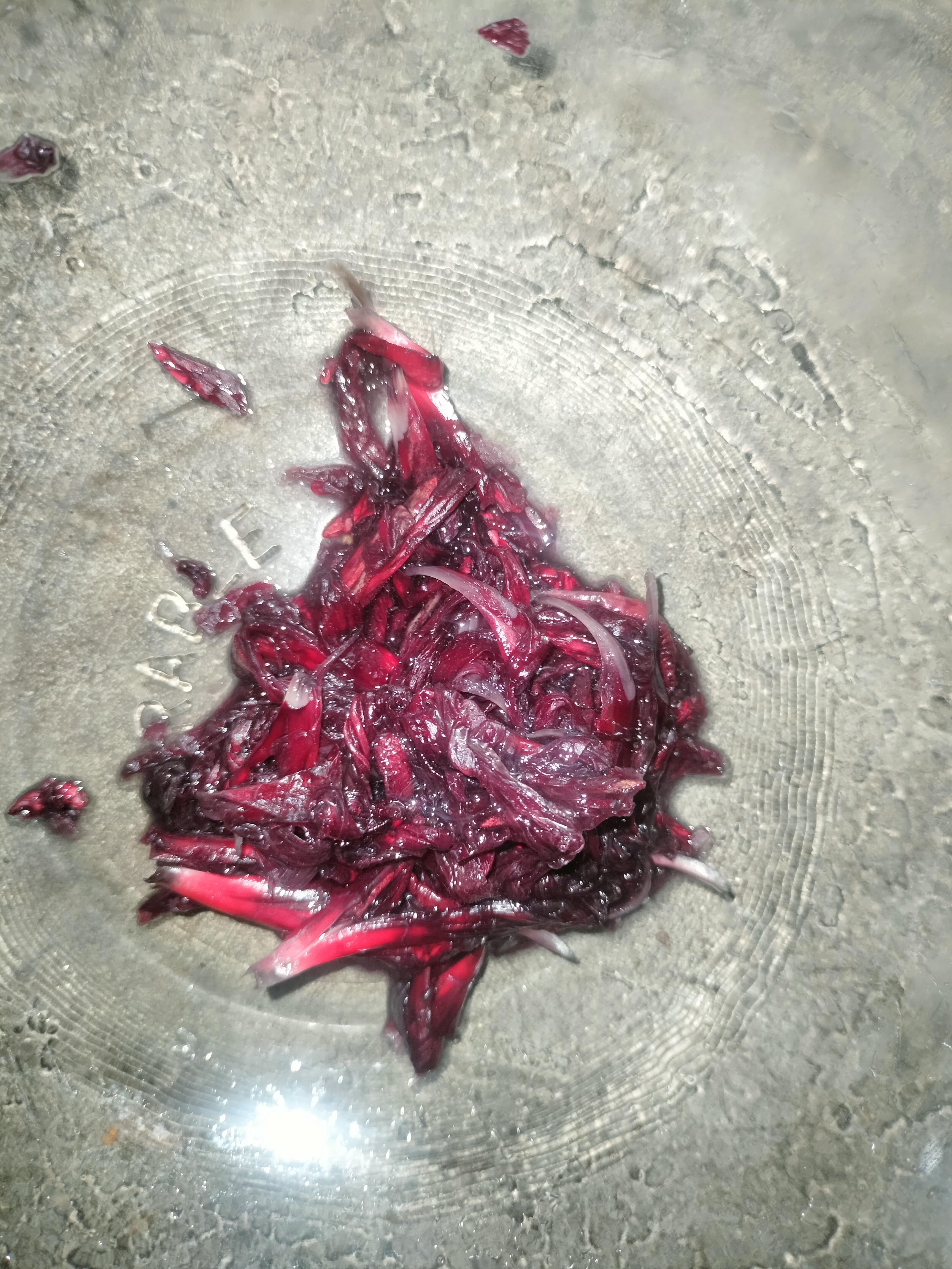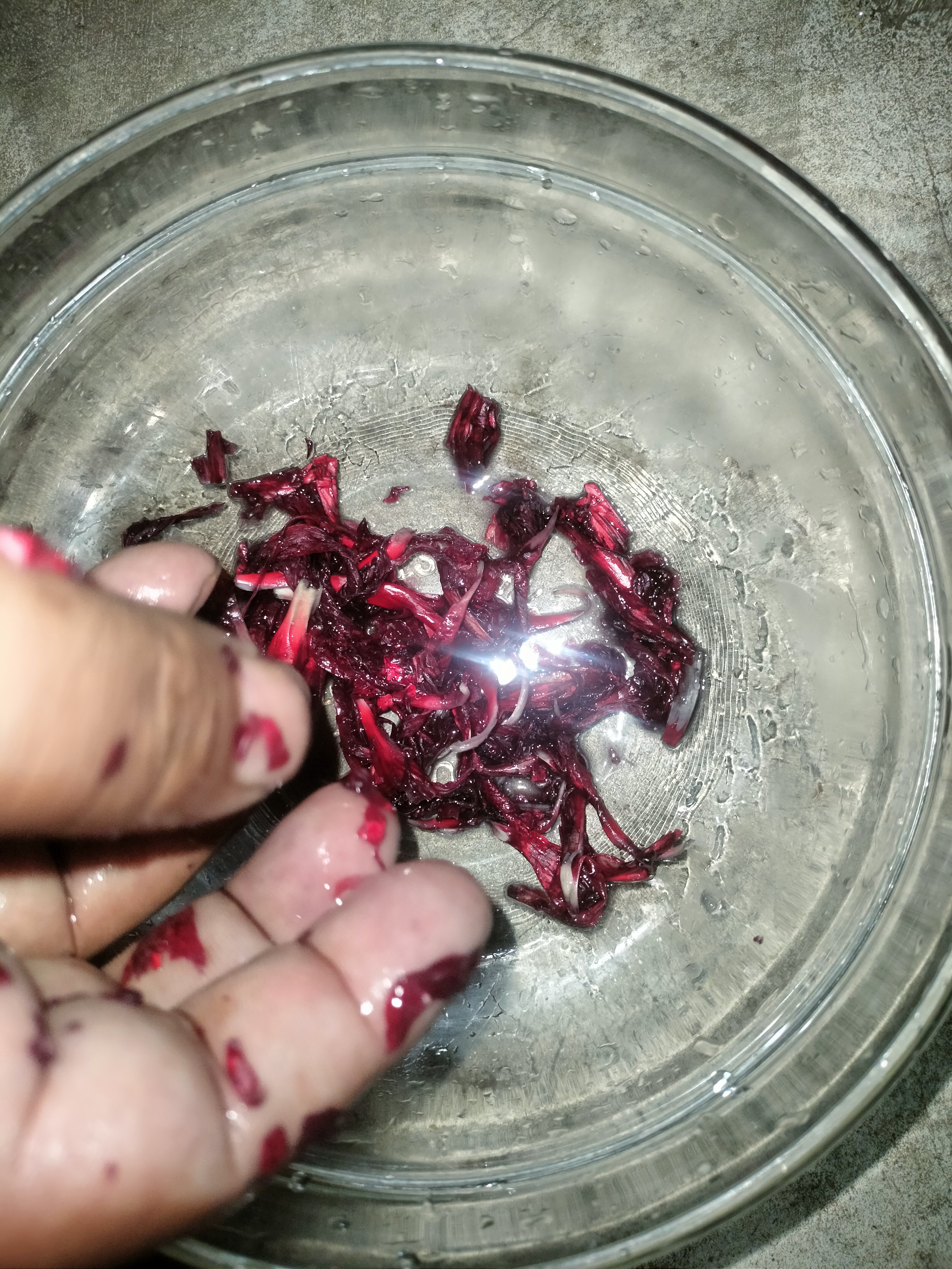 এরপর ছাঁকনি দিয়ে পানি আলাদা করে নিলাম। ফান এগুলো দেখতে জবা ফুলের রং হয়ে গেল।