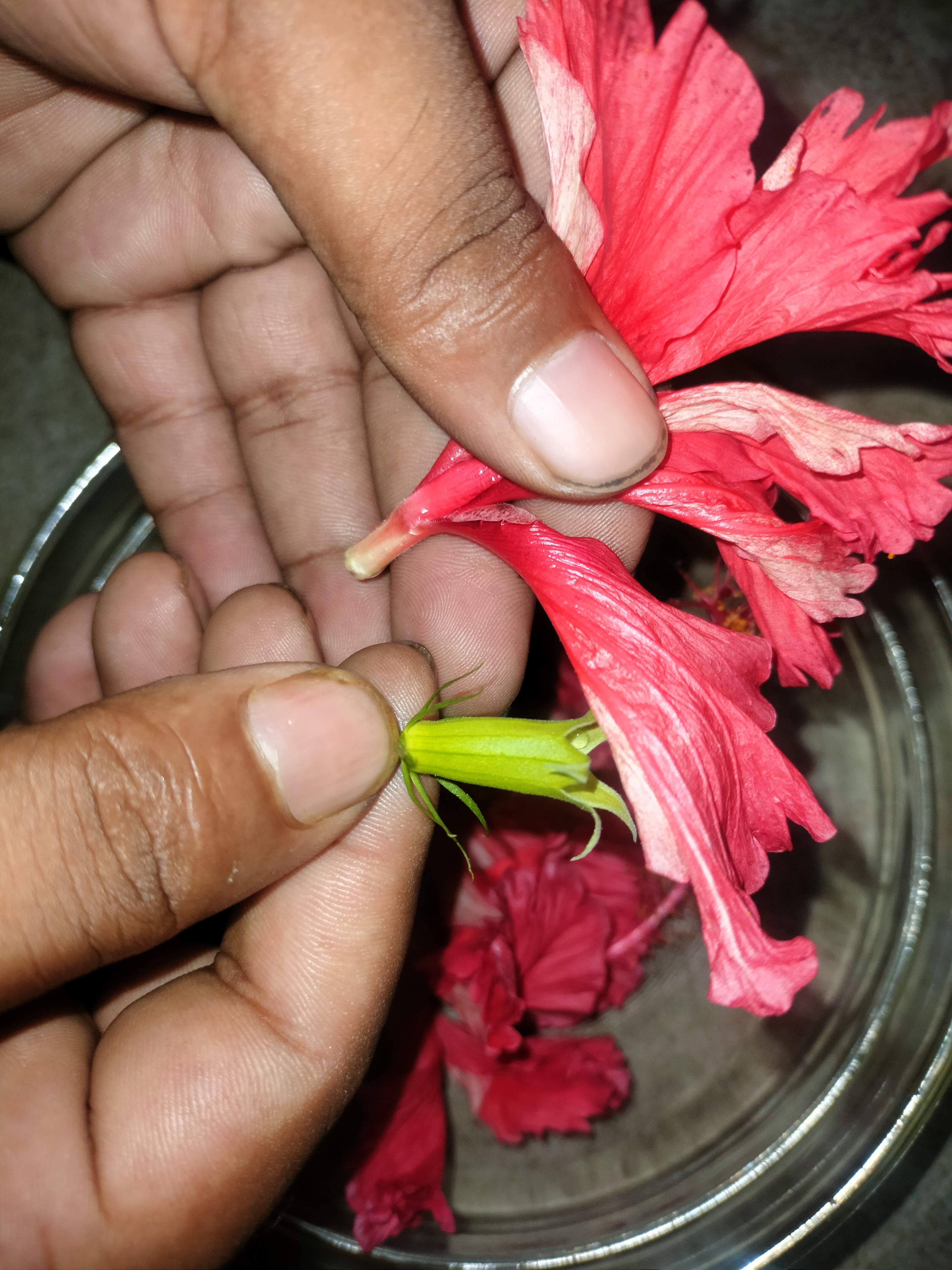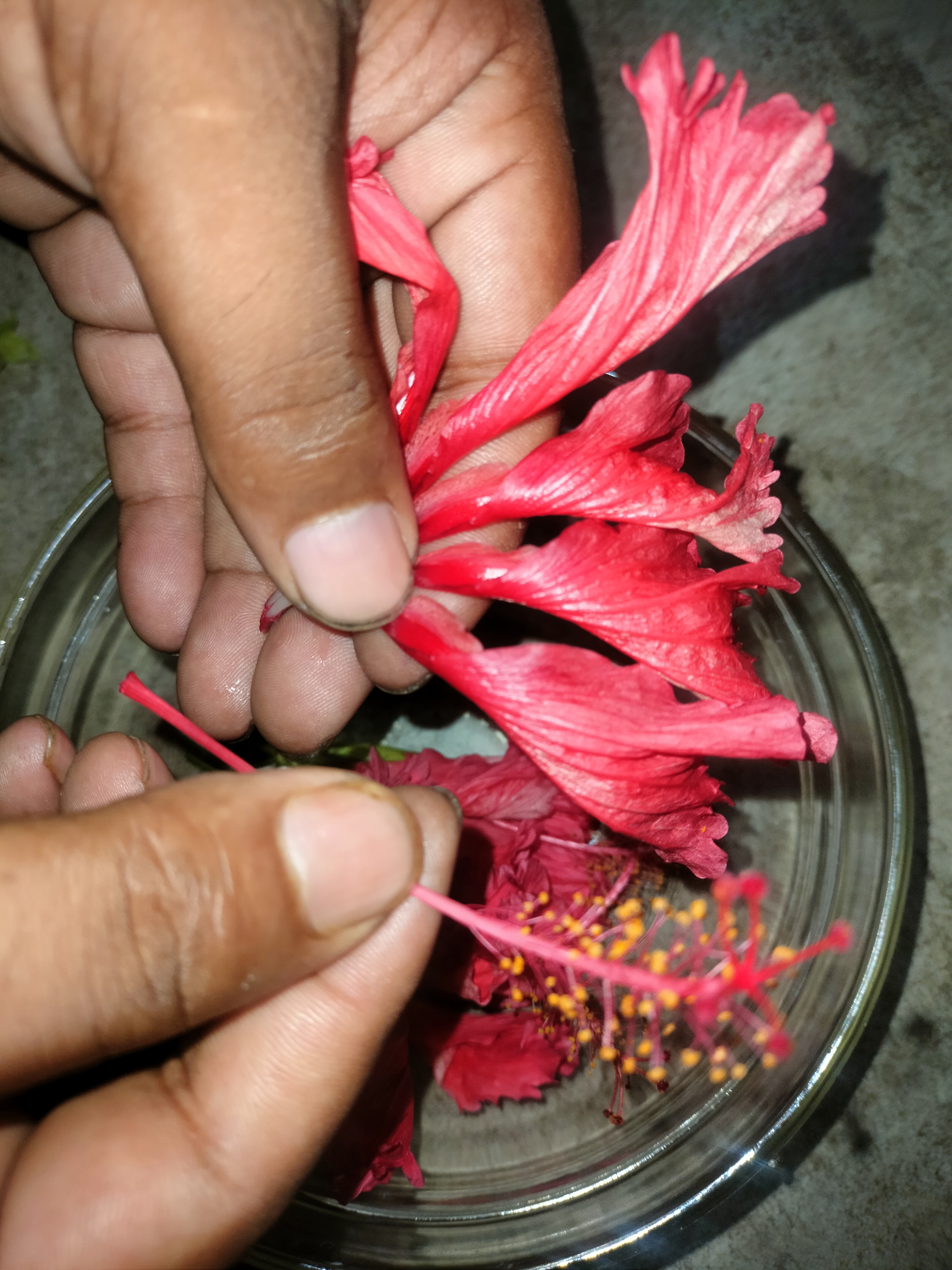 এরপর ভেতরের অংশ গুলো ফেলে দিতে হবে। এরপর জবা ফুলগুলো একটি বাটিতে রাখতে হবে।
