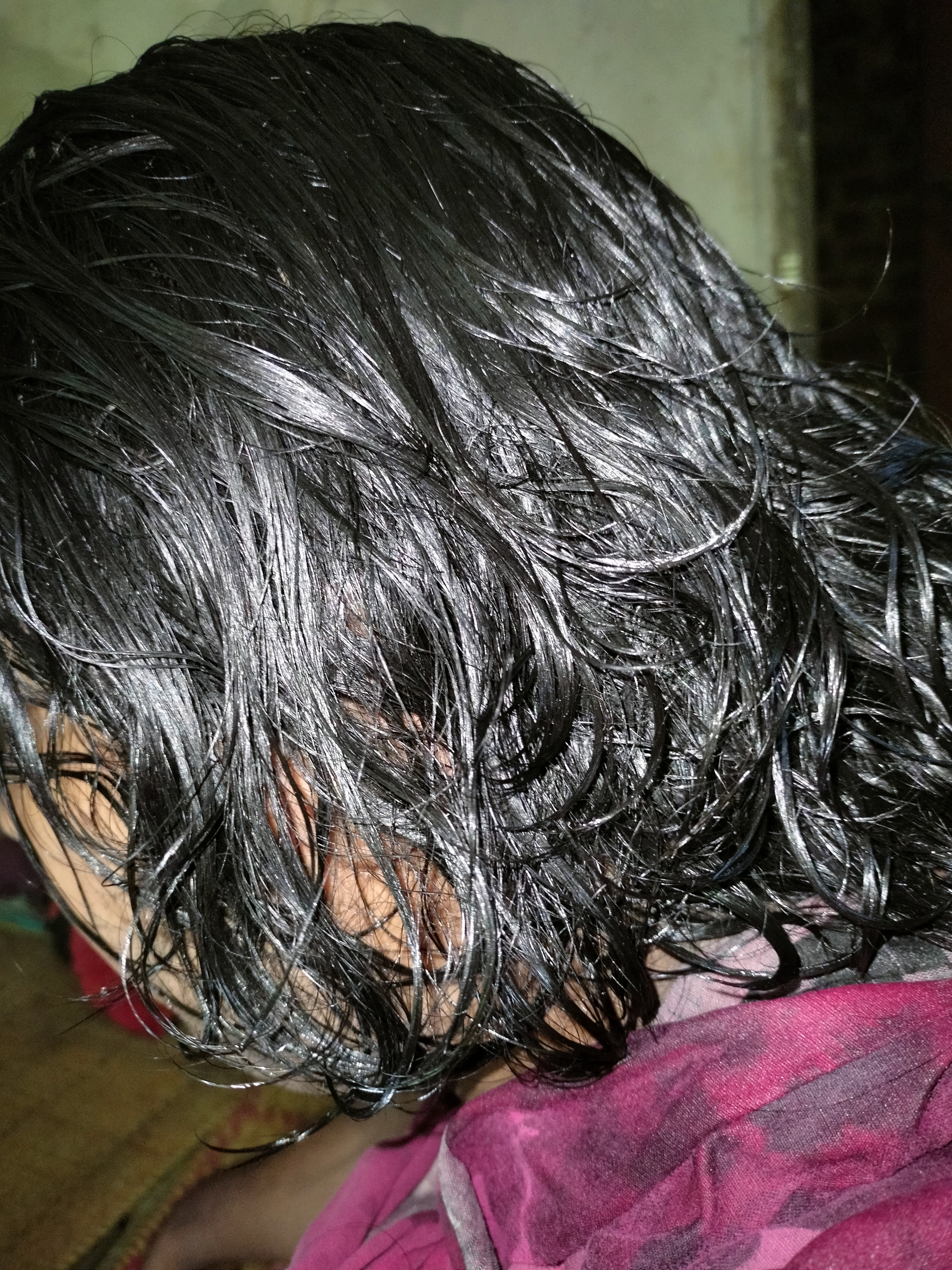 এরপর আমার ছোট বোন আমার চুল গুলোর মধ্যে জবা ফুলের পানি গুলো লাগিয়ে দিল। প্রথমে আমি পানি লাগানোর আগে একটি ছবি তুলেছি। এরপর পানি দেওয়ার পর, চুলগুলো ১০ মিনিট ভালোভাবে মাসার্স করে নিতে হবে । এরপর দুই ঘন্টা অপেক্ষা করতে হবে। দু'ঘণ্টা অপেক্ষা করার পর পানি দিয়ে ধুয়ে নিতে হবে।
