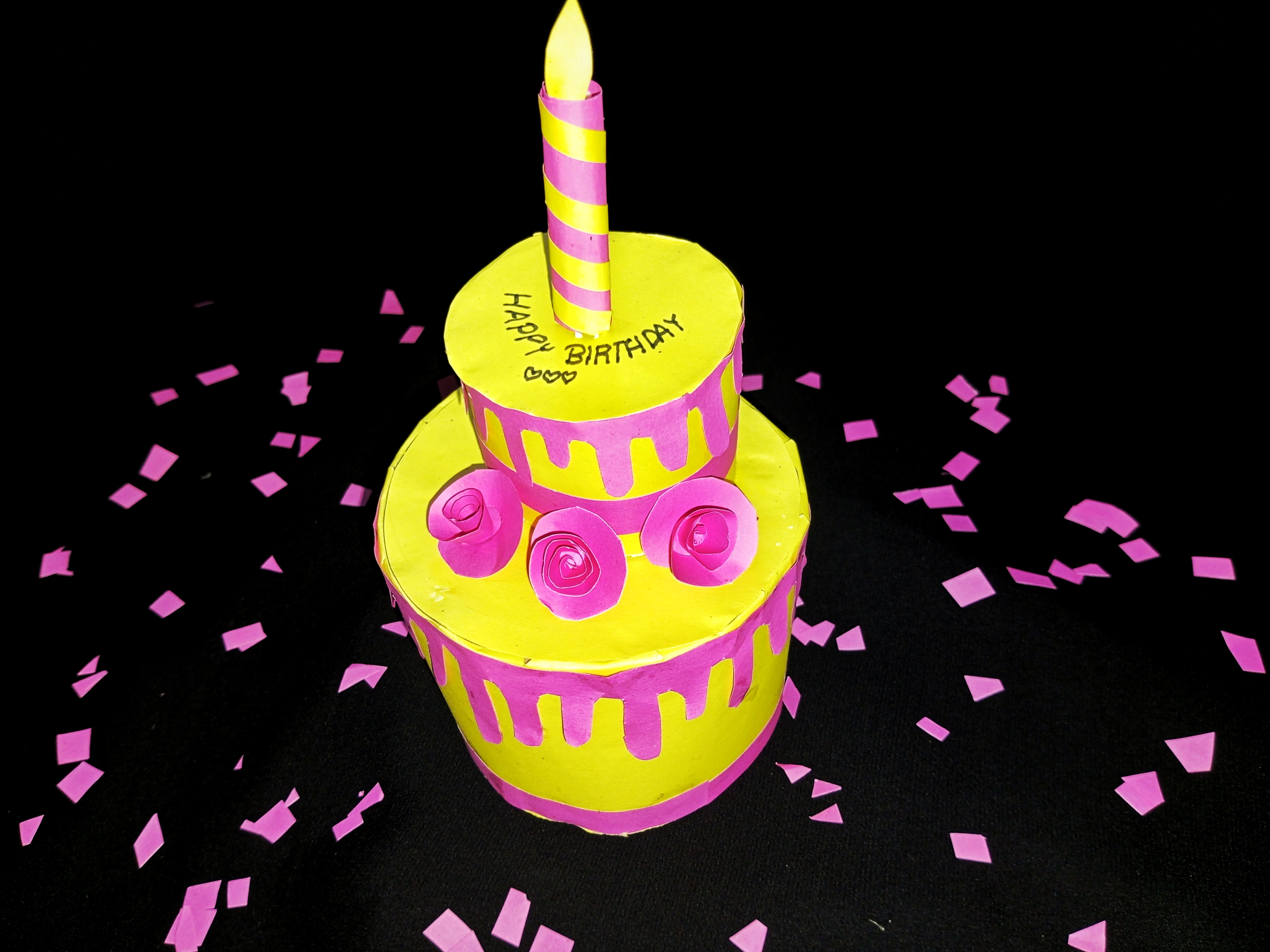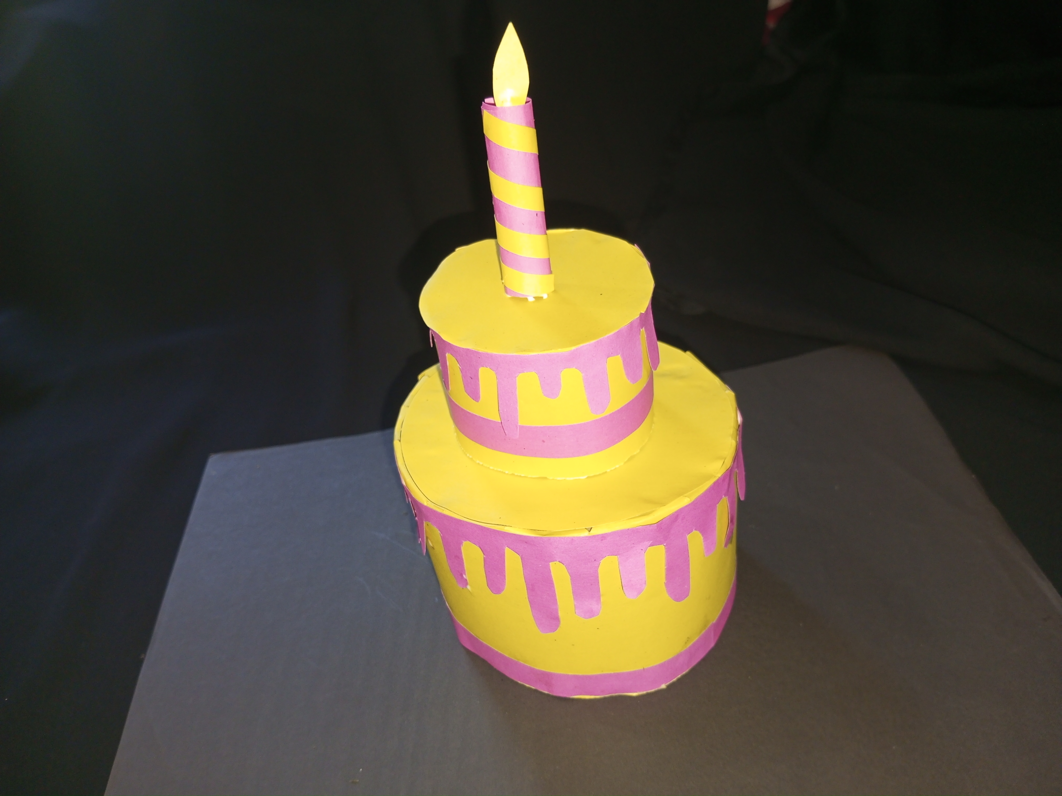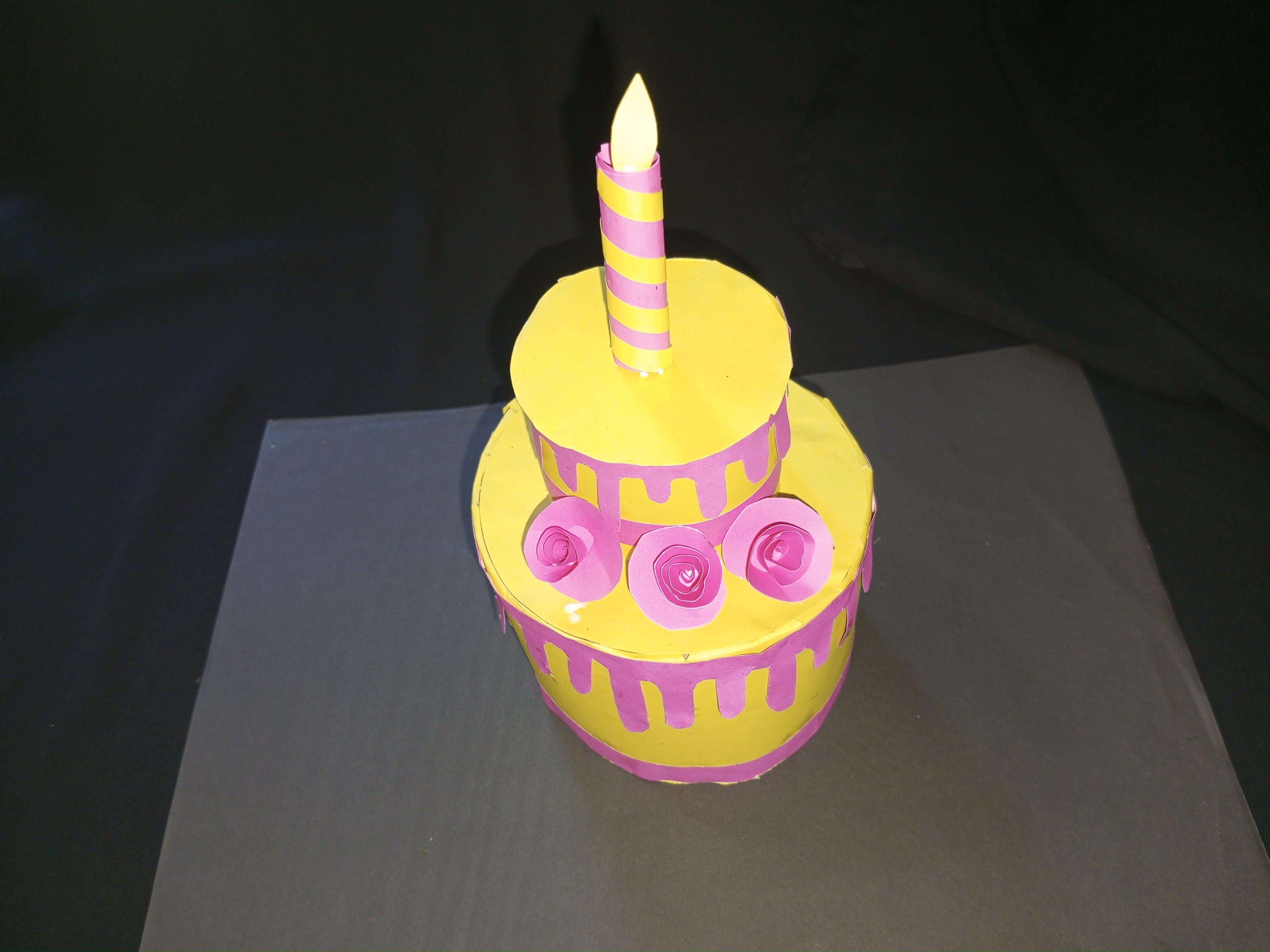 ডাই—রঙিন কাগজ দিয়ে জন্মদিনের কেক তৈরি।