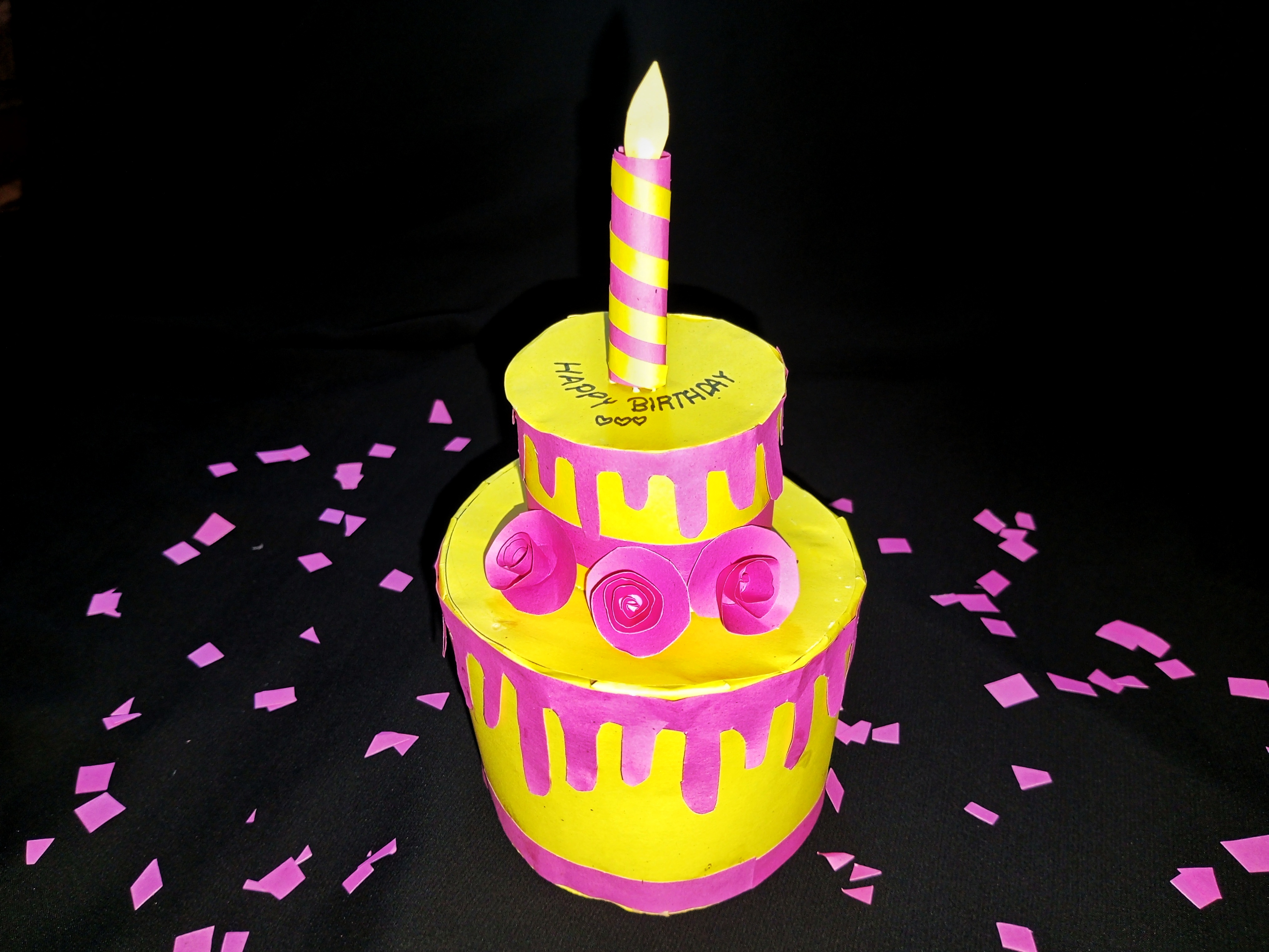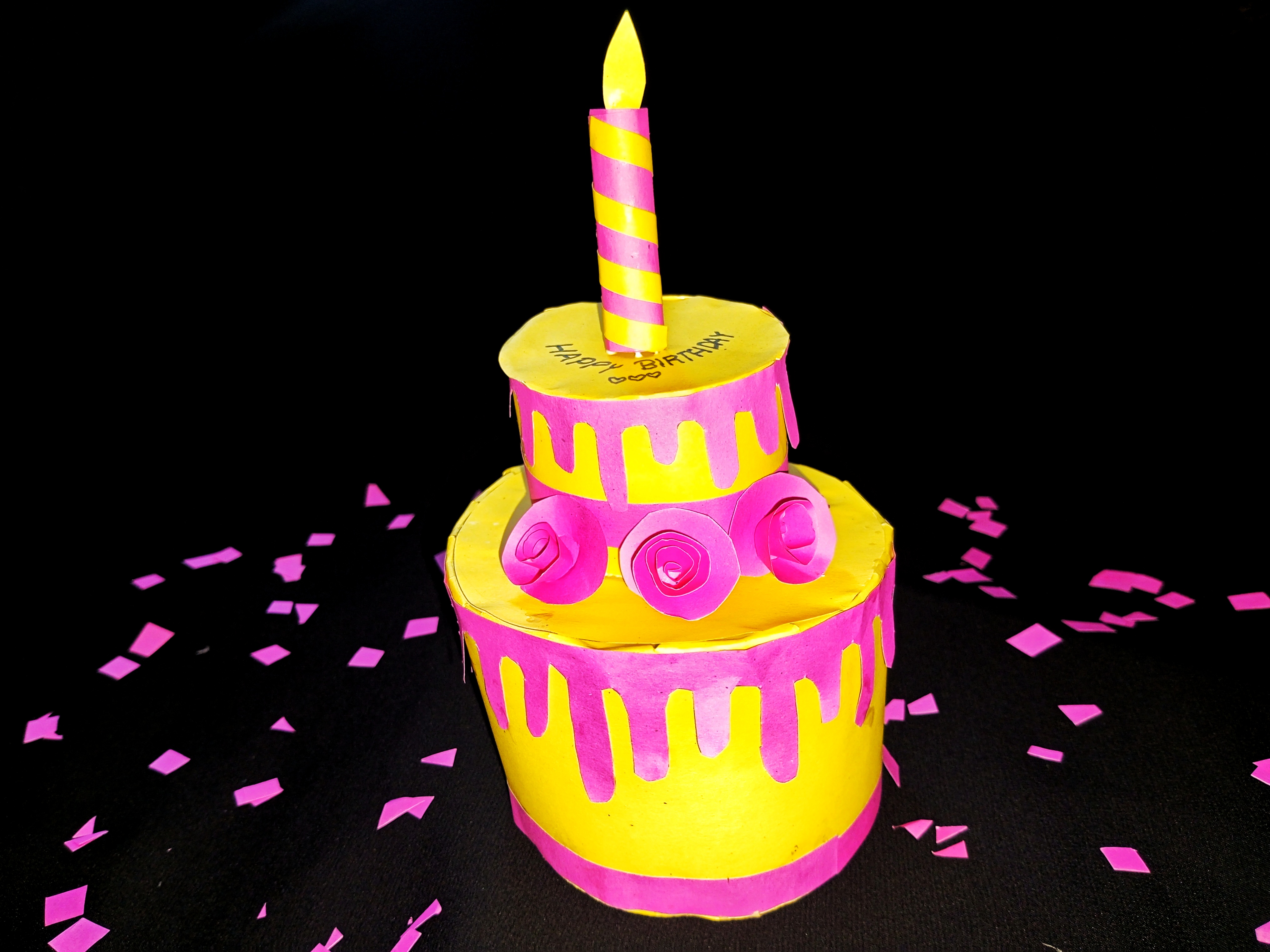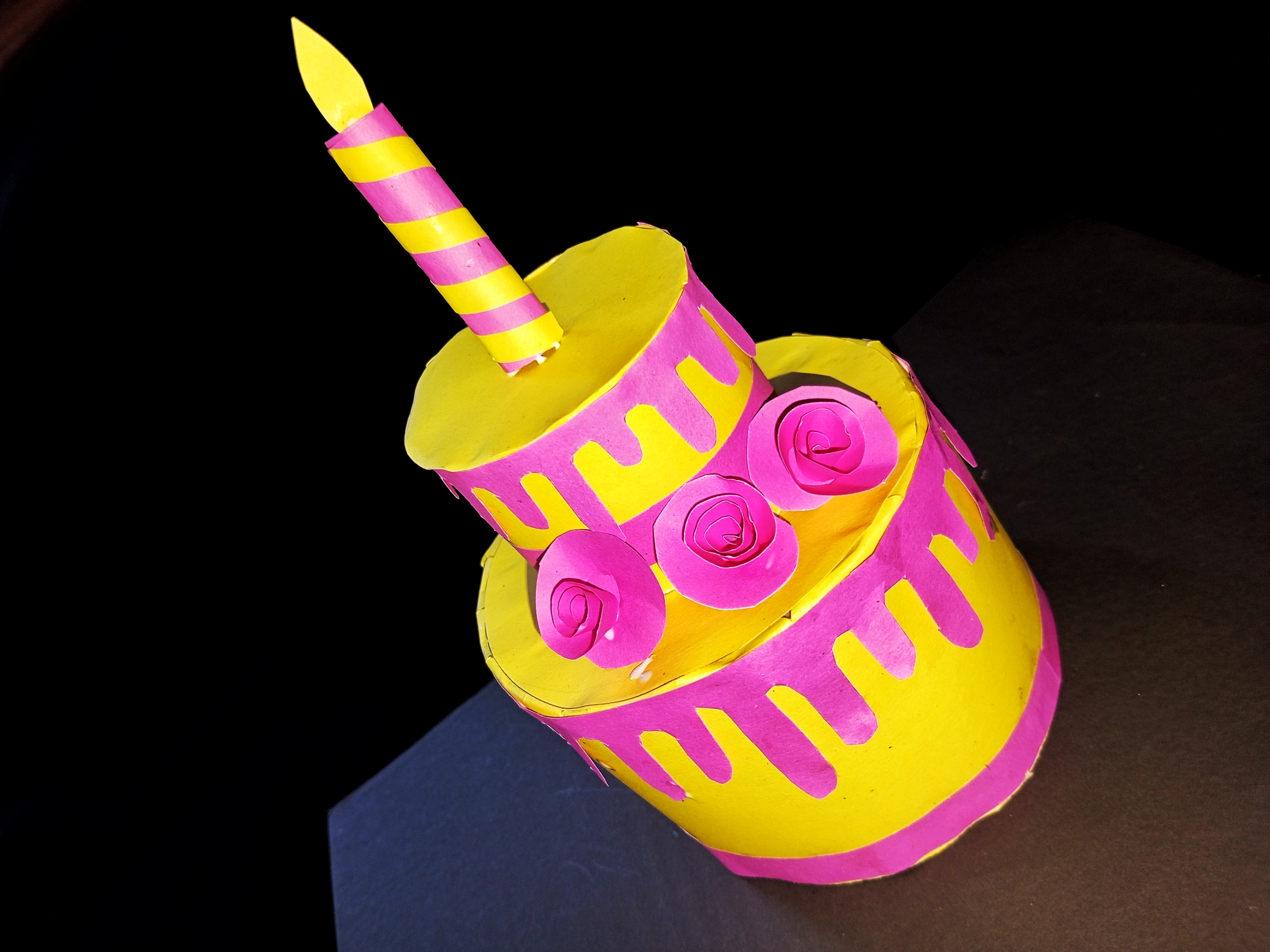 ডাই—রঙিন কাগজ দিয়ে জন্মদিনের কেক তৈরি।