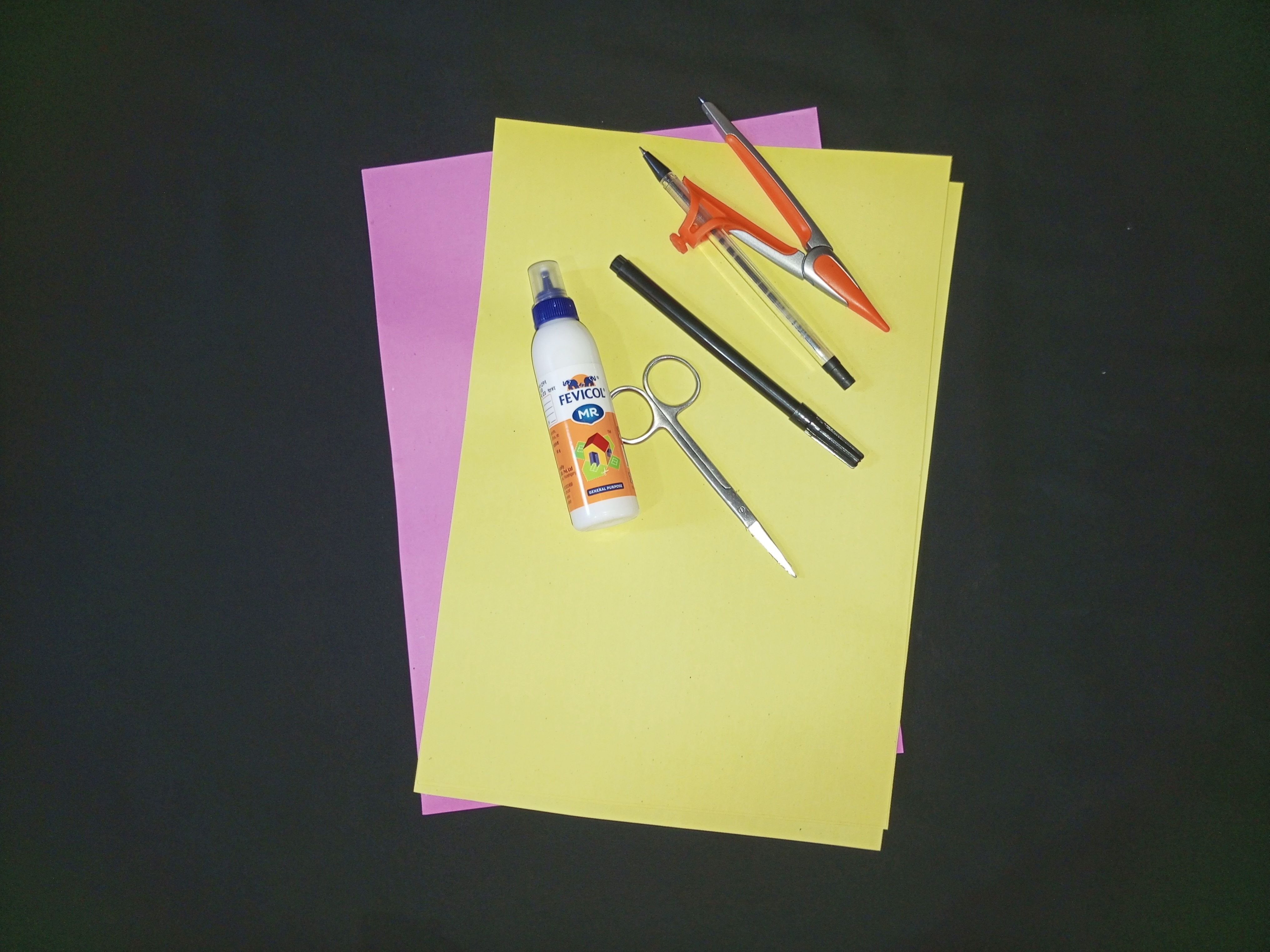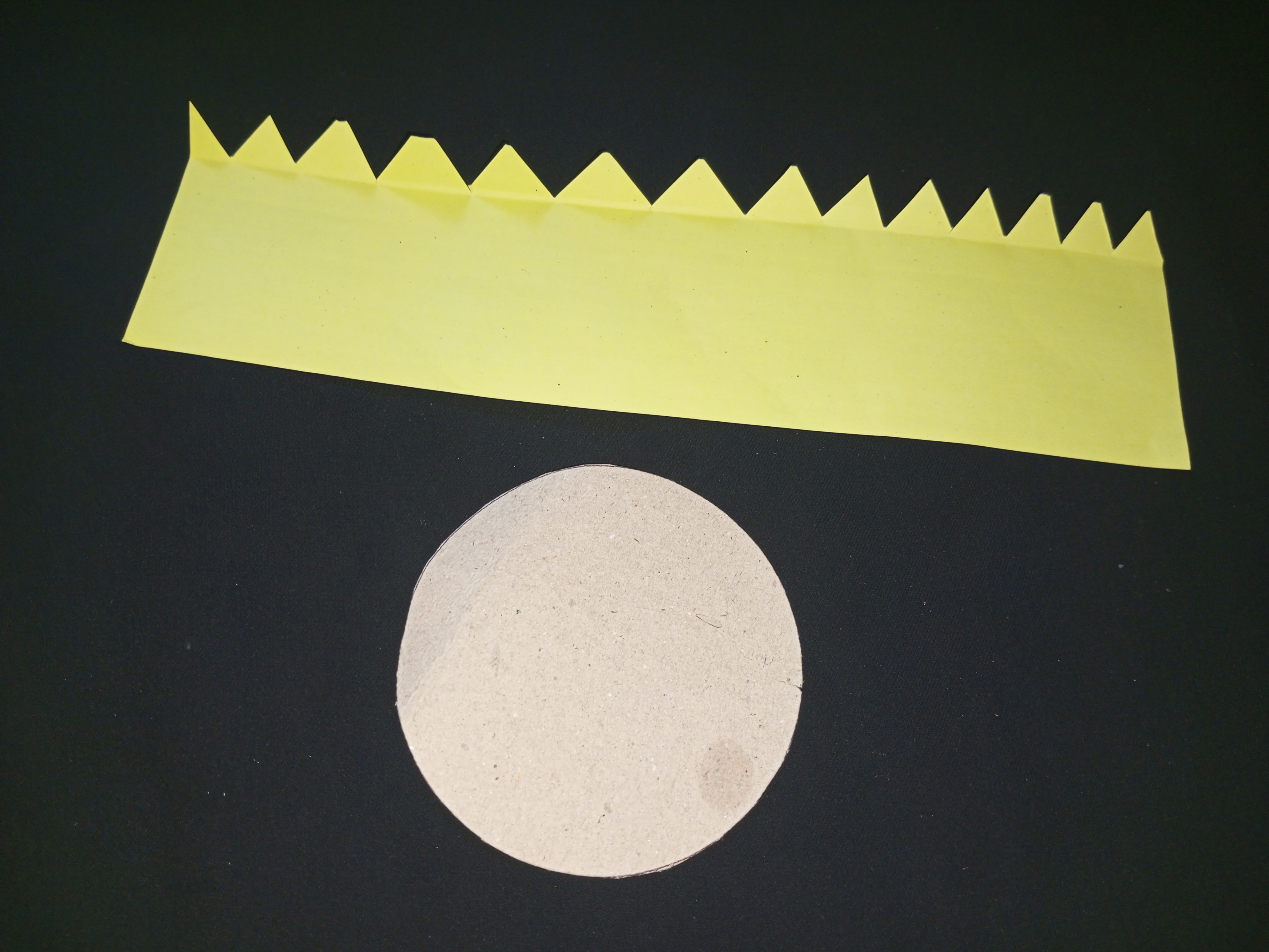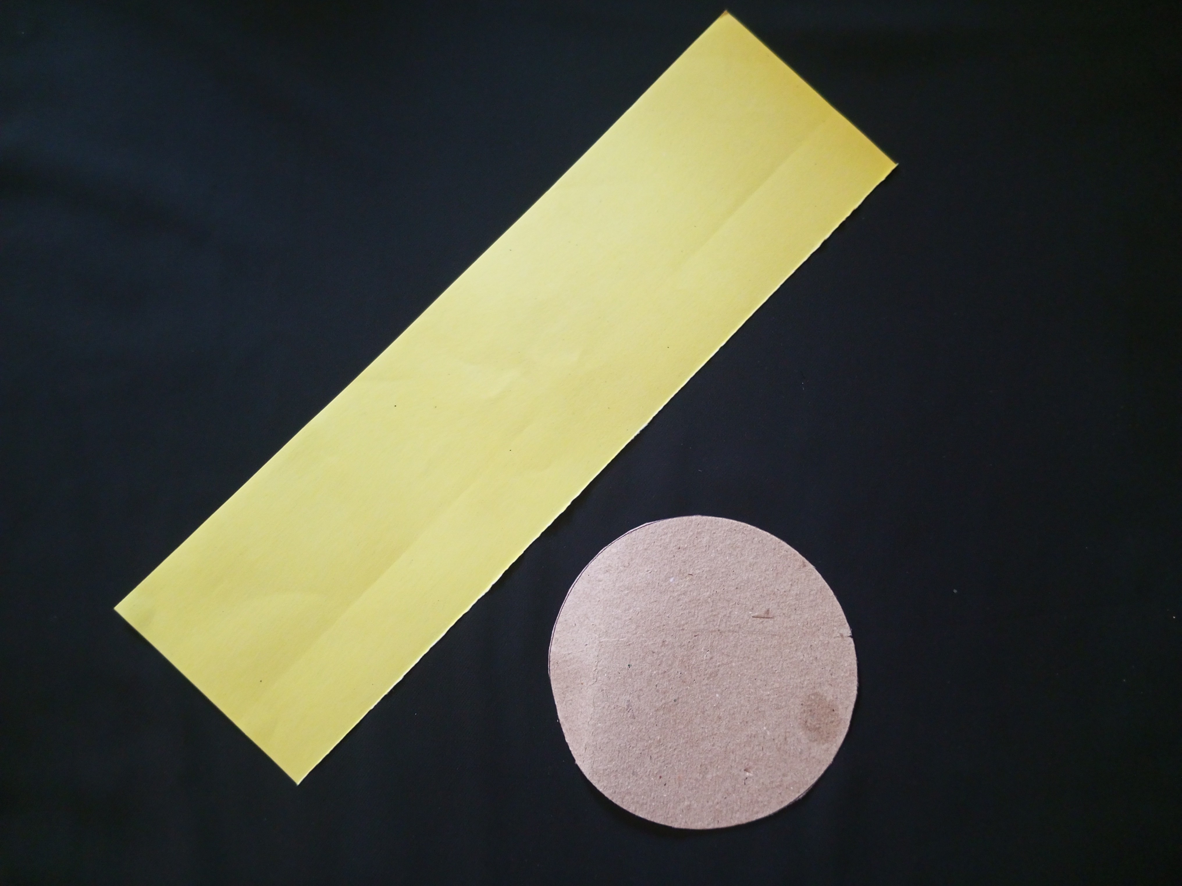 প্রথমে একটি শক্ত কাগজ কম্পাসের সাহায্যে গোল করে কেটে নিয়েছি। আরো একটি হলুদ কাগজ চিকন করে কেটে নিয়েছি।