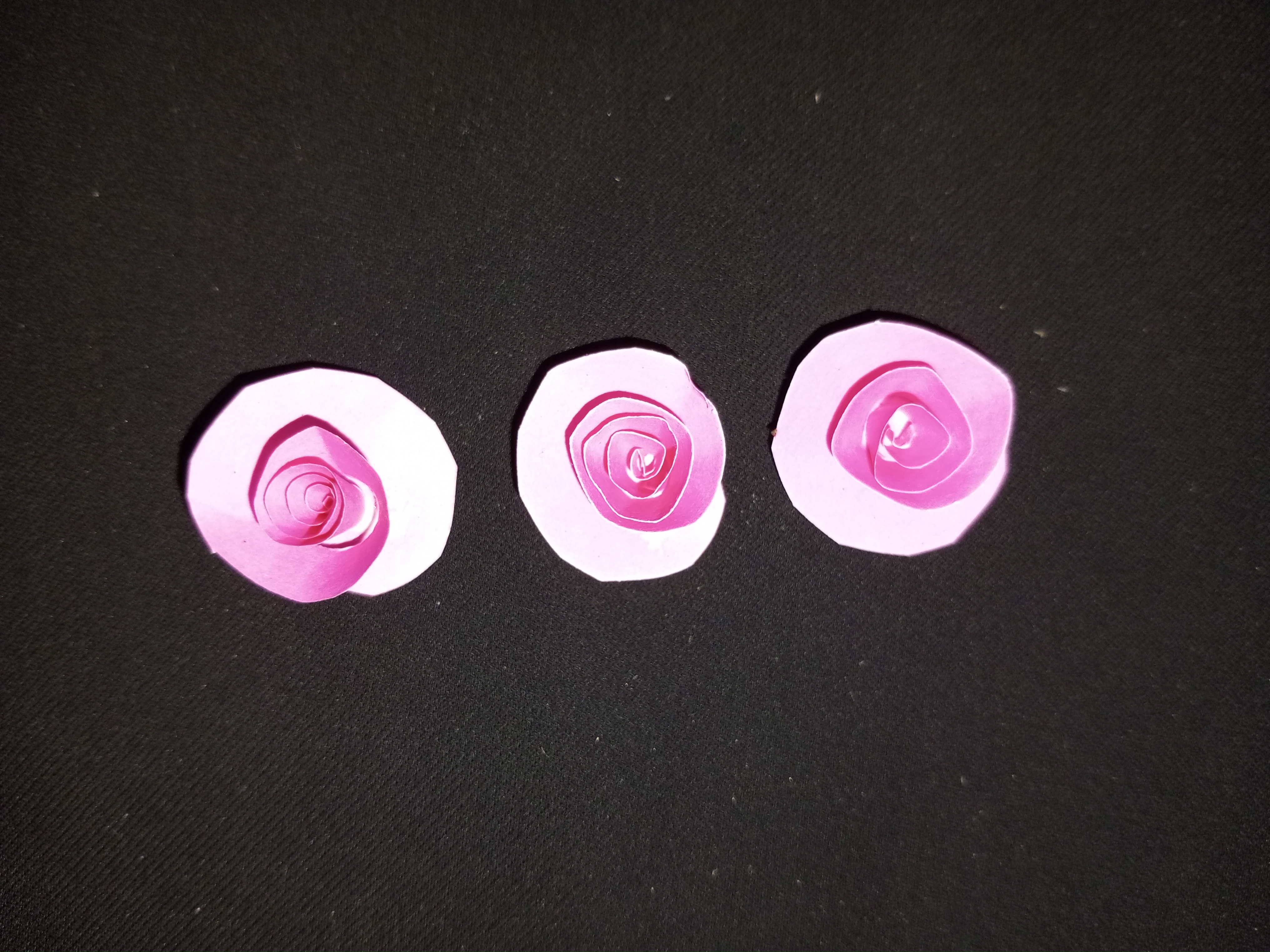 এখন গোলাপি পেপার দিয়ে তিনটি গোলাপ ফুল বানিয়ে নিলাম।