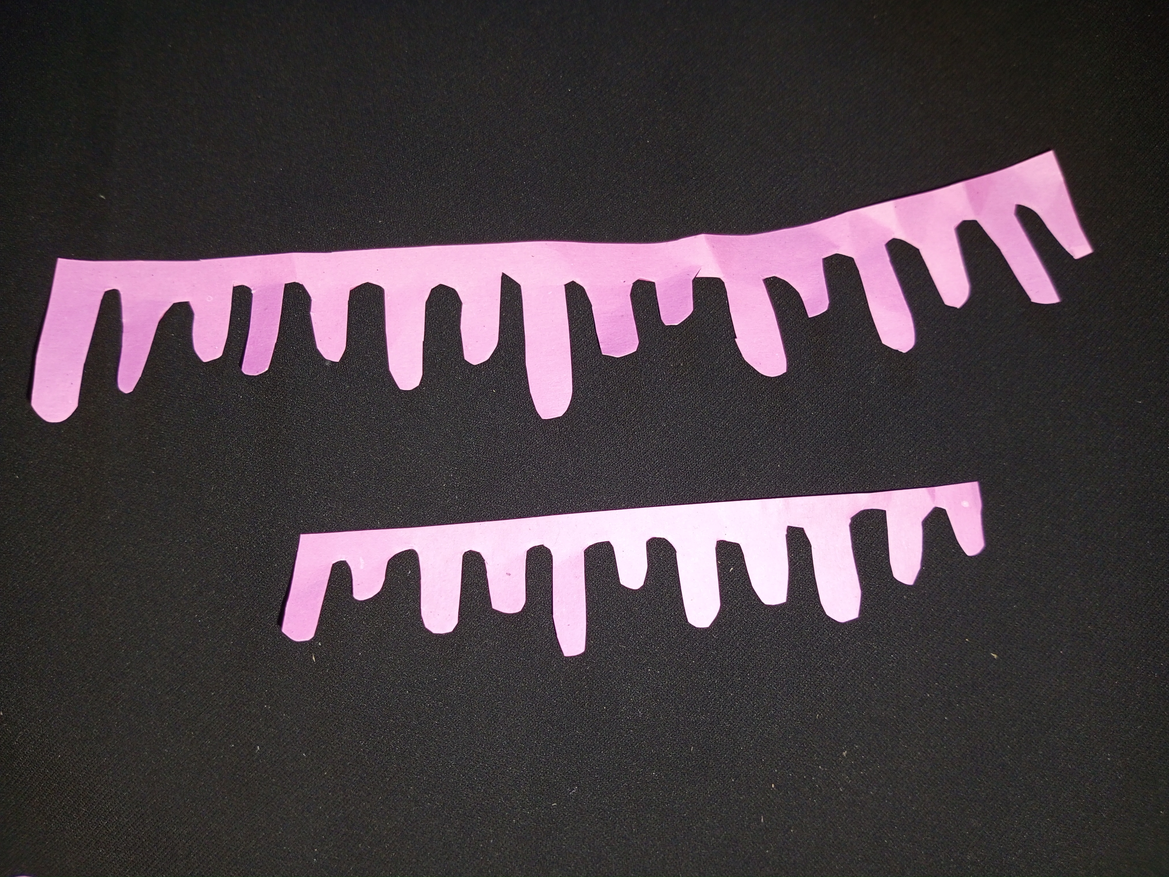 অরিজিনাল কেকে চকলেট বা ক্রিমের যে ধরনের ডিজাইনগুলো থাকে সেই রকম ভাবে আমি গোলাপি রঙের কাগজ কাটিং করে নিয়েছি।এখন কেকের প্রথম অংশে এবং দ্বিতীয় অংশে আঠা দিয়ে লাগিয়ে নিয়েছি।