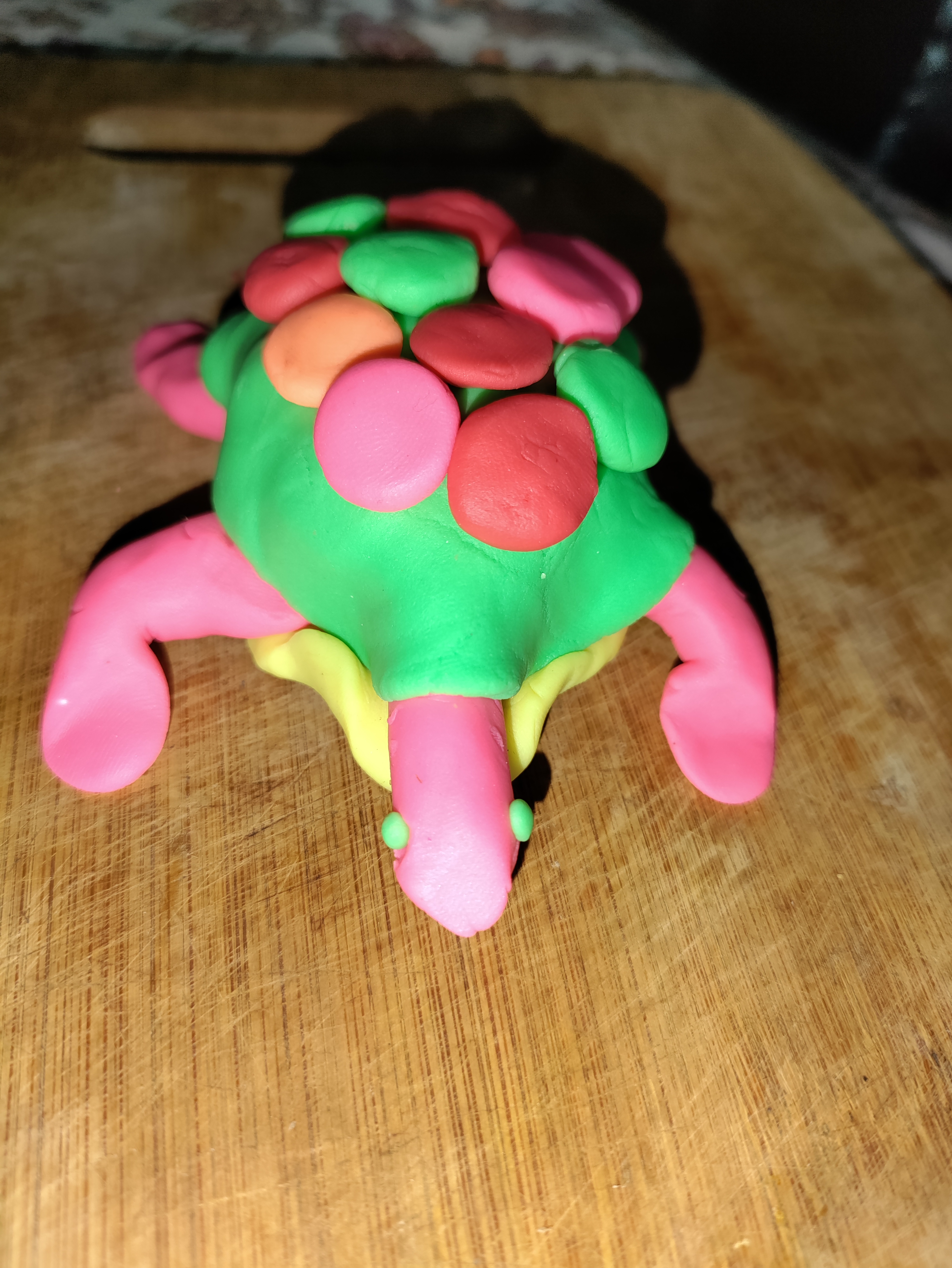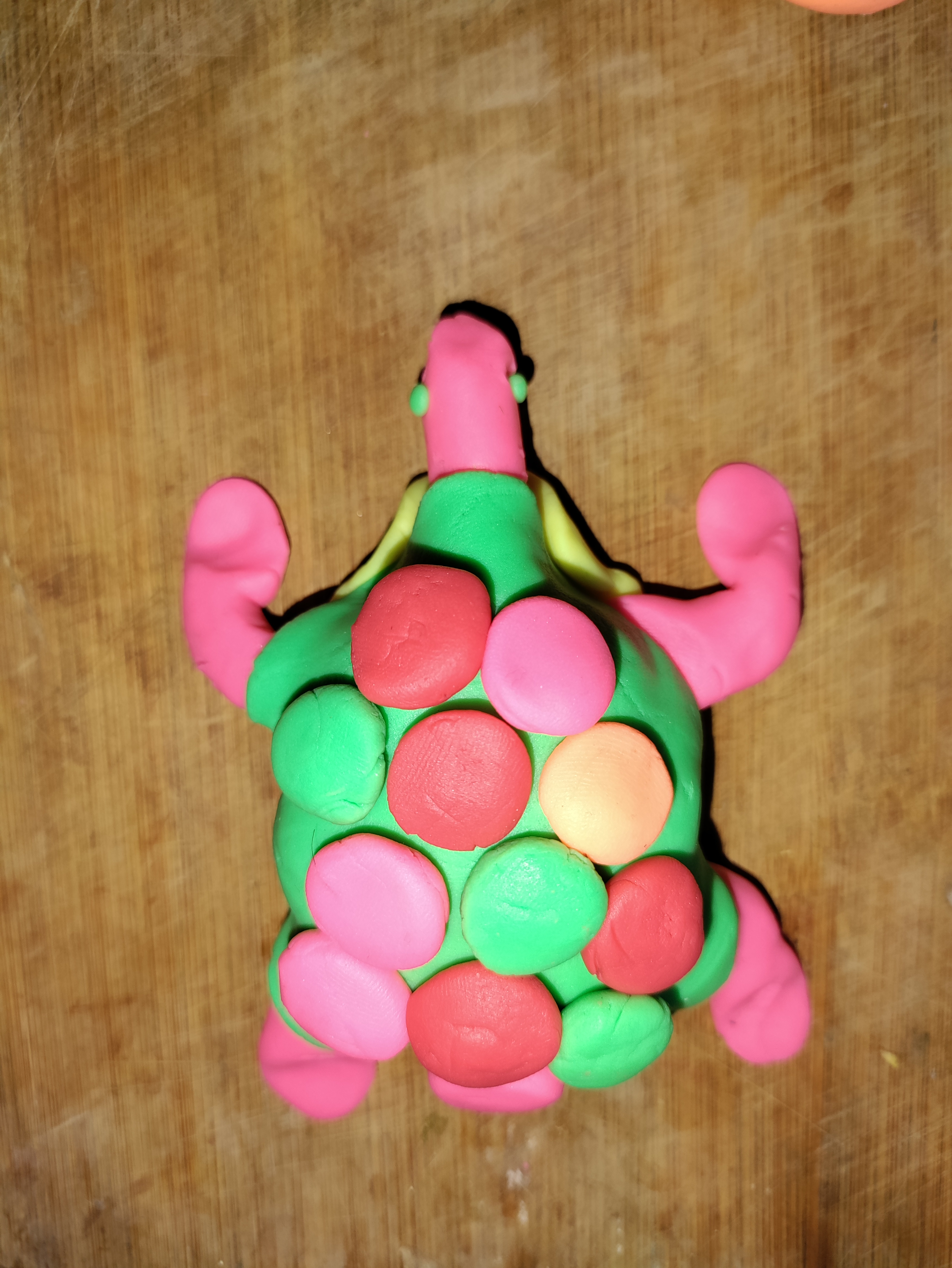 এটাও আমার ছোটবেলায় শেখা । পার্থক্য হচ্ছে ছোটবেলায় মাটি দিয়ে কচ্ছপ বানাতাম আর এখন প্লে ডো দিয়ে বানালাম । দেখতে খুব একটা সুবিধের হয়নি মোটেও ।
