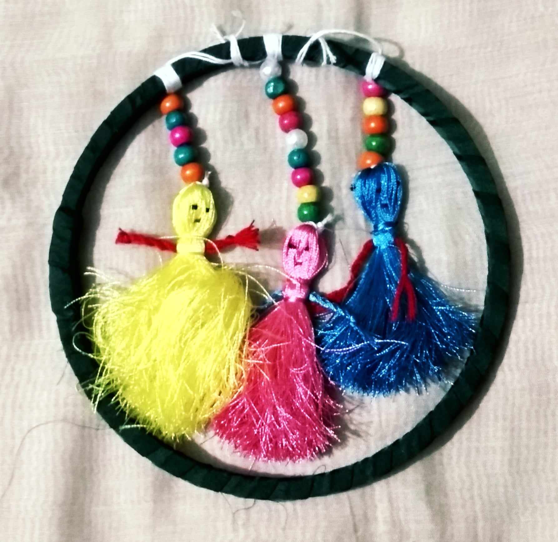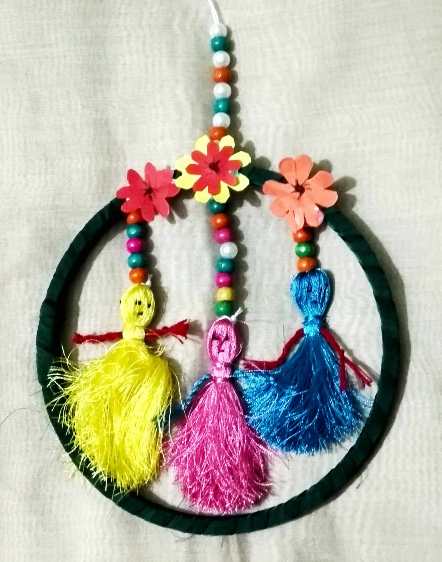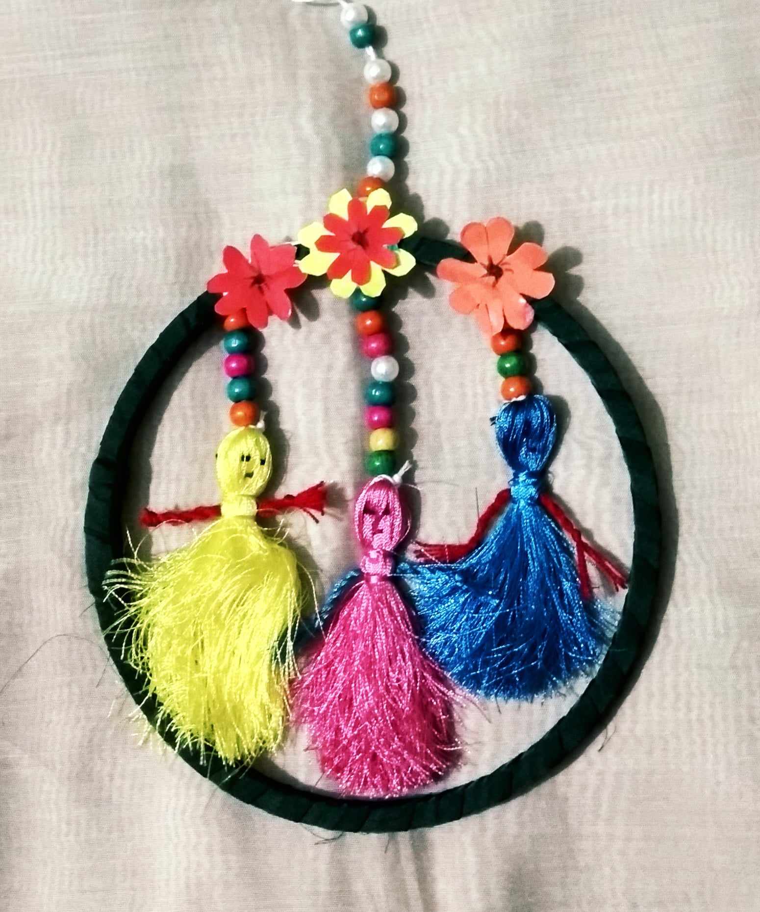 এ ধরনের ওয়াল হ্যাংগিং গুলো দেখতে কিন্তু ভালই লাগে । আপনি কাপড় ও পুথি দিয়ে খুব সুন্দর করে তৈরি করেছেন দেখতে কিন্তু ভালো লাগছে । এসব বানাতে একটু সময়ও লেগেছে মনে হচ্ছে । প্রত্যেকটা পুঁথি সুন্দর করে গেঁথে তবেই বানানো হয়েছে কষ্ট তো অবশ্যই হয়েছে ।