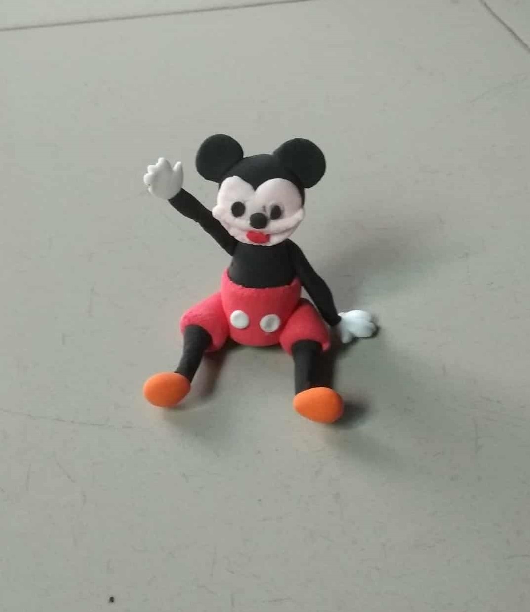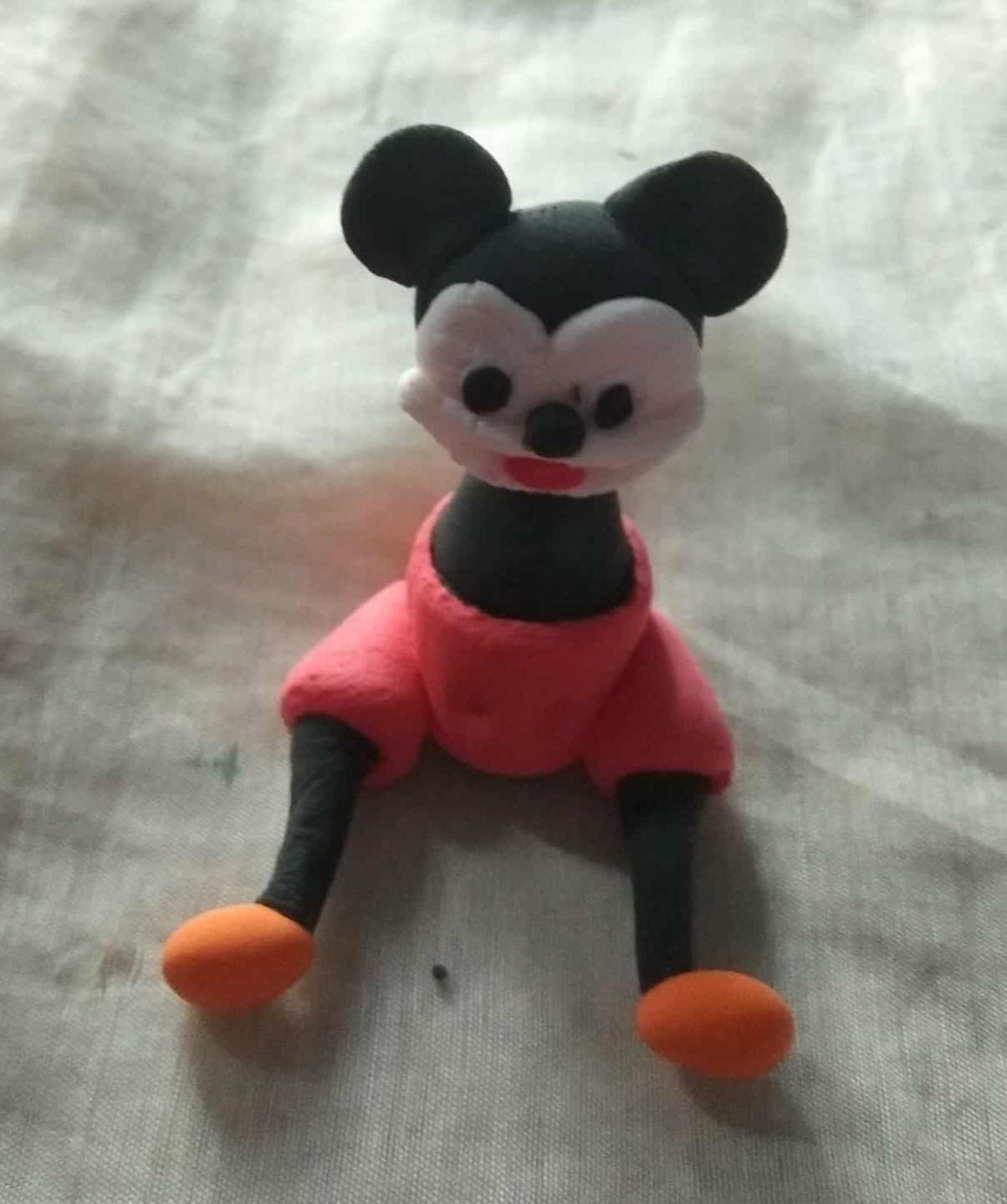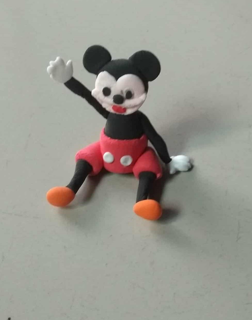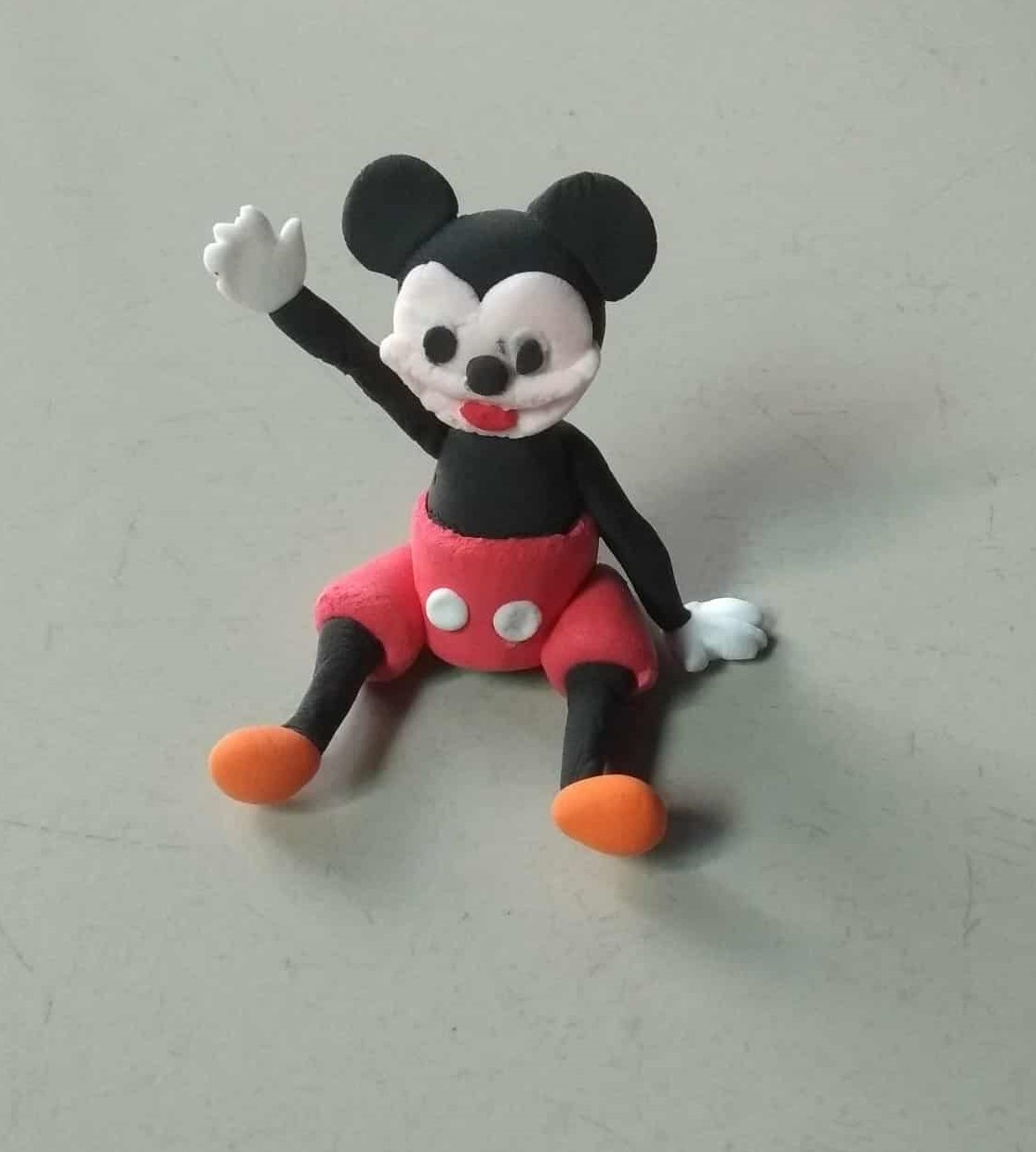 সব শেষ সাদা কালো রং এর ক্লে দিয়ে মিকি মাউসের দু'টো হাত বানিয়ে শরীরের সাথে যুক্ত করে দিয়েছি। ব্যস বানিয়ে নিলাম ক্লে দিয়ে মিকি মাউসটি।