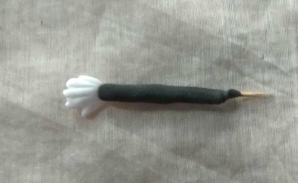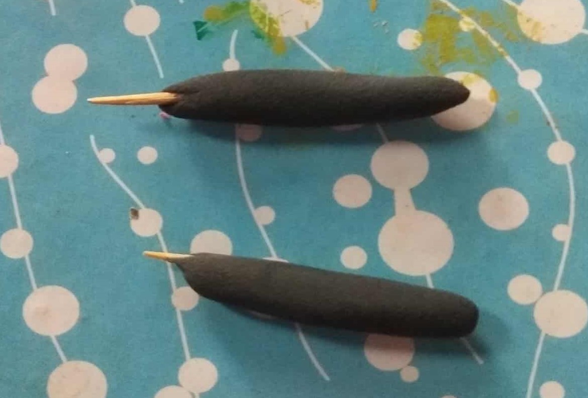 কাল রং রং ক্লে টুথ পিকের সাথে লাগিয়ে মিকি মাউসের পা পানিয়ে নিয়েছি।এবং প্যান্টের সাথে লাগিয়ে দিয়েছি।