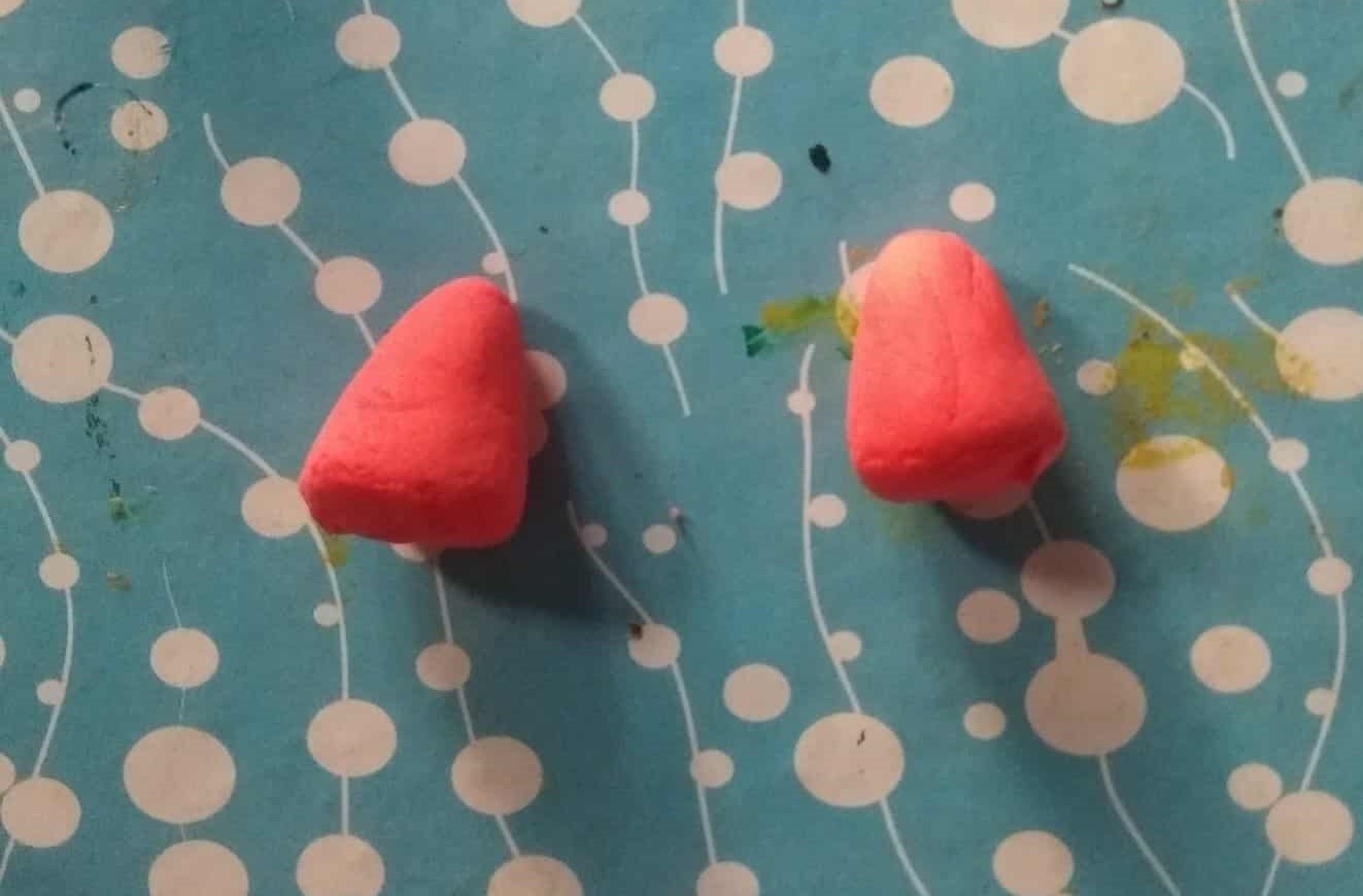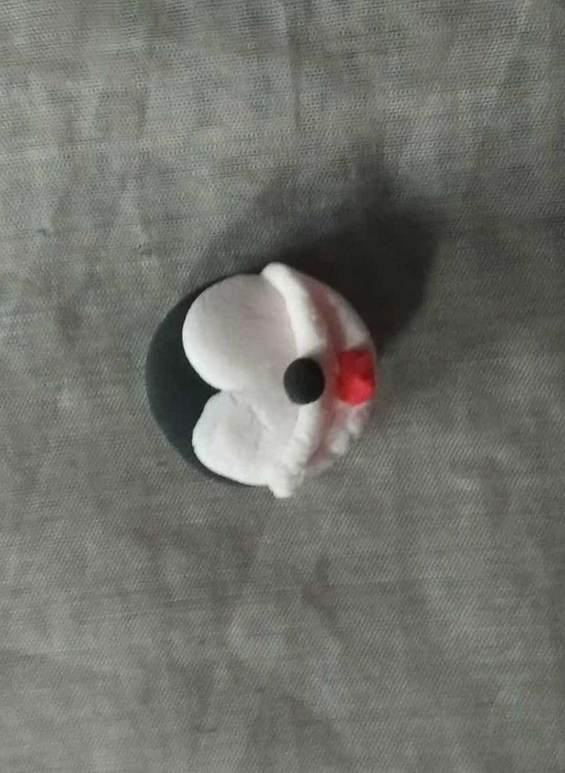 অফ হোয়াইট ক্লে দিয়ে ঠোঁট বানিয়ে তা বসিয়ে দিয়েছি। এবং লাল রং এর ক্লে দিয়ে জিহবা বানিয়ে নিয়েছি এবং কালো রং এর ক্লে দিয়ে নাক বানিয়ে নিয়েছি মিকি মাউসের।
