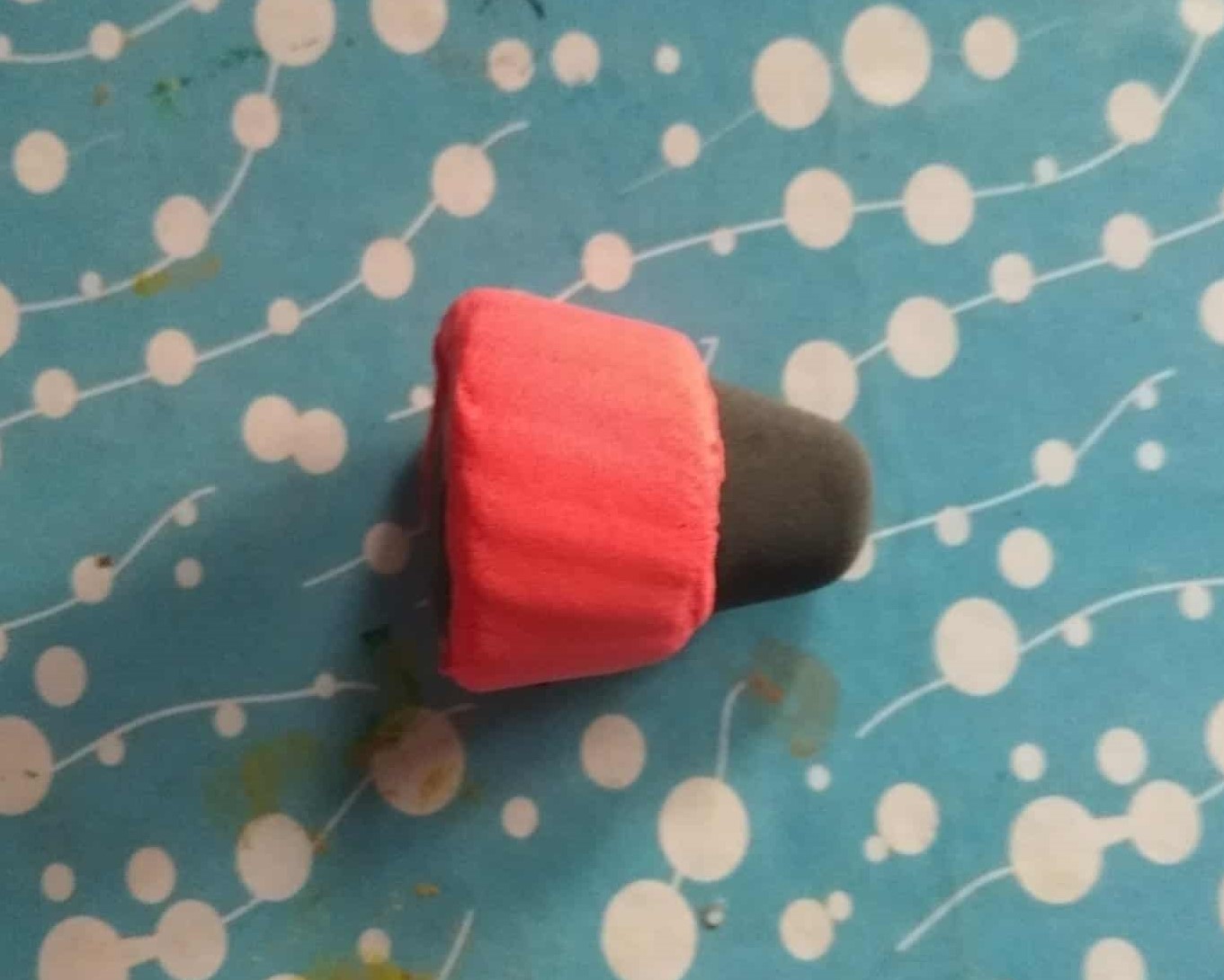 লাল রং এর ক্লে কিছুটা চেপ্টা করে নিয়ে টেম্পল শেপের ক্লের নিচে লাগিয়ে জামা বানিয়ে নিয়েছি।