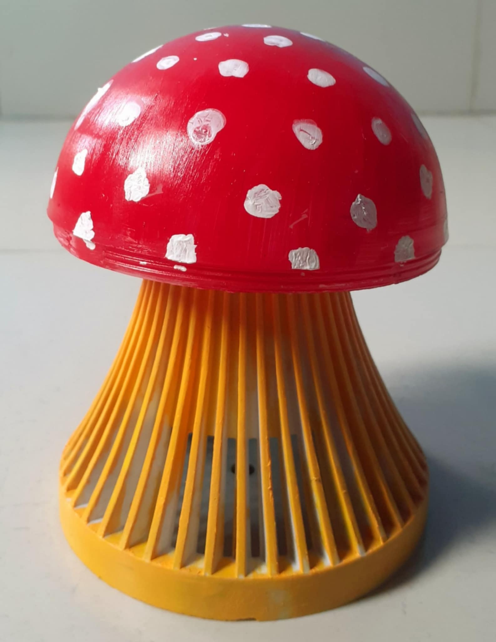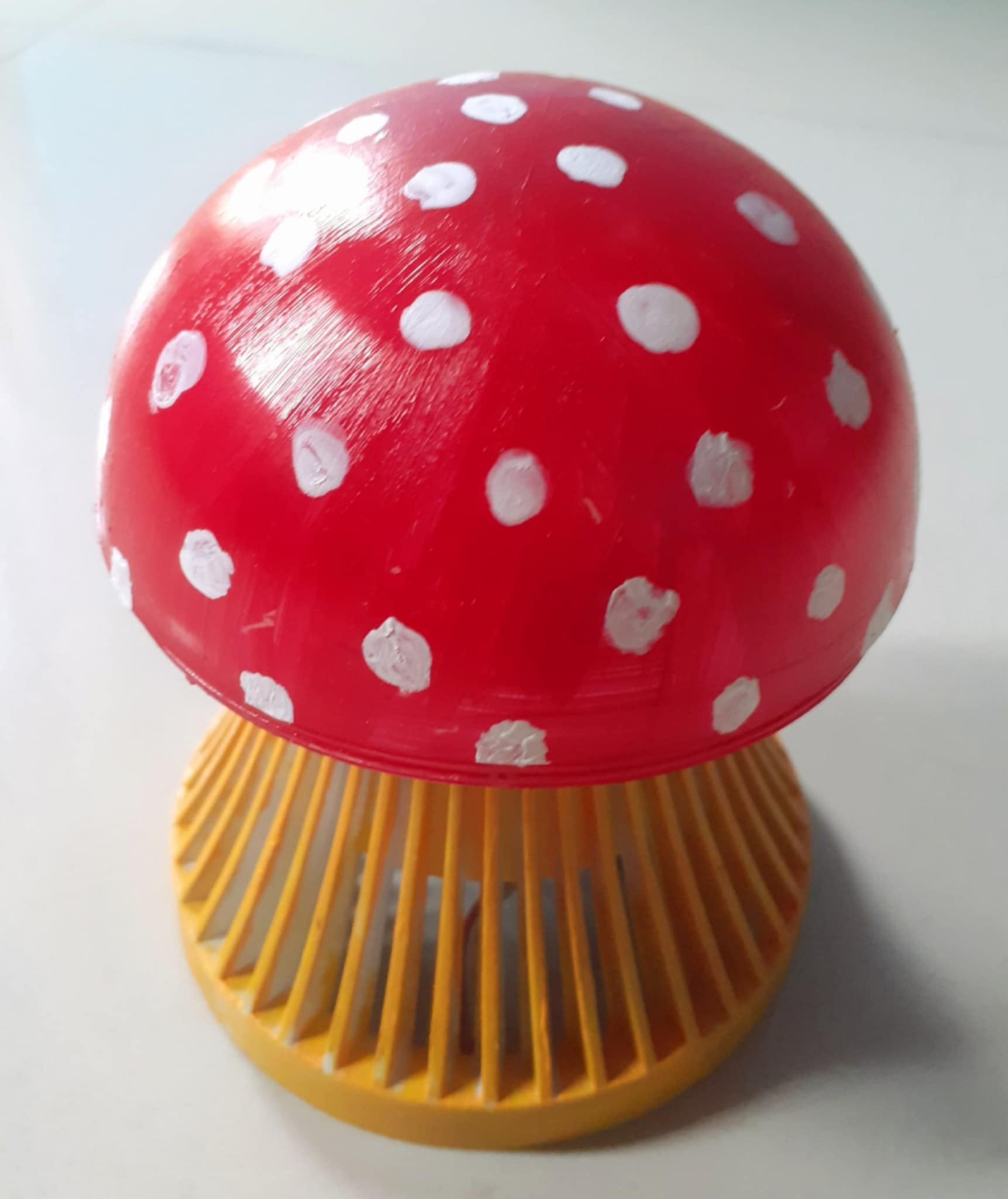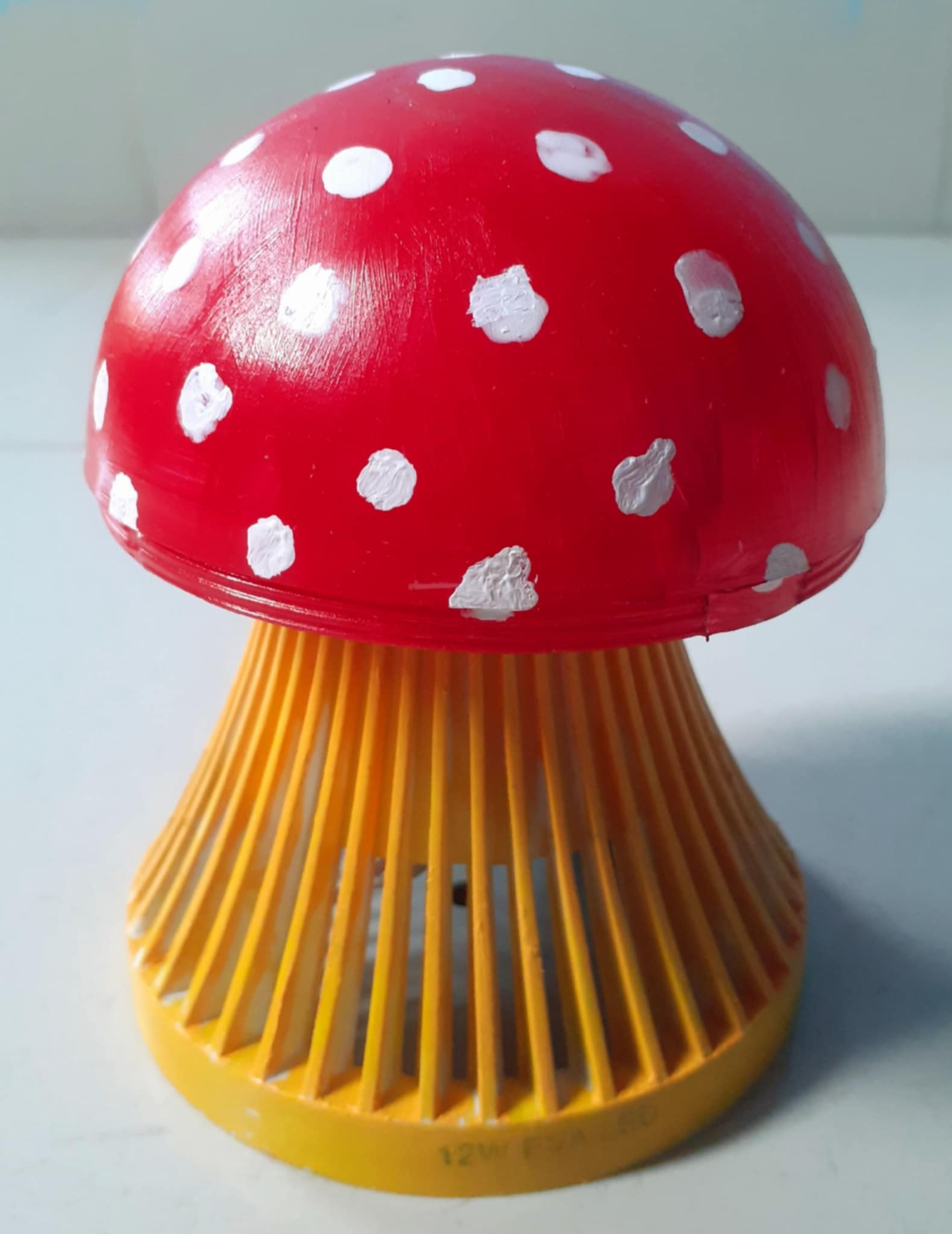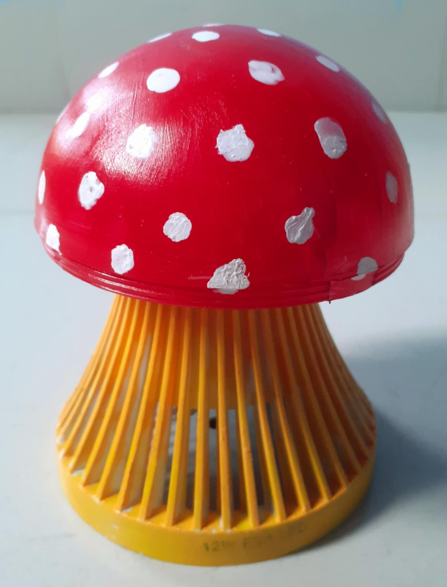 এবার বানানো উপরের অংশের সাথে নিচের অংশ লাগিয়ে নেয়ার জন্য গ্লুগান ব্যবহার করেছি। এতে দু'টো অংশ বেশ শক্তভাবে লেগে থাকবে। গ্লুগান দিয়ে উপরের অংশের সাথে নিচের অংশ যুক্ত করে পুরাতন লাইট দিয়ে মাশরুমের শোপিসটি বানিয়ে নিলাম। এখন দেখতে বেশ সুন্দর লাগছে।