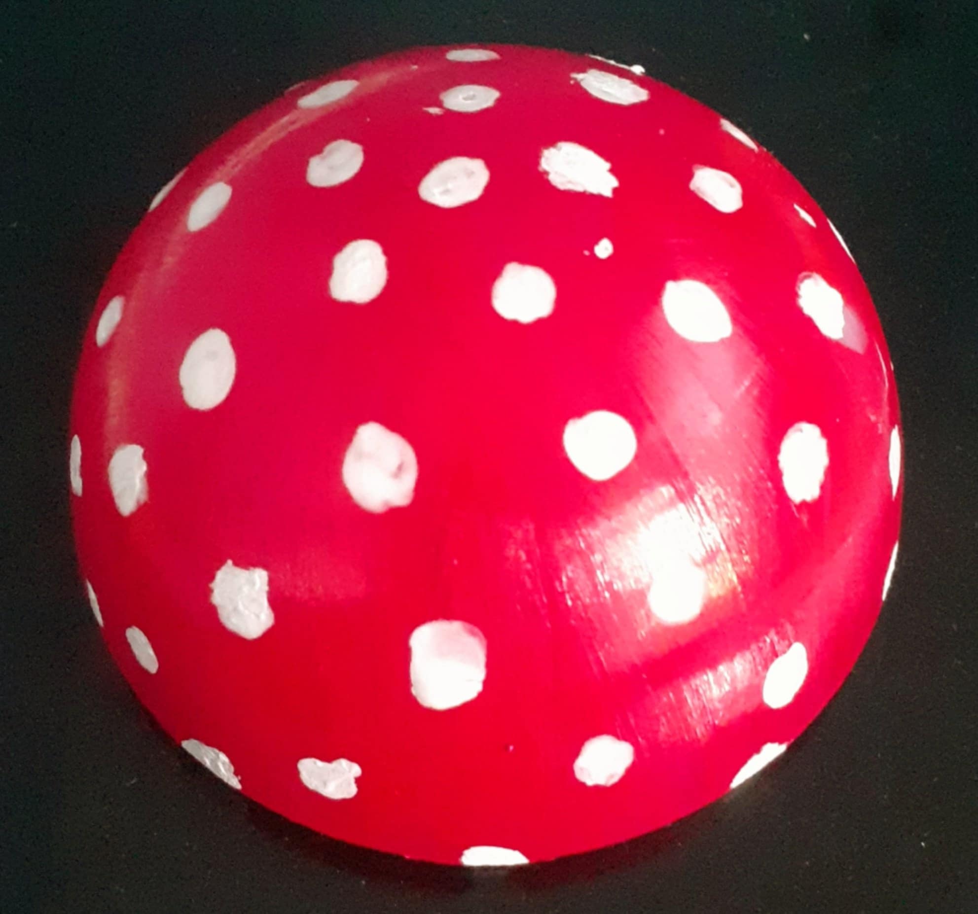 লাল রং শুকিয়ে গেলে ,তার উপরে সাদা রং দিয়ে ডট ডট দিয়ে নিয়ে মাশরুমের উপরের অংশটি বানিয়ে নিয়েছি।