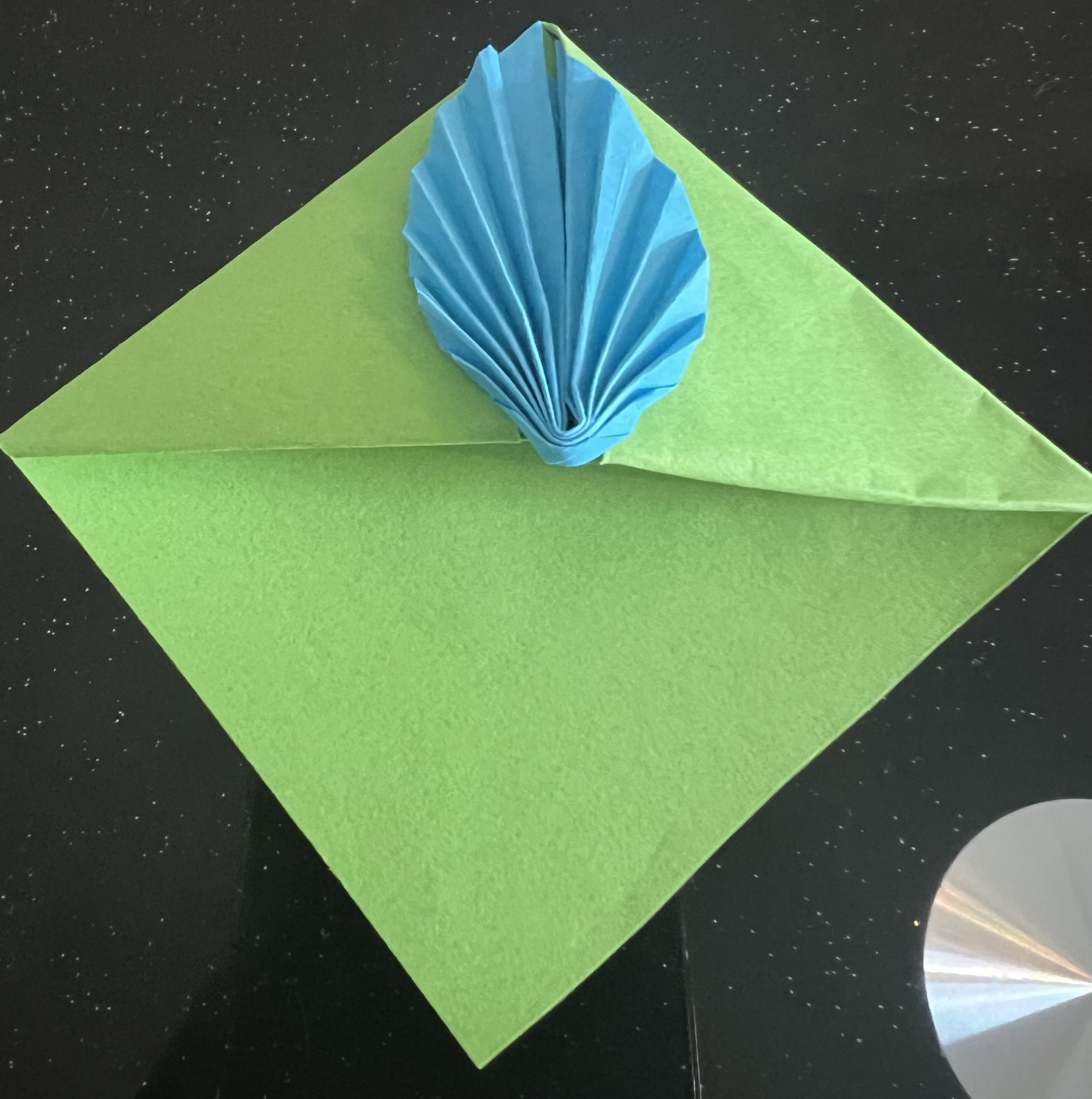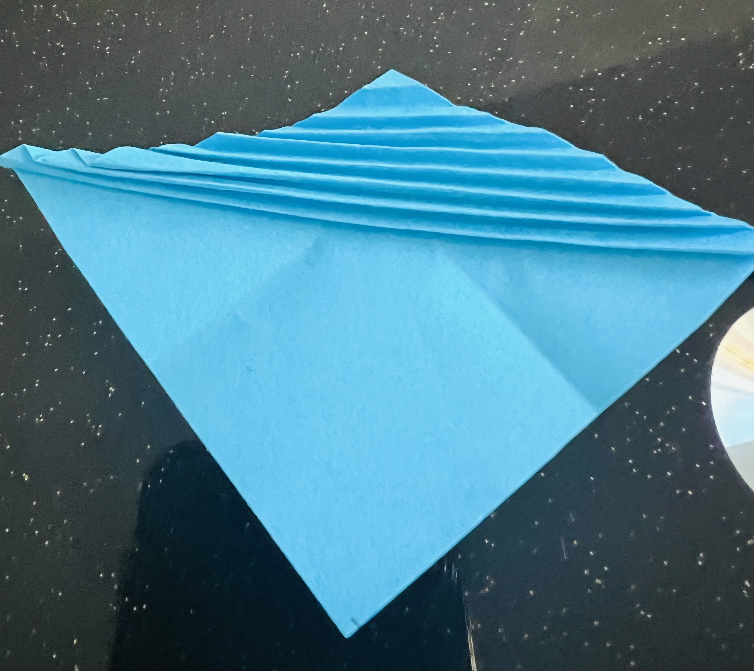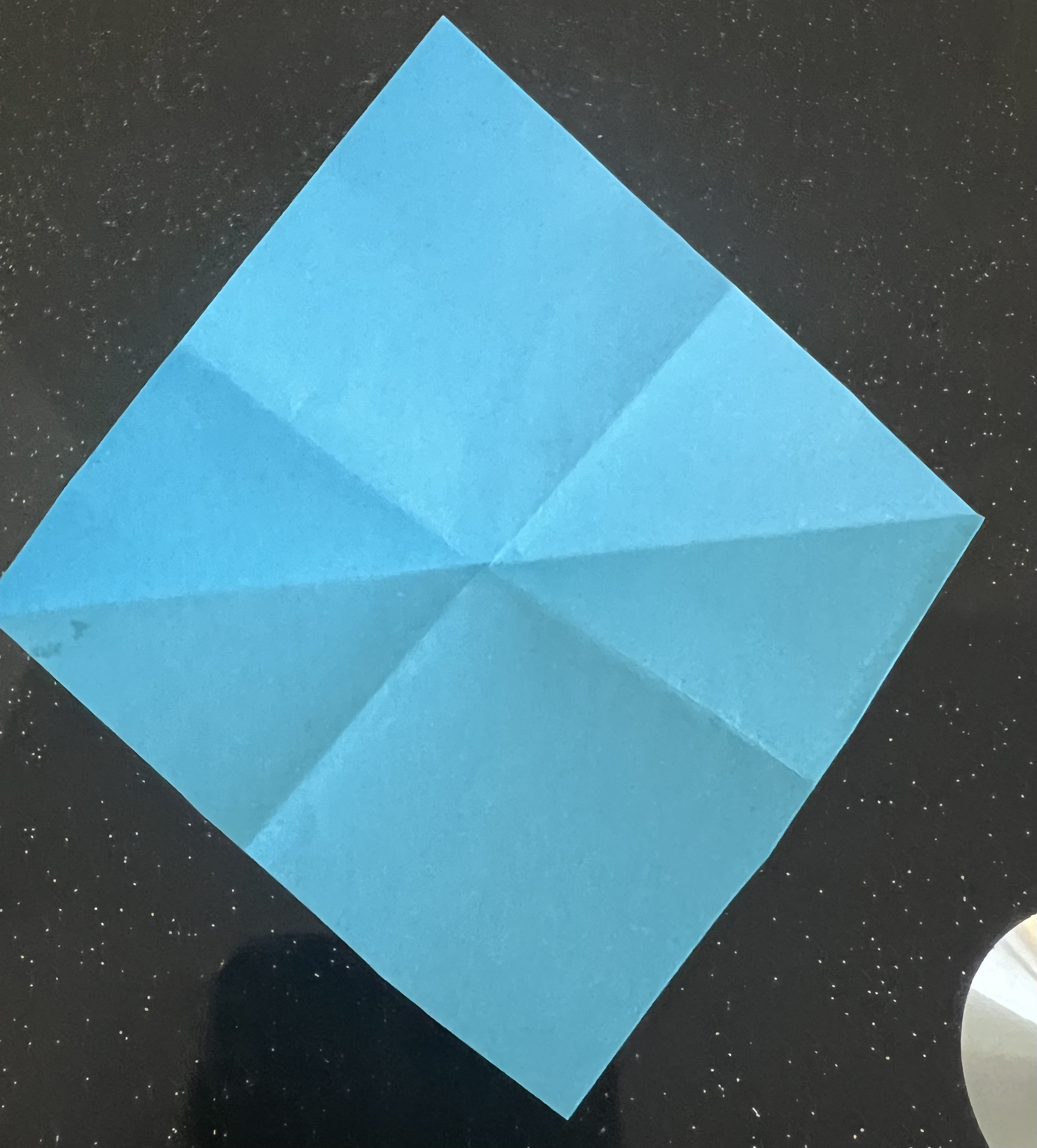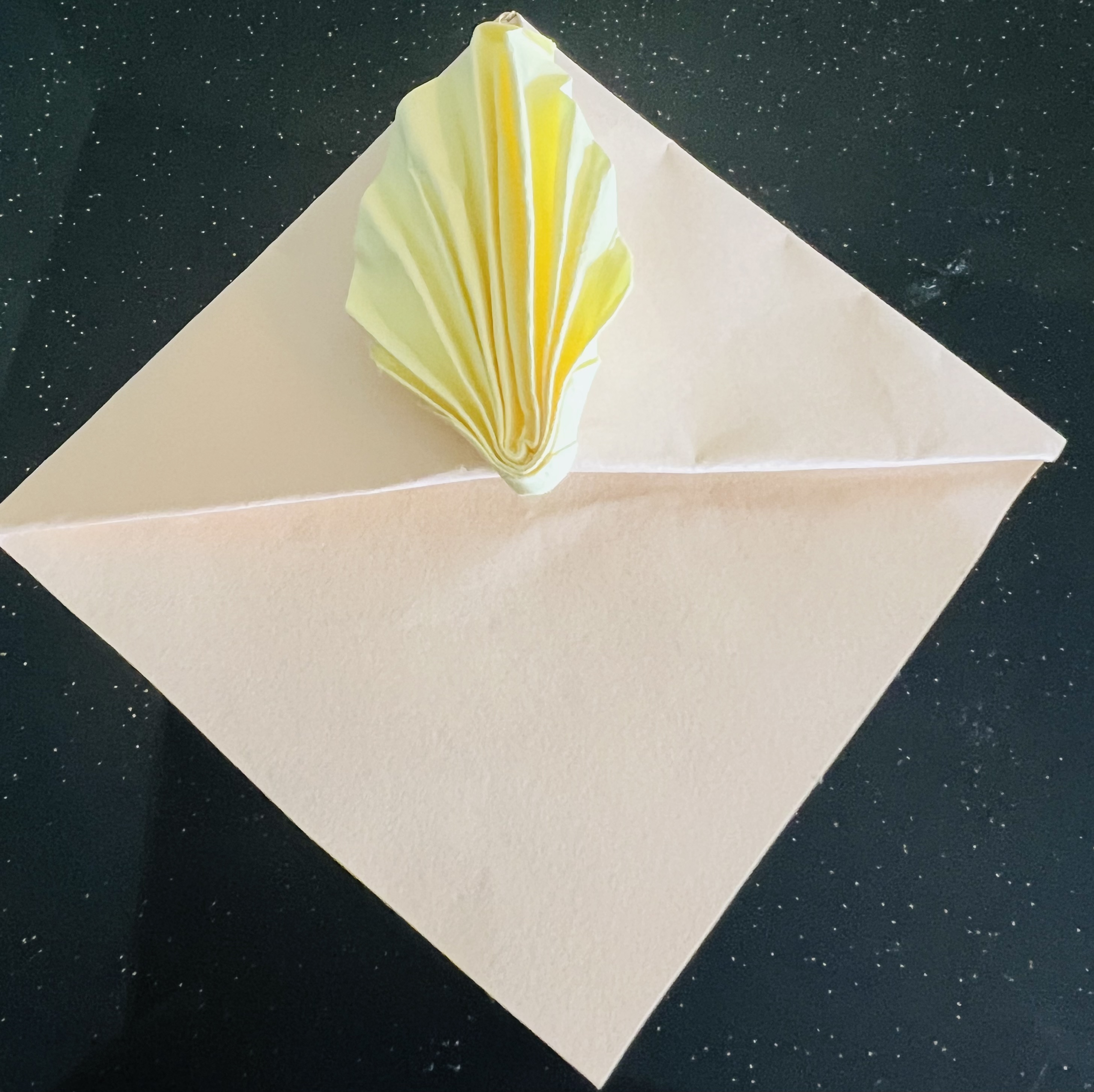 এরপর মাঝ বরাবর এভাবে ভাঁজ করে নিয়েছি। এরপর কোনাকোনিভাবে ভাঁজ করে নিয়েছি।