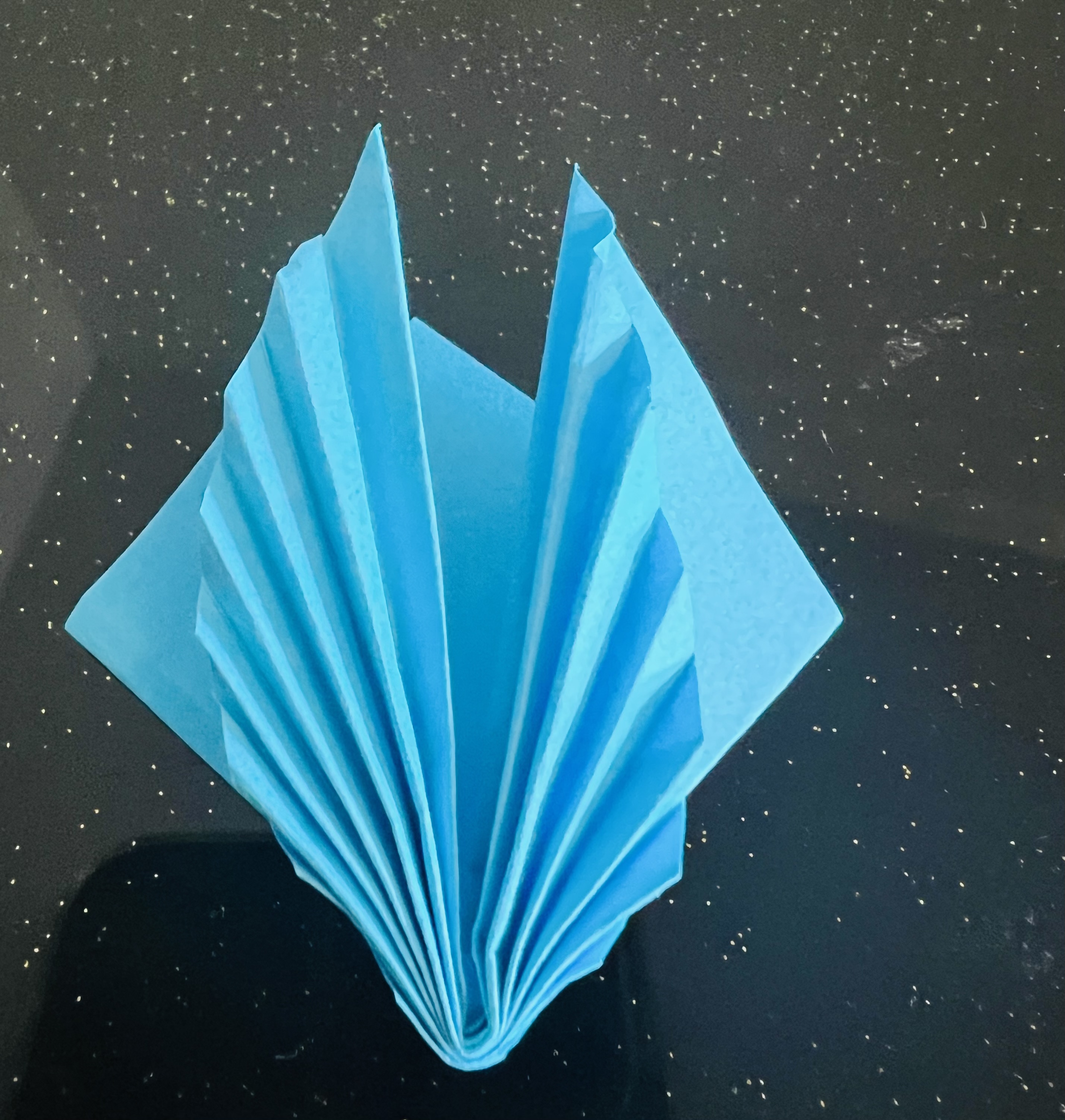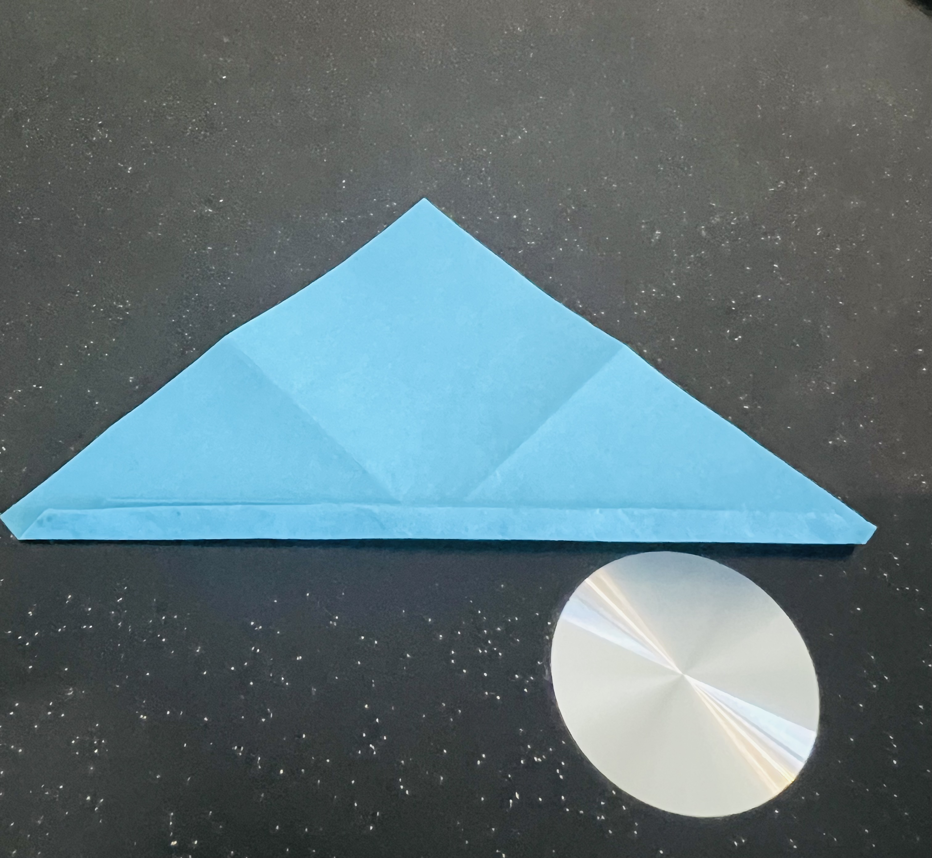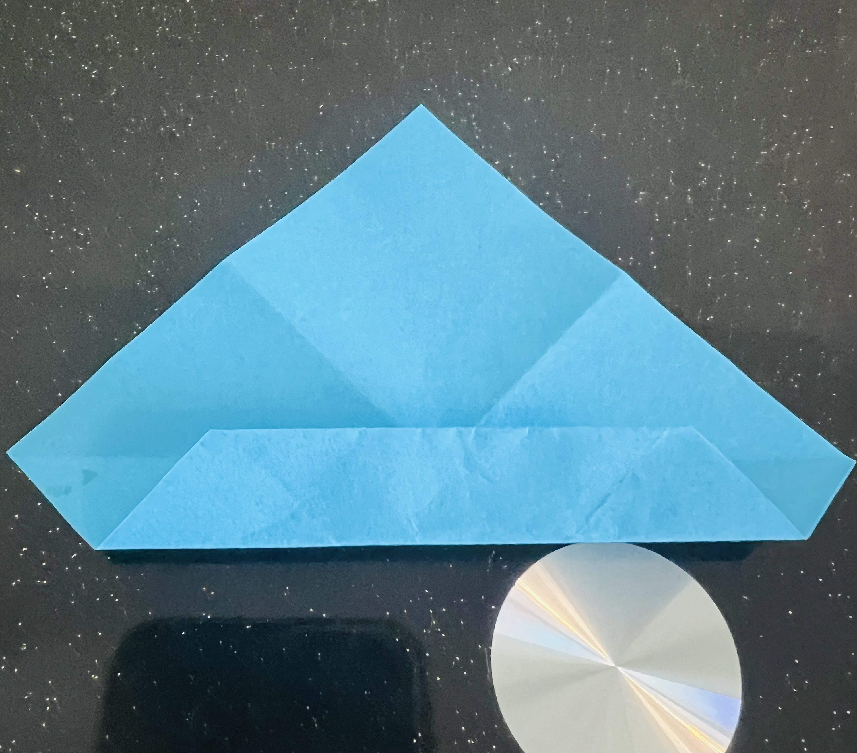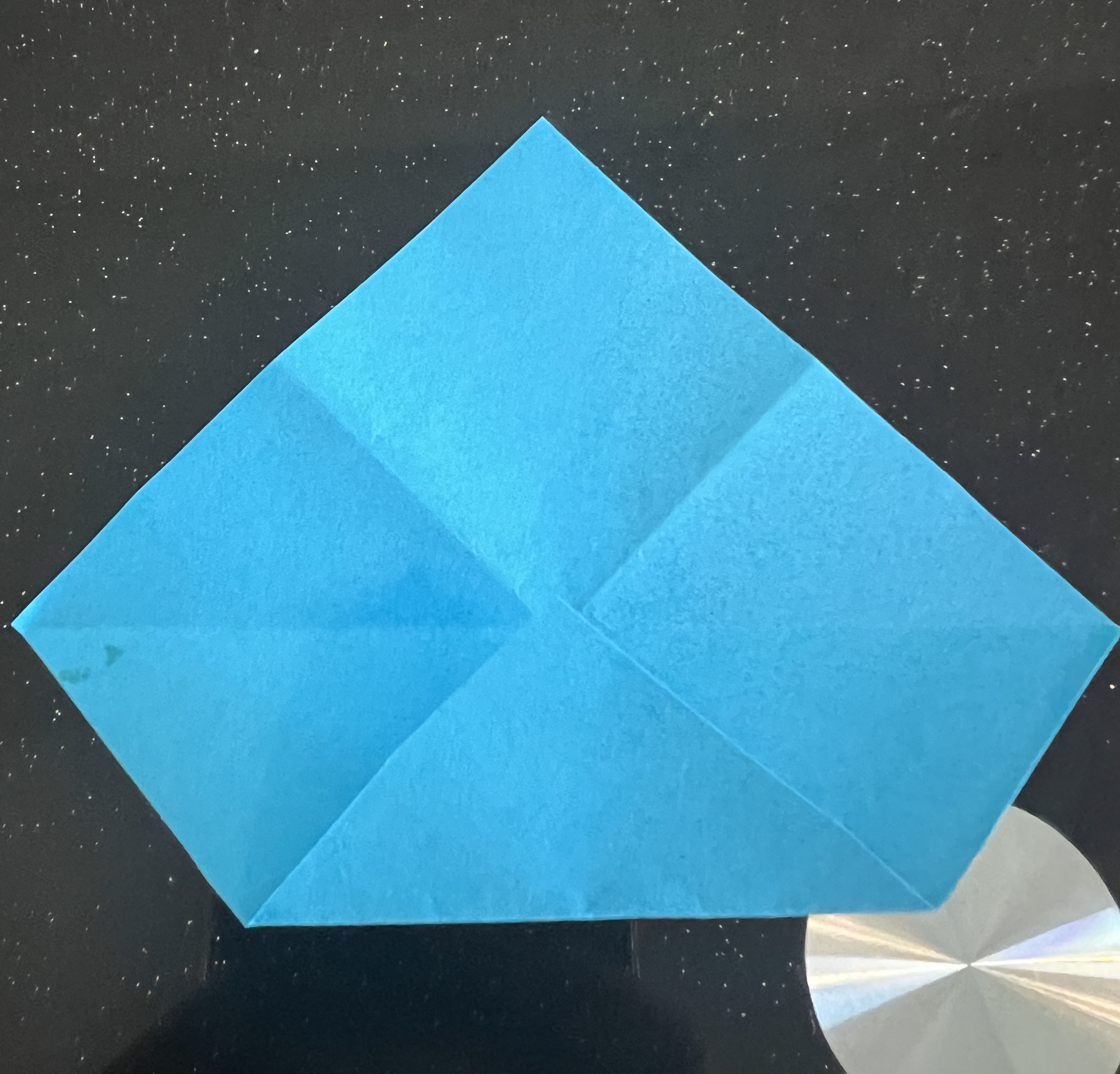 এরপর মাঝ বরাবর এভাবে ভাঁজ করে নিয়েছি। এরপর কোনাকোনিভাবে ভাঁজ করে নিয়েছি।