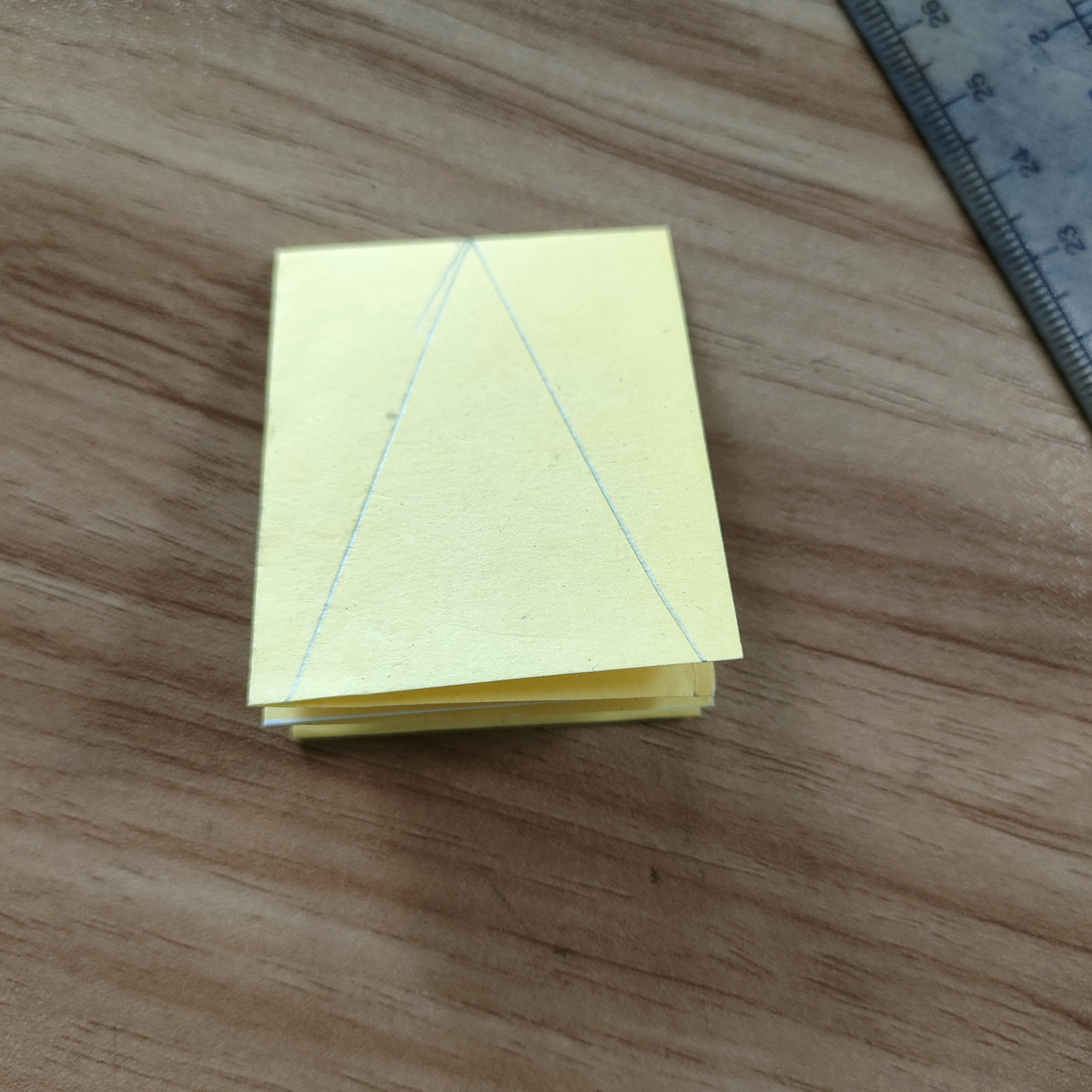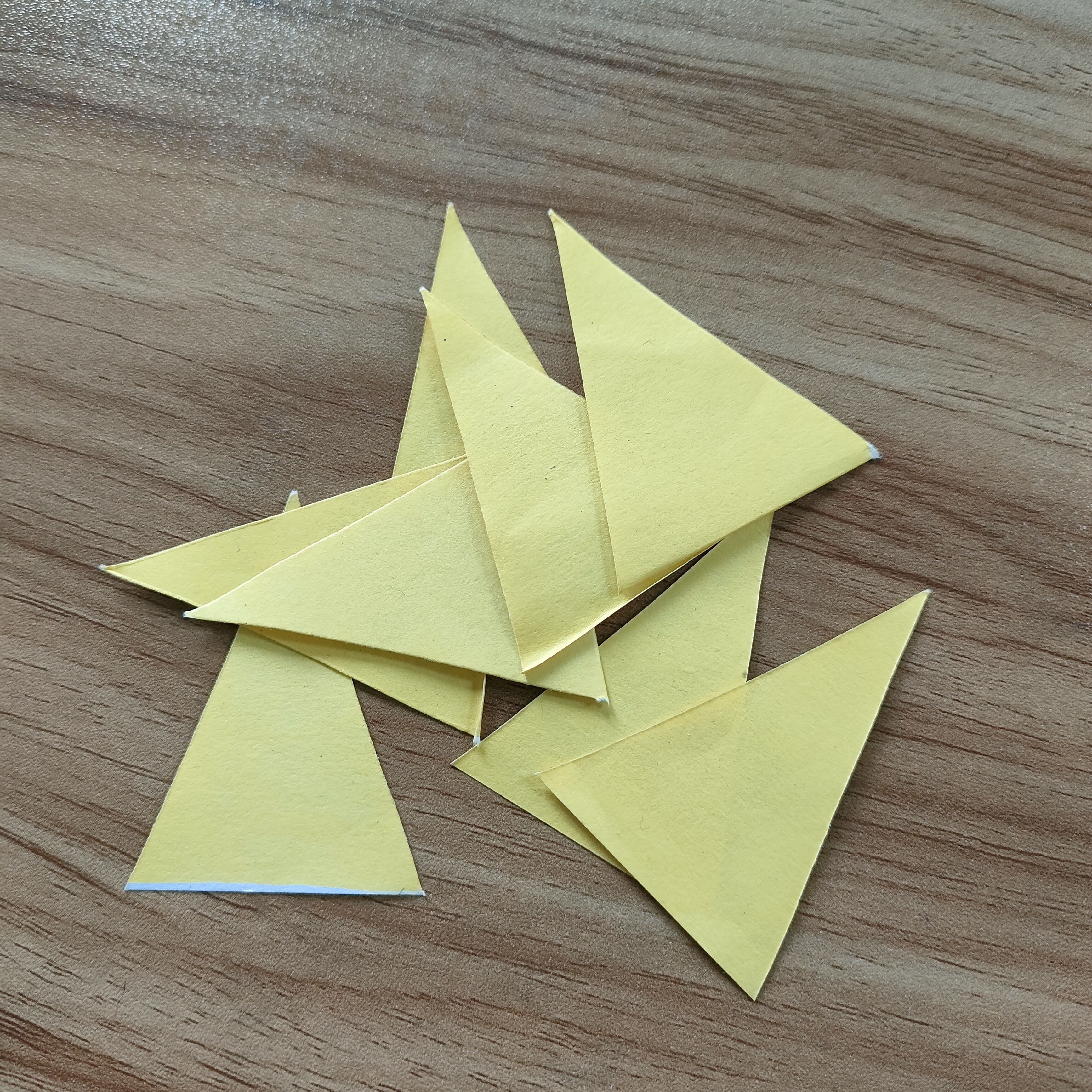 এখন পেন্সিল দিয়ে ত্রিভুজের মত এঁকে কাঁচি দিয়ে কেটে নিয়েছি।তারপর ভাজগুলো খুলেছি।