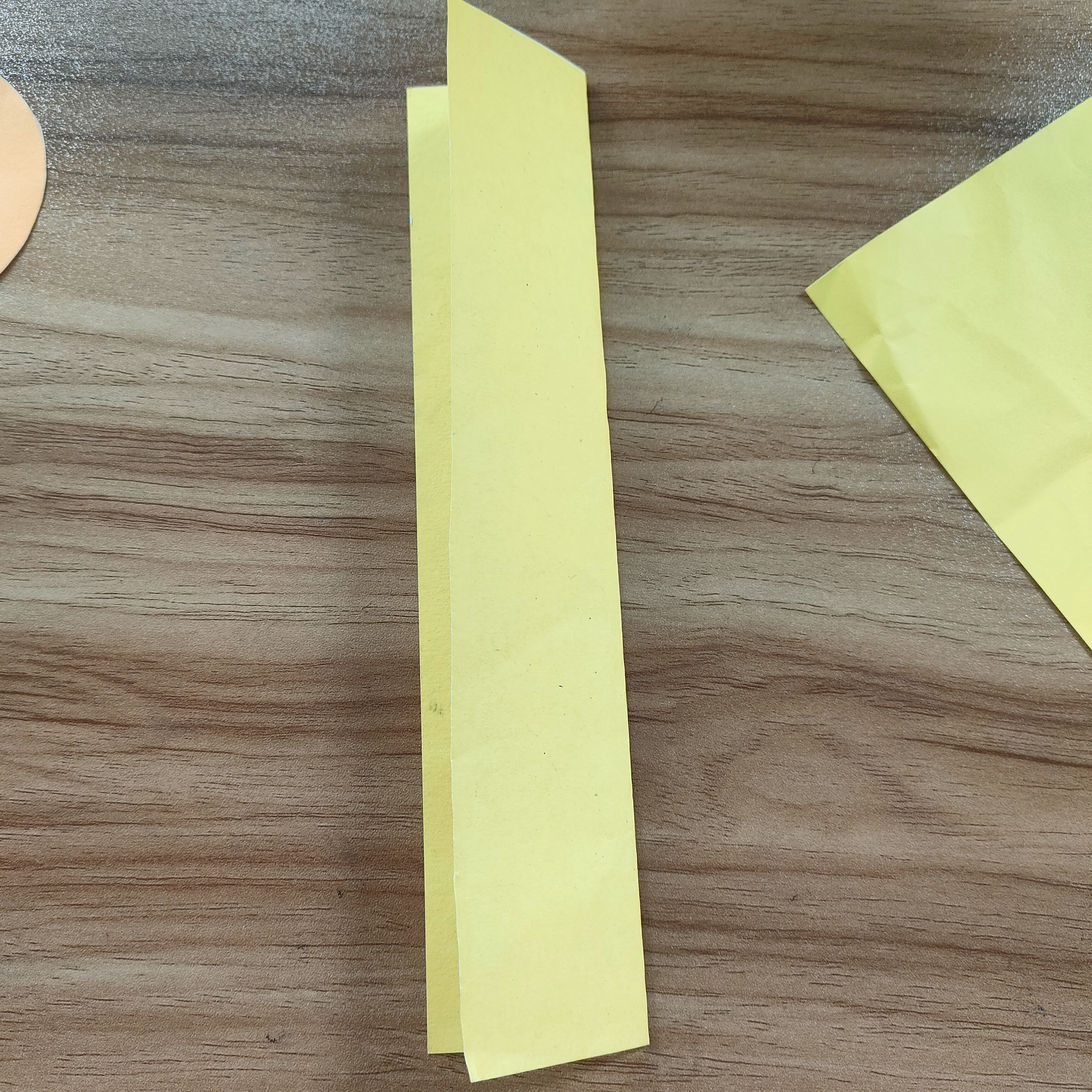 এখন লম্বা একটি কাগজ কেটে নিয়ে লম্বালম্বি একটা ভাঁজ দিয়েছি।