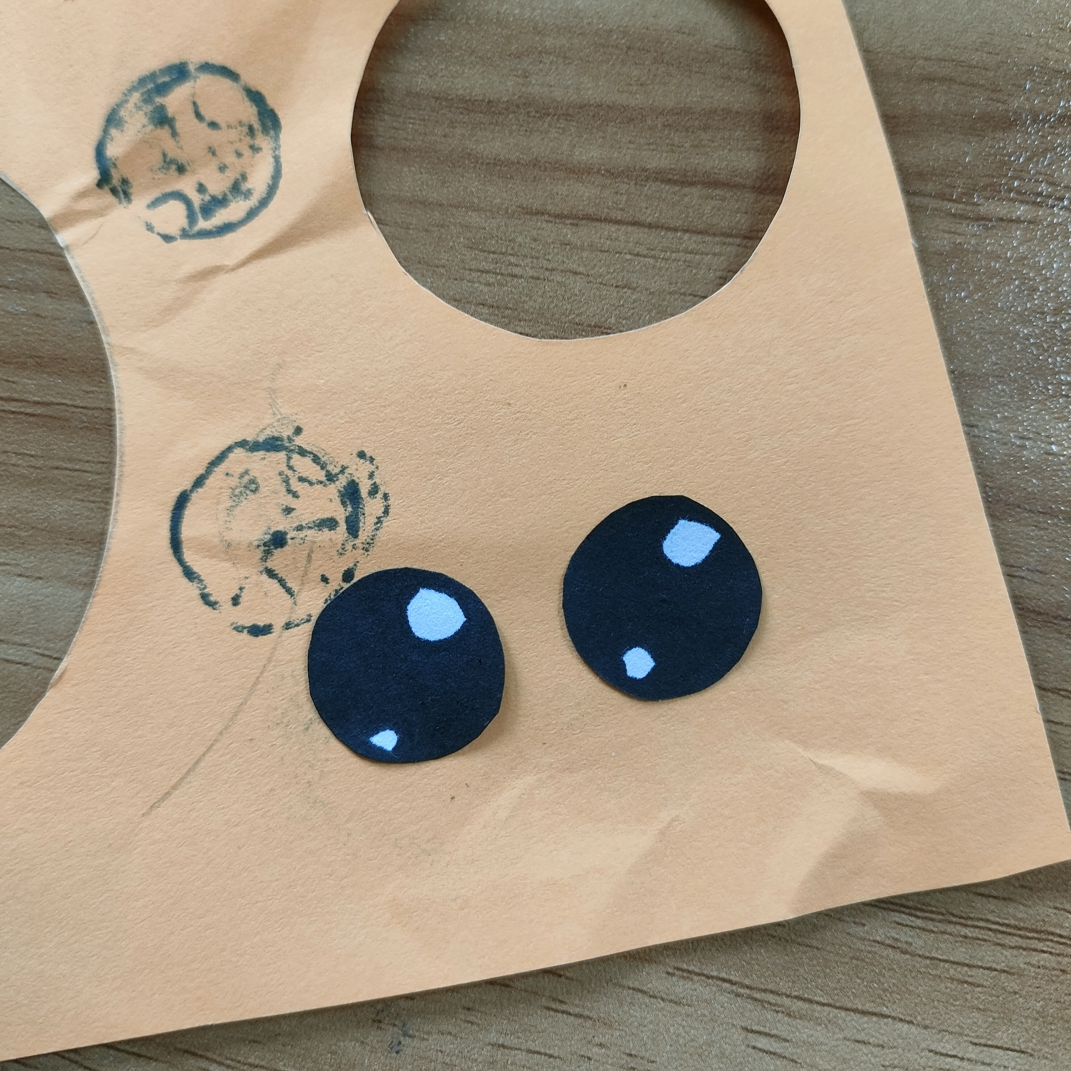 এখন সাদা দুটি ছোট বৃত্ত এঁকে কেটে নিয়েছি। তারপর কলম দিয়ে এঁকে চোখ বানিয়ে নিয়েছি।