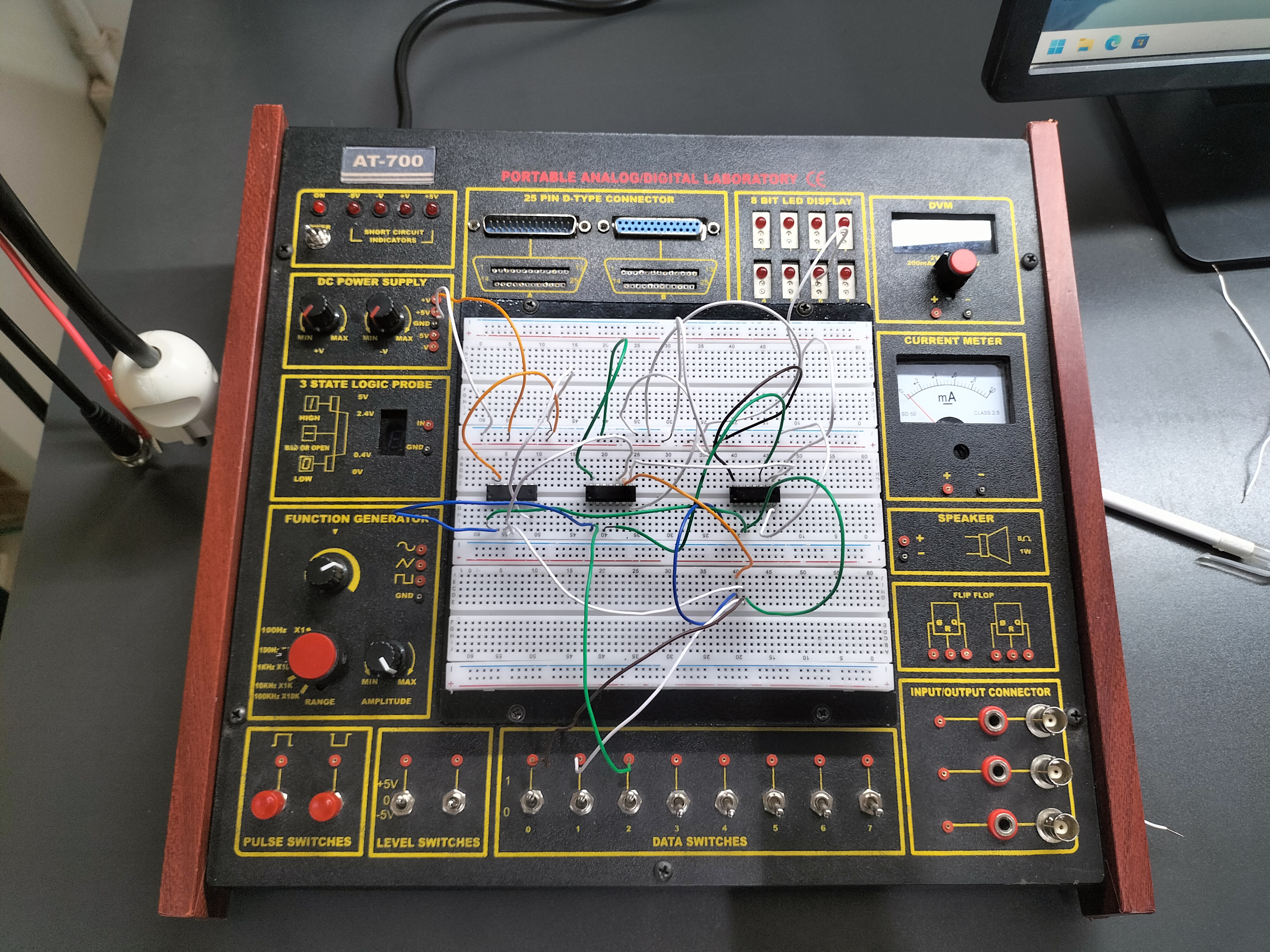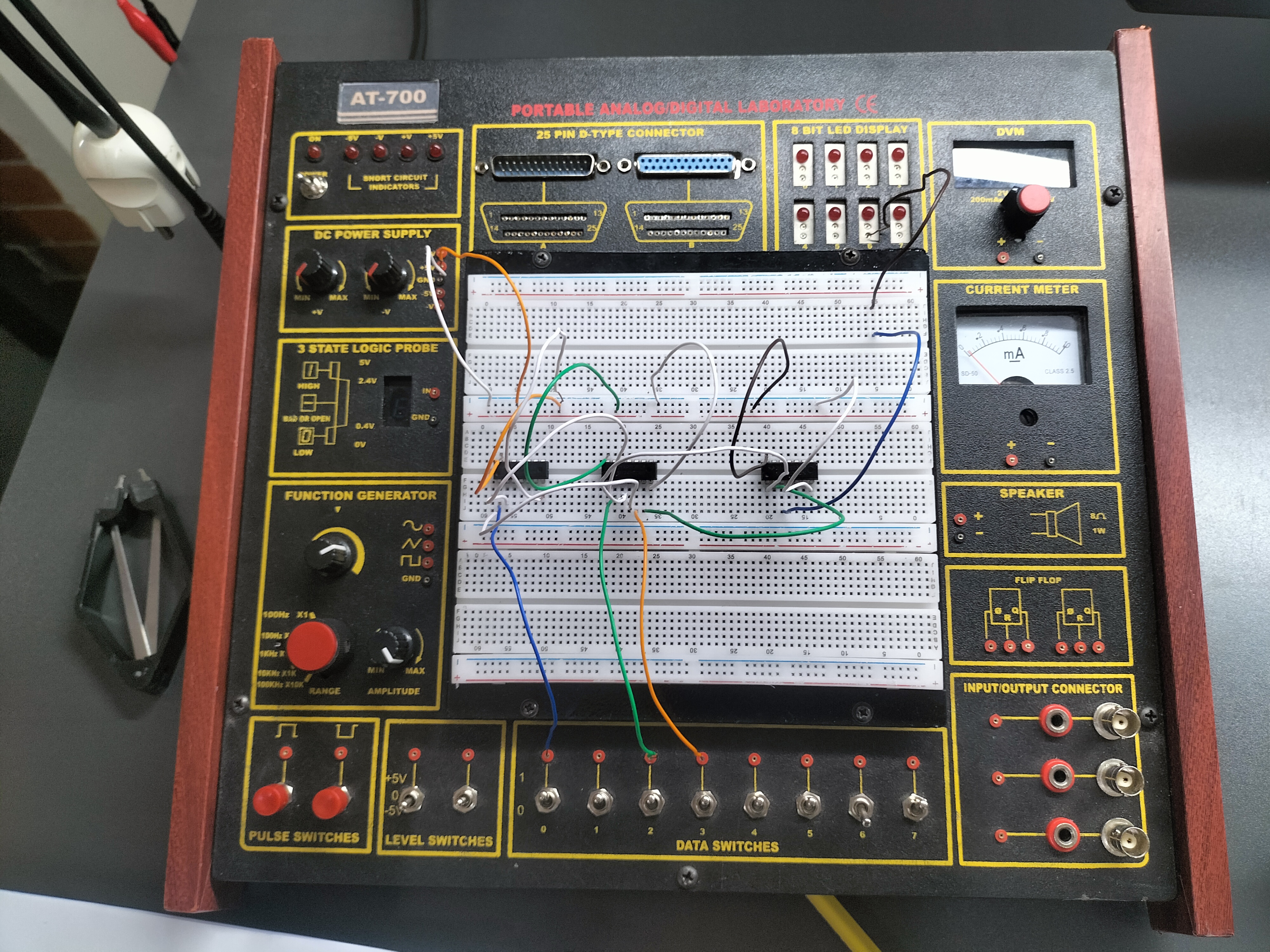 এরপর আমাদের আরেকটি ইকুয়েশন দিয়ে সেটি সলভ করে স্যারকে দেখাতে বলে। আমরা আবার ইকুয়েশনটি সলভ করি ট্রুথ টেবিল বানাই এবং ইকুয়েশনটি সিম্পলিফাই করে হার্ডওয়্যারে ইনপুট দেই এবার প্রথম দিকে আমাদের আউটপুট ঠিক আসে না। এরপর আমরা আবার ইনপুটগুলো বসাই এবং টেস্ট করি, দ্বিতীয়বার আমাদের আউটপুট একদম ঠিক আসে এবং আমরা আবার স্যারকে দেখাই।