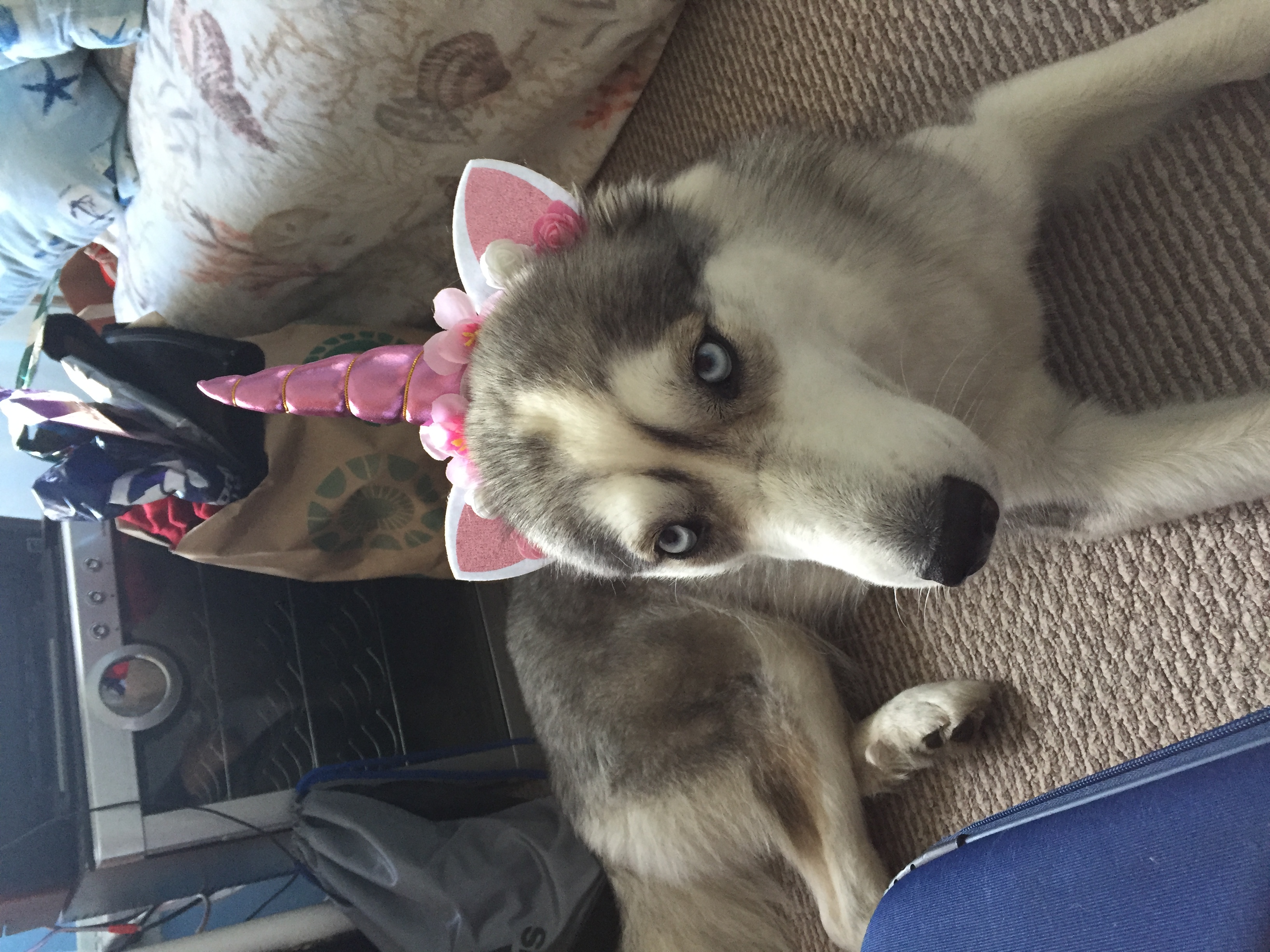 so cute unicdog (🐕 + 🦄) 😊i wonder if that stare is a complain 😁