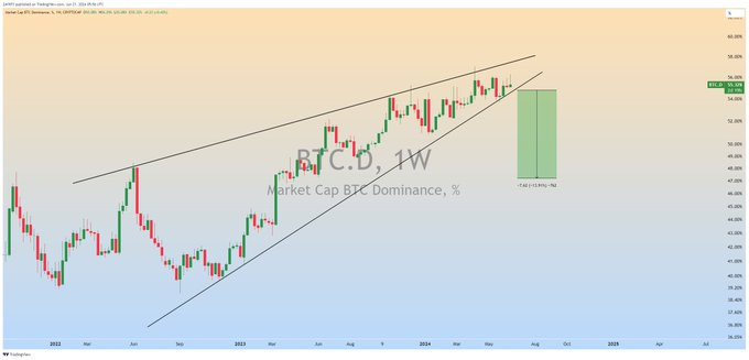 Fallinghaejin (89)in #dominance • 2 years ago So, once Bitcoin Dominance breaks down, Alt Season? Long time coming....