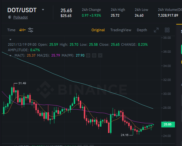 Dot Technically 19-12-21chart-tradiing (25)in #dot • 4 years ago Operational recommendation coin Name : DotUSDT Position: long Entry : 25.70 Exit : 28.21 Stop loss :24 Risk to Reward Ratio :1:2 #btc #cryptocurrency #crypto #blockchain #btceth #bnb