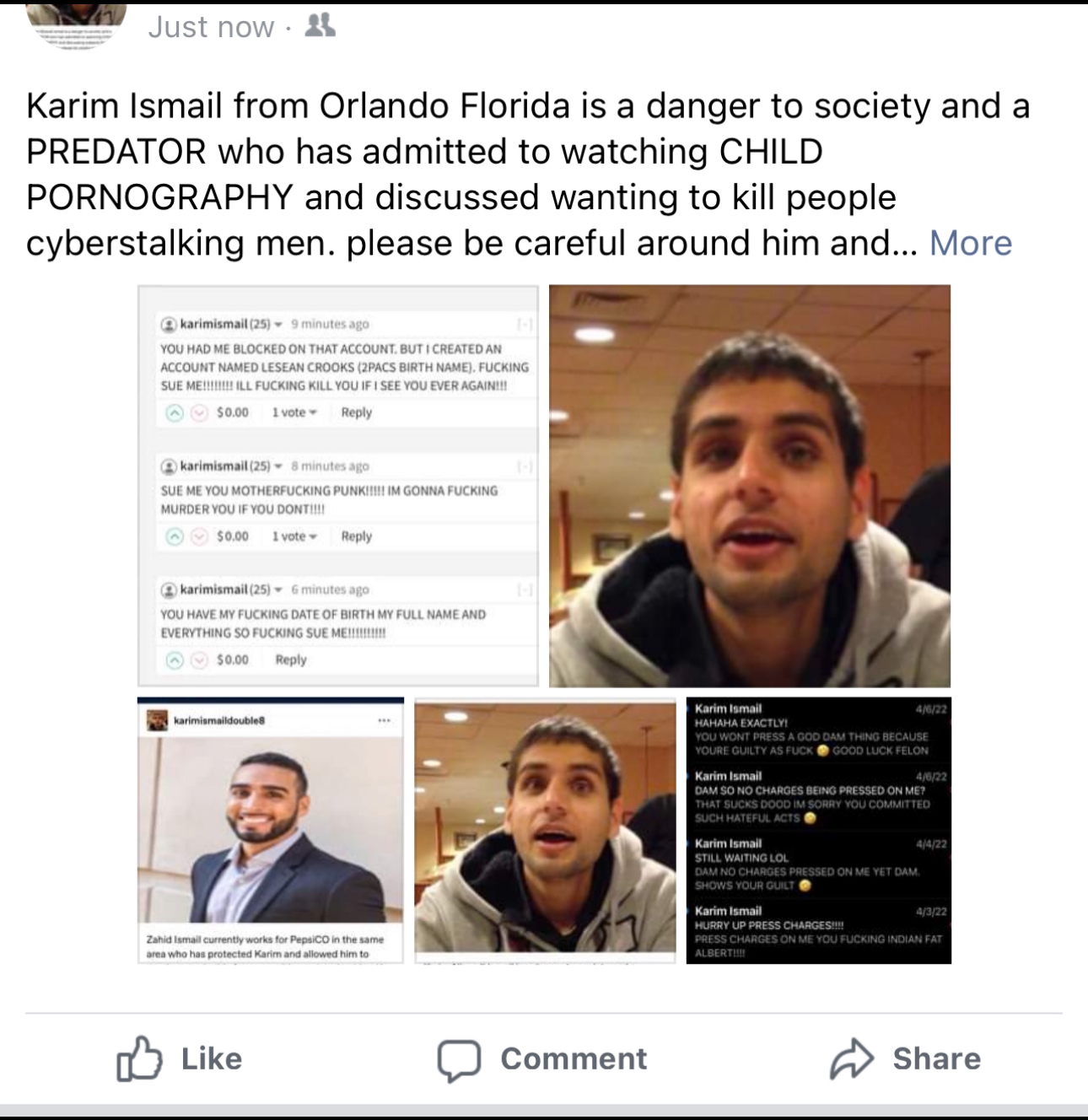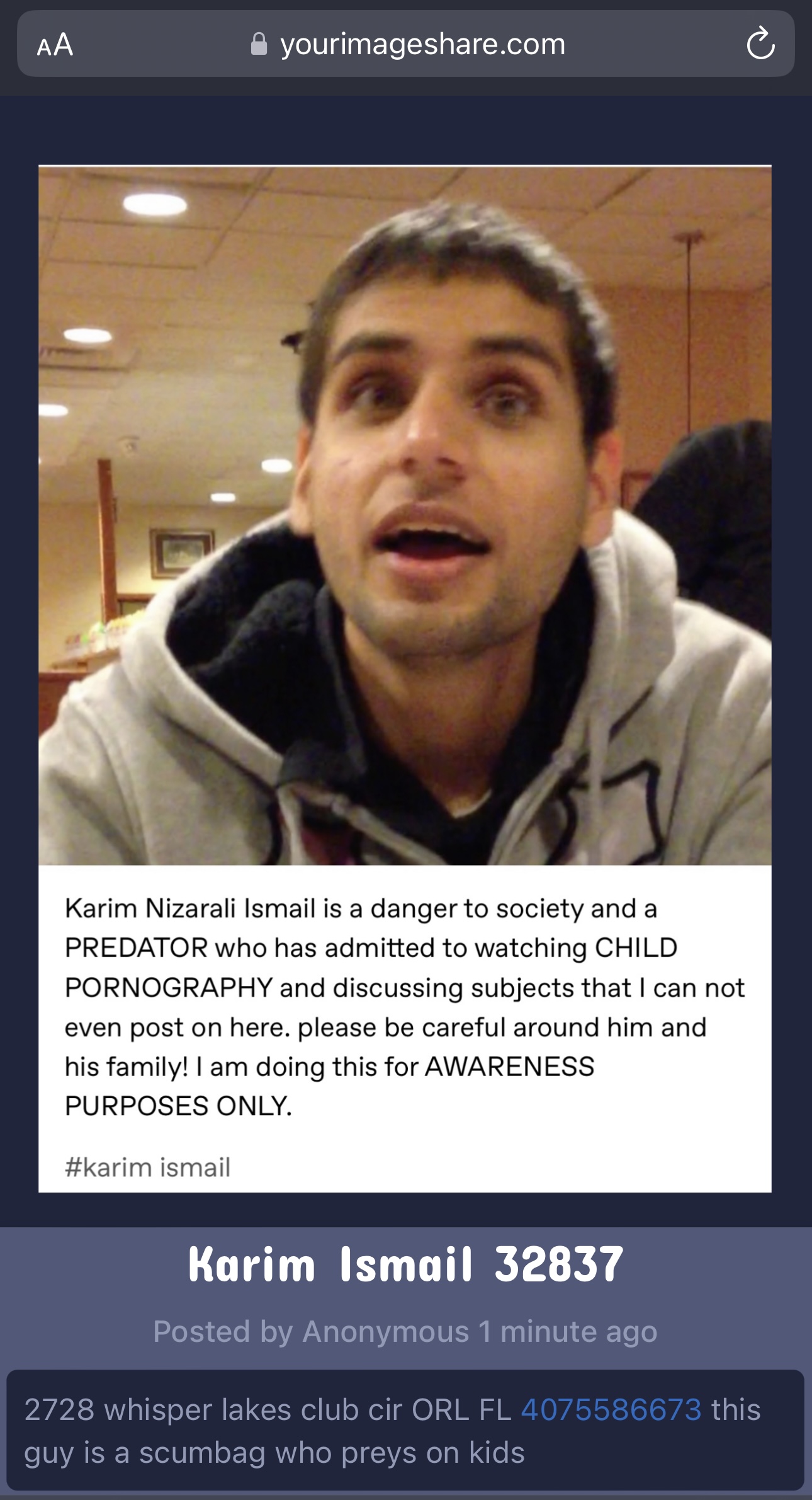 Karim Ismail 32837double8 (25)in #double8 • 2 years ago 2728 whisper lakes club cir CYBERSTALKER VIOLENT FELON #it #consulting #orlando #florida