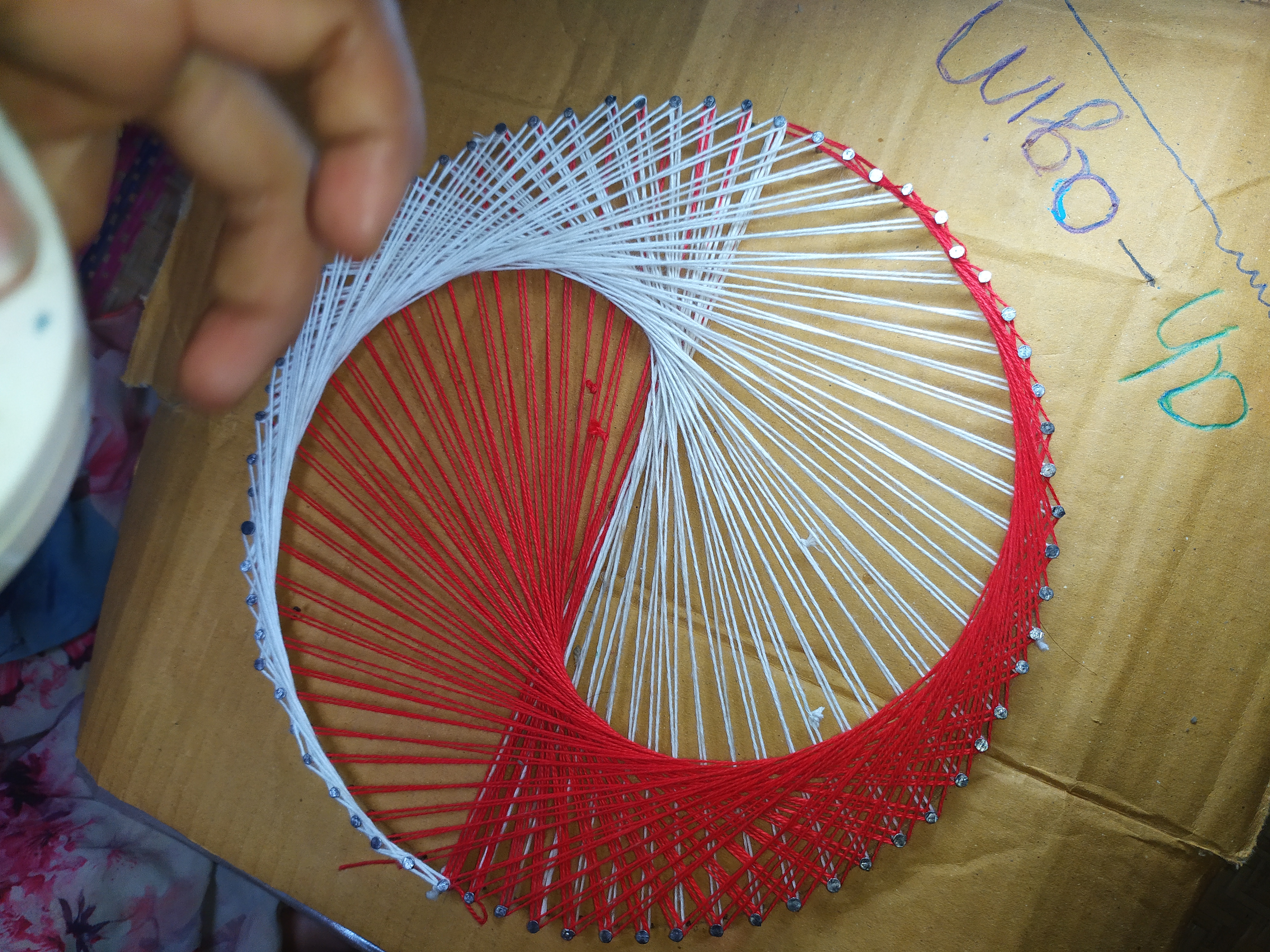 5 - White yarn and red yarn