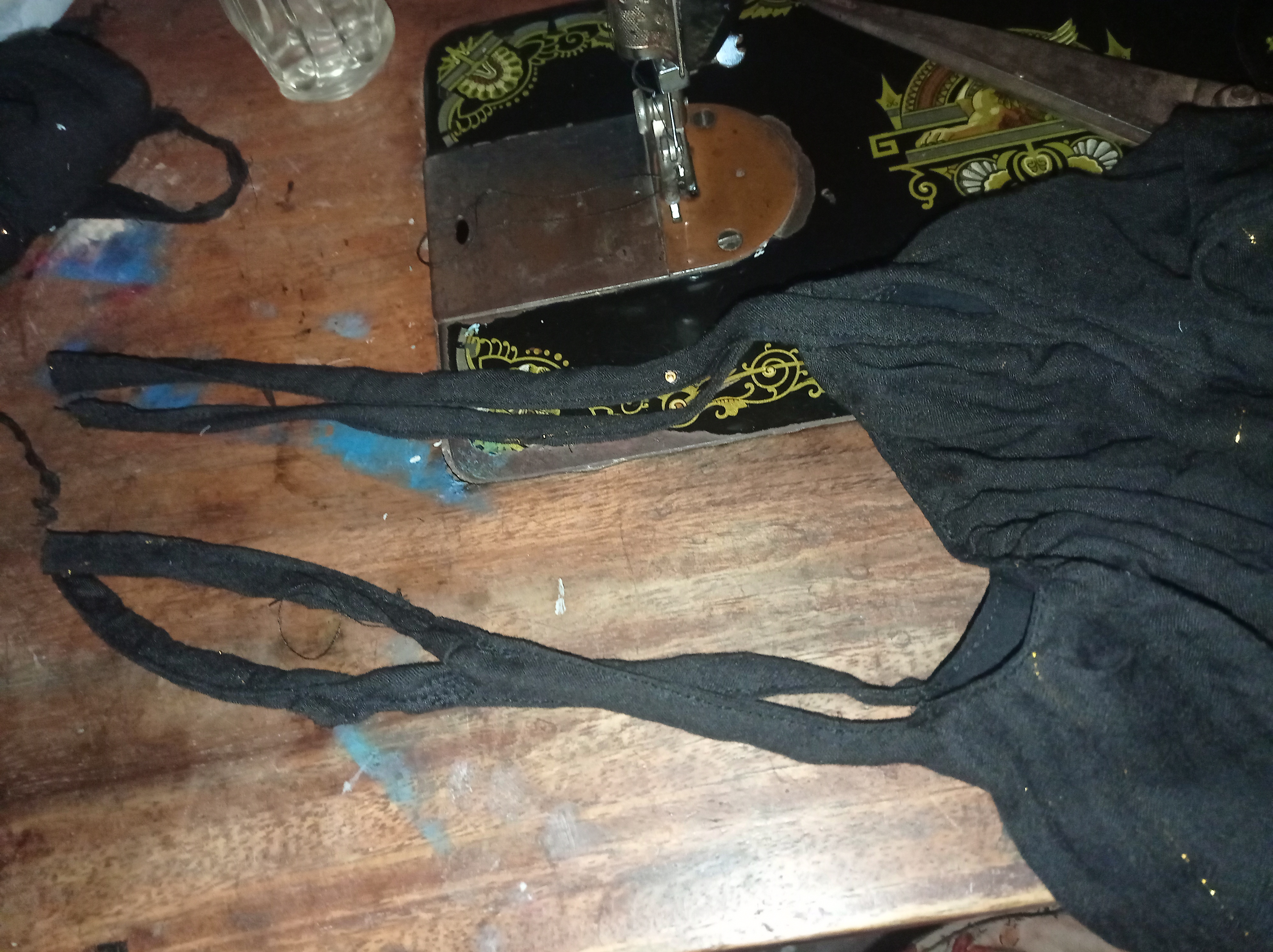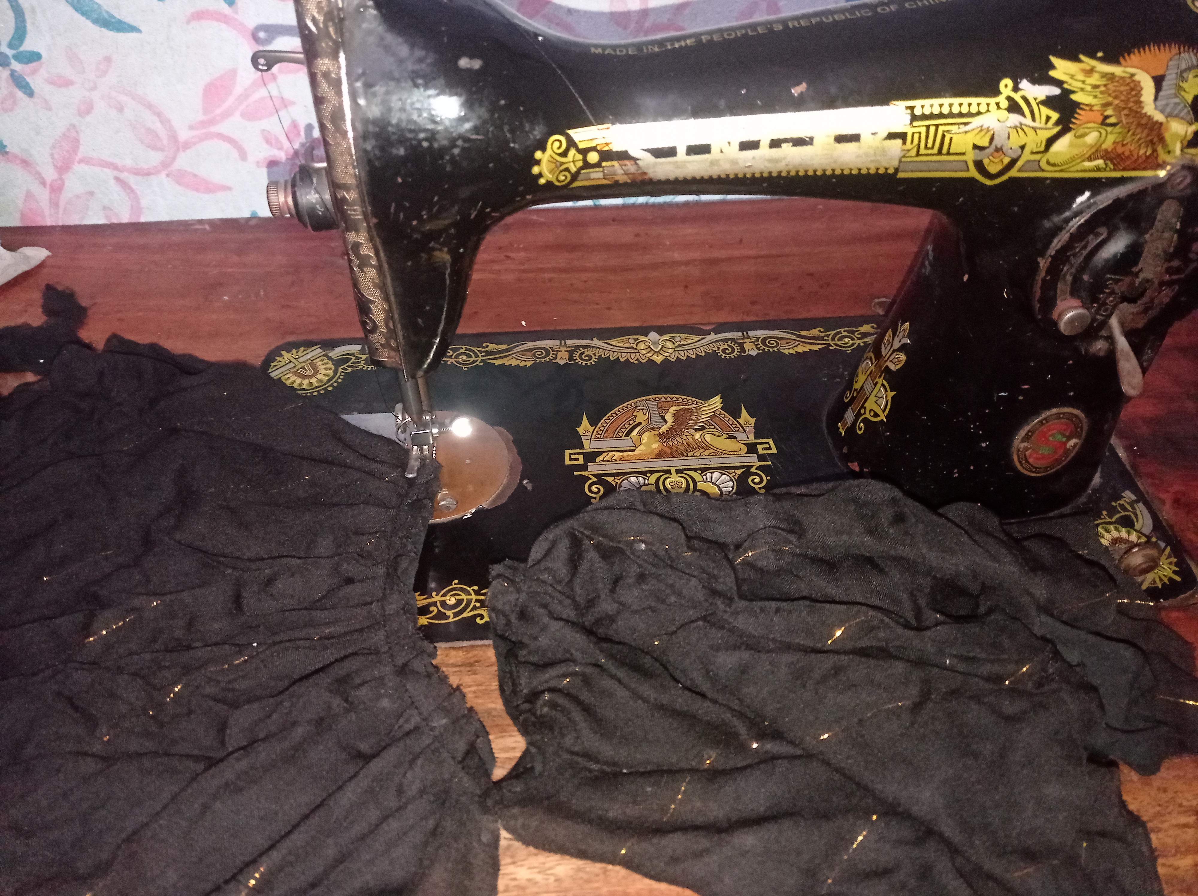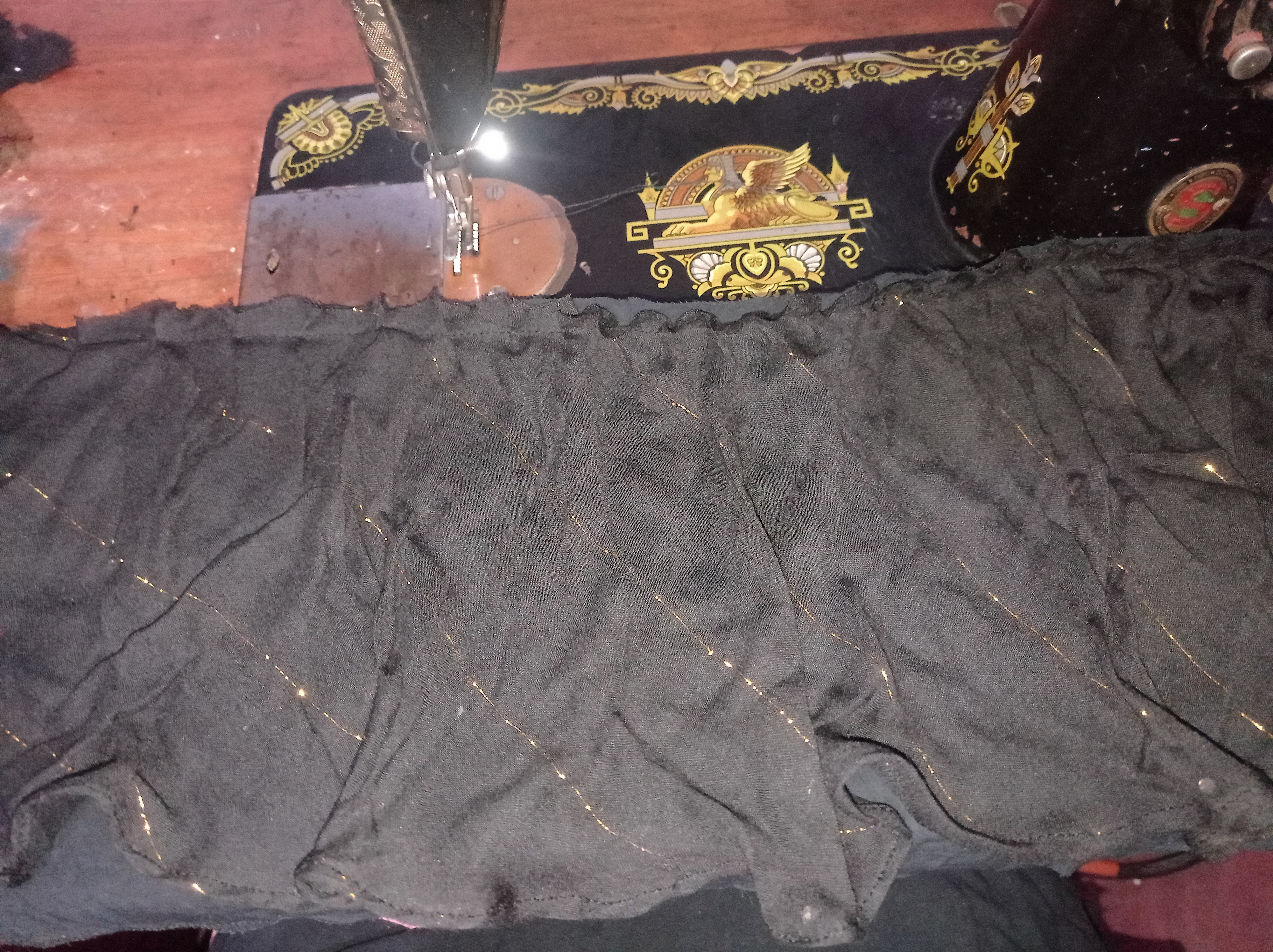 এরপরে আমি জামার দ্বিতীয় অংশটাকেও একই রকম ভাবে ছোট ছোট কুচি করে সেলাই করে নিলাম।