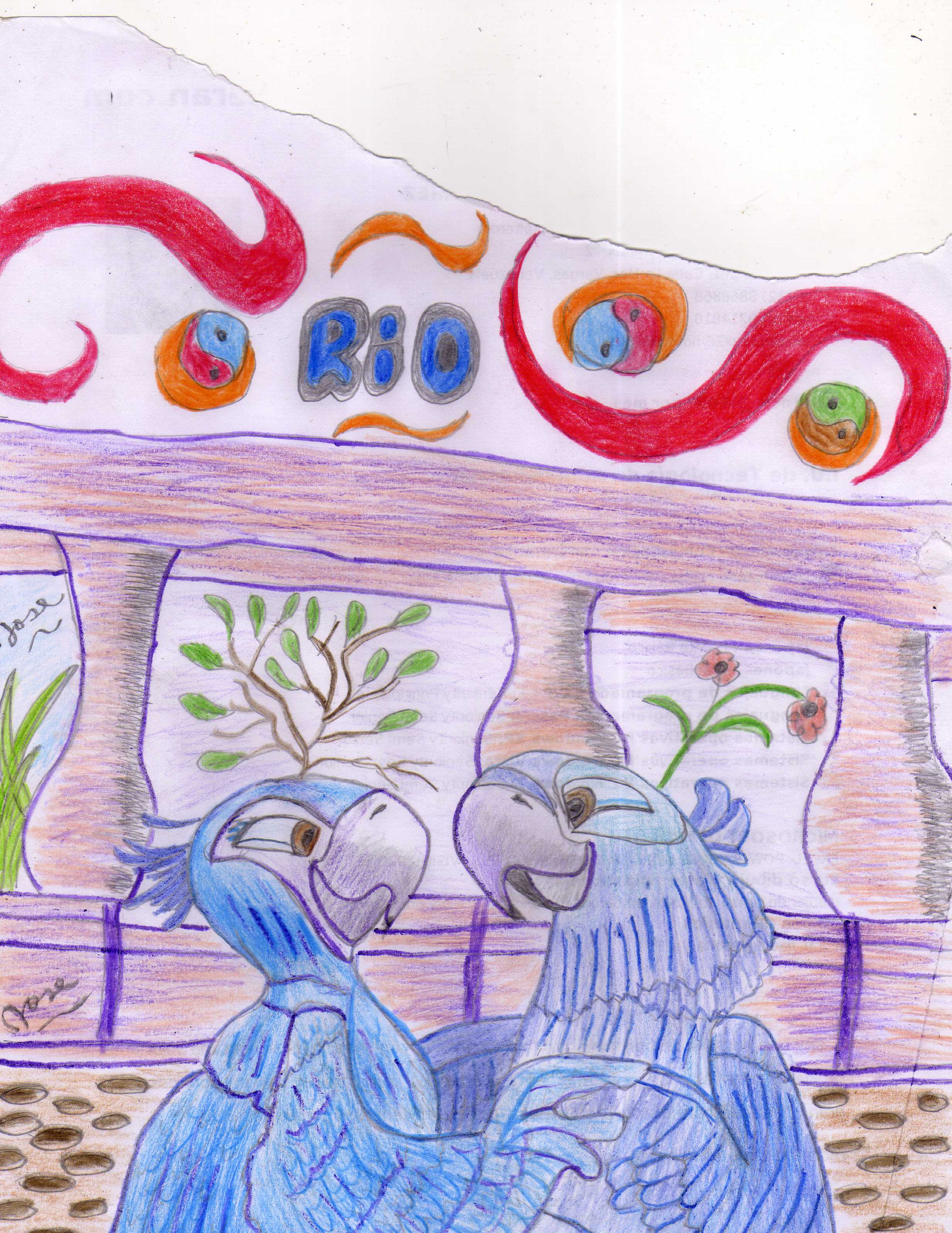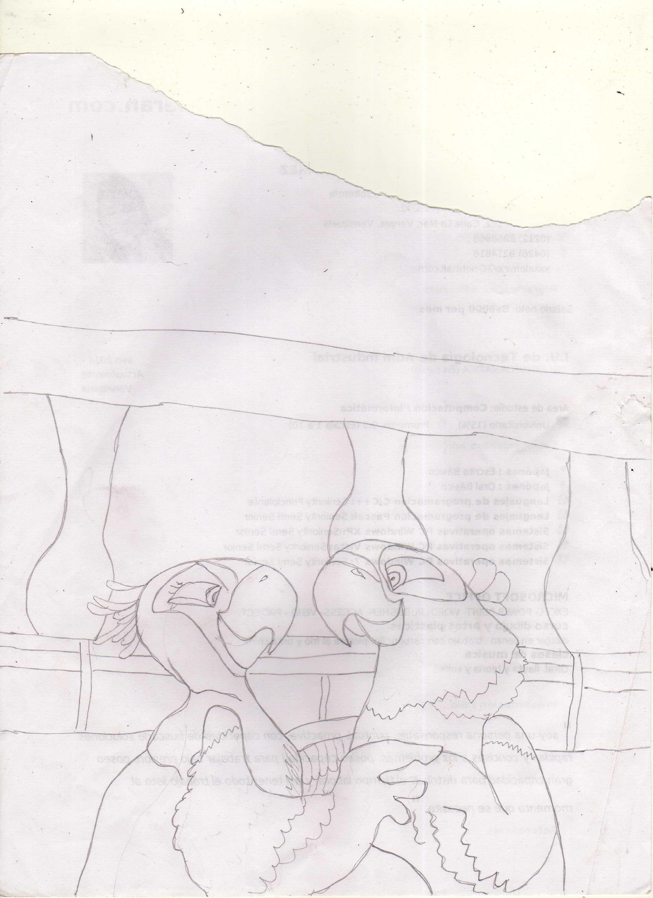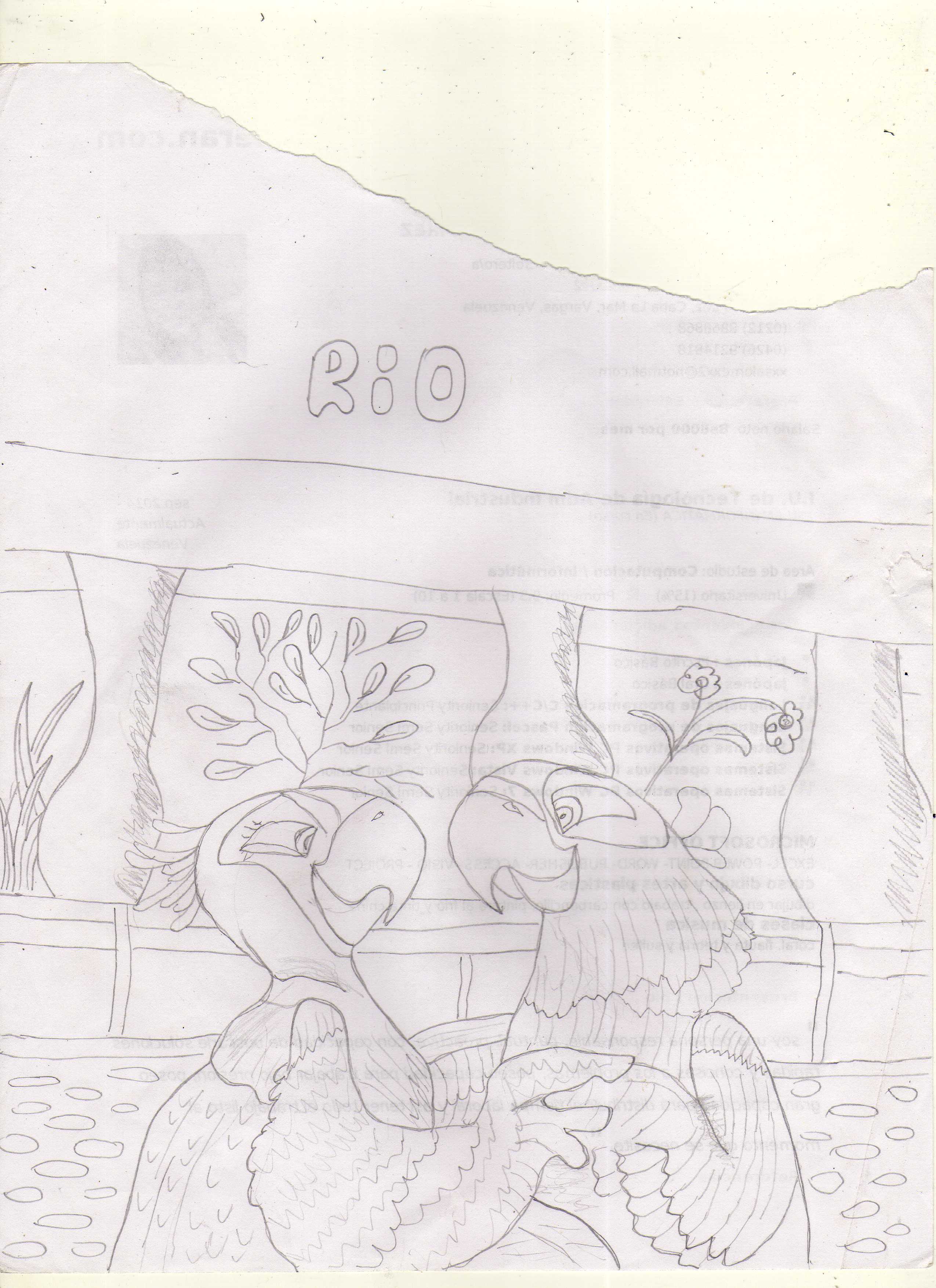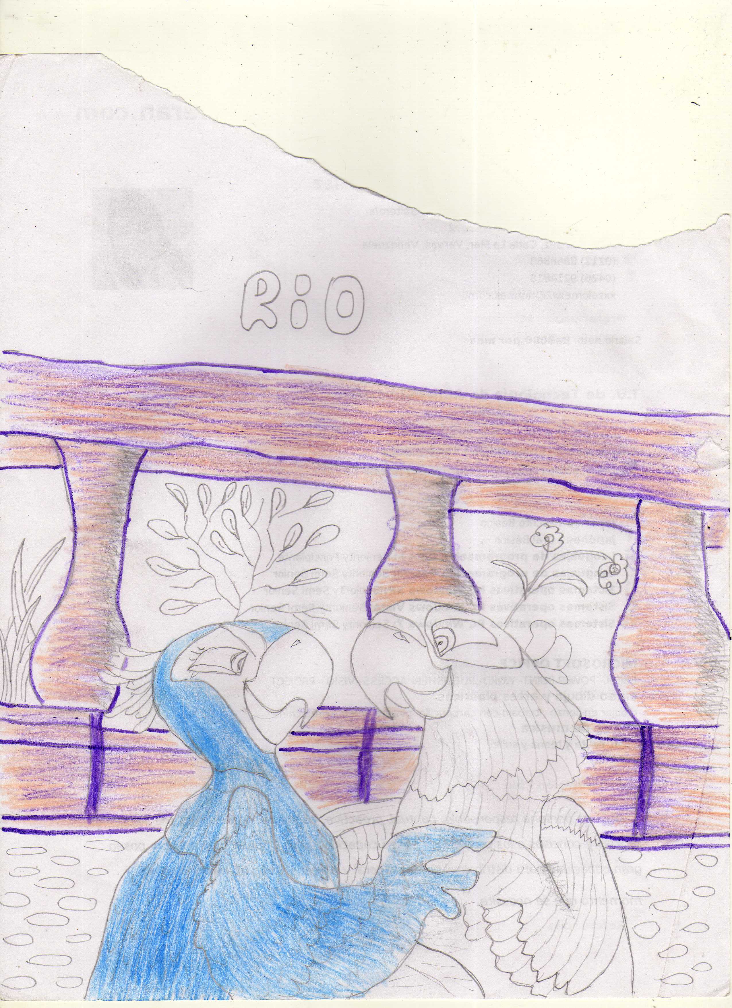 Hola amigo, en este día quiero que observen este dibujo que realice a mano alzada, esta basado en la película infantil Rio, que nos cuenta la vida de un simple loro azul llamado Blue. En este dibujo se puede apreciar una escena romántica de Blue y su esposa Perla.