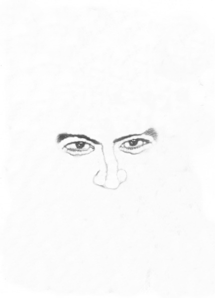 We use the same technique as in the previous portrait, that is, first I draw the eyes, then I draw the nose, lips, chin. In this case, add moustache and goatee