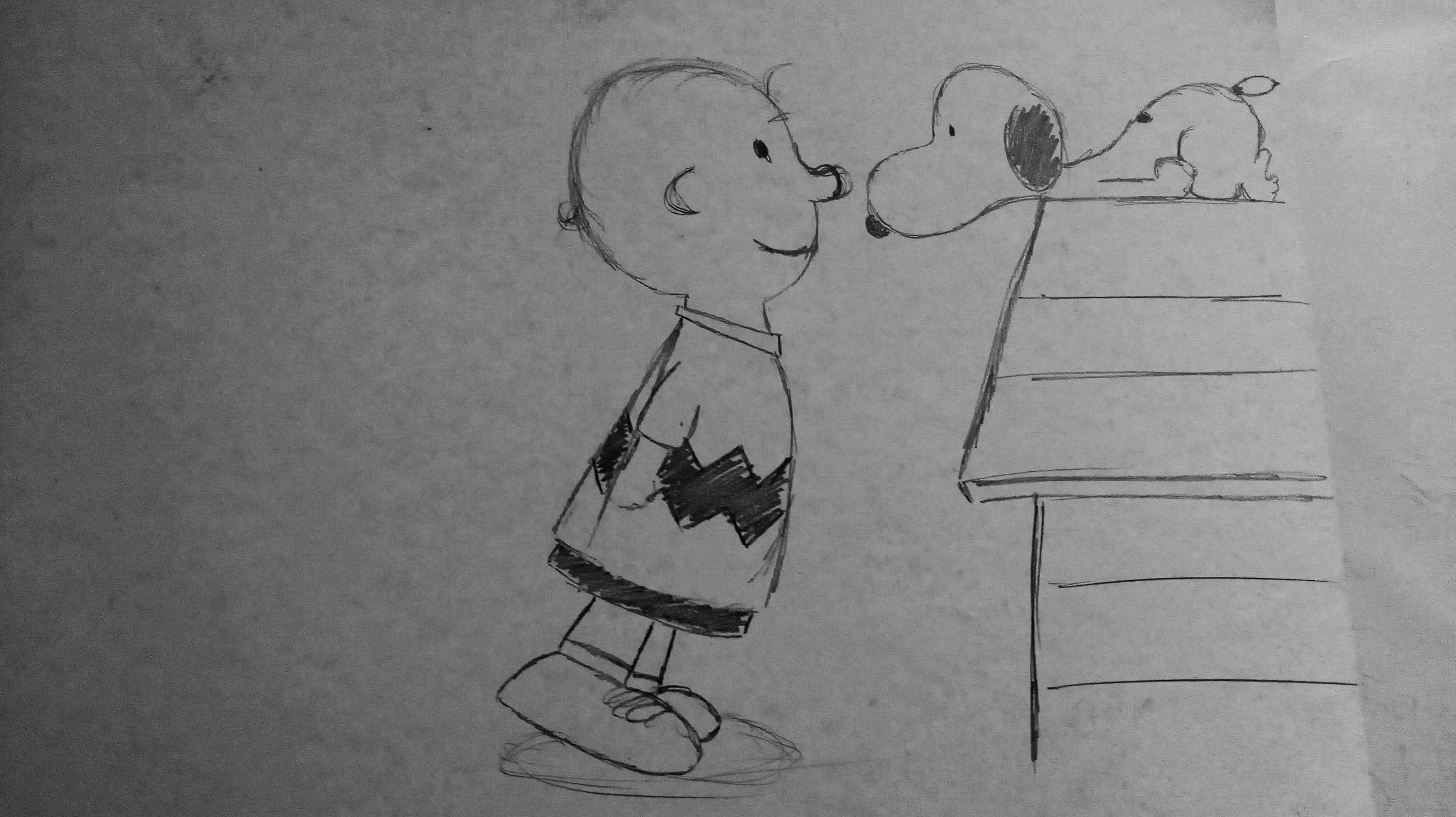 A quick sketch of Charlie Brown and Snoopy from the Peanuts comic strips I did whilst waiting for something to finish.