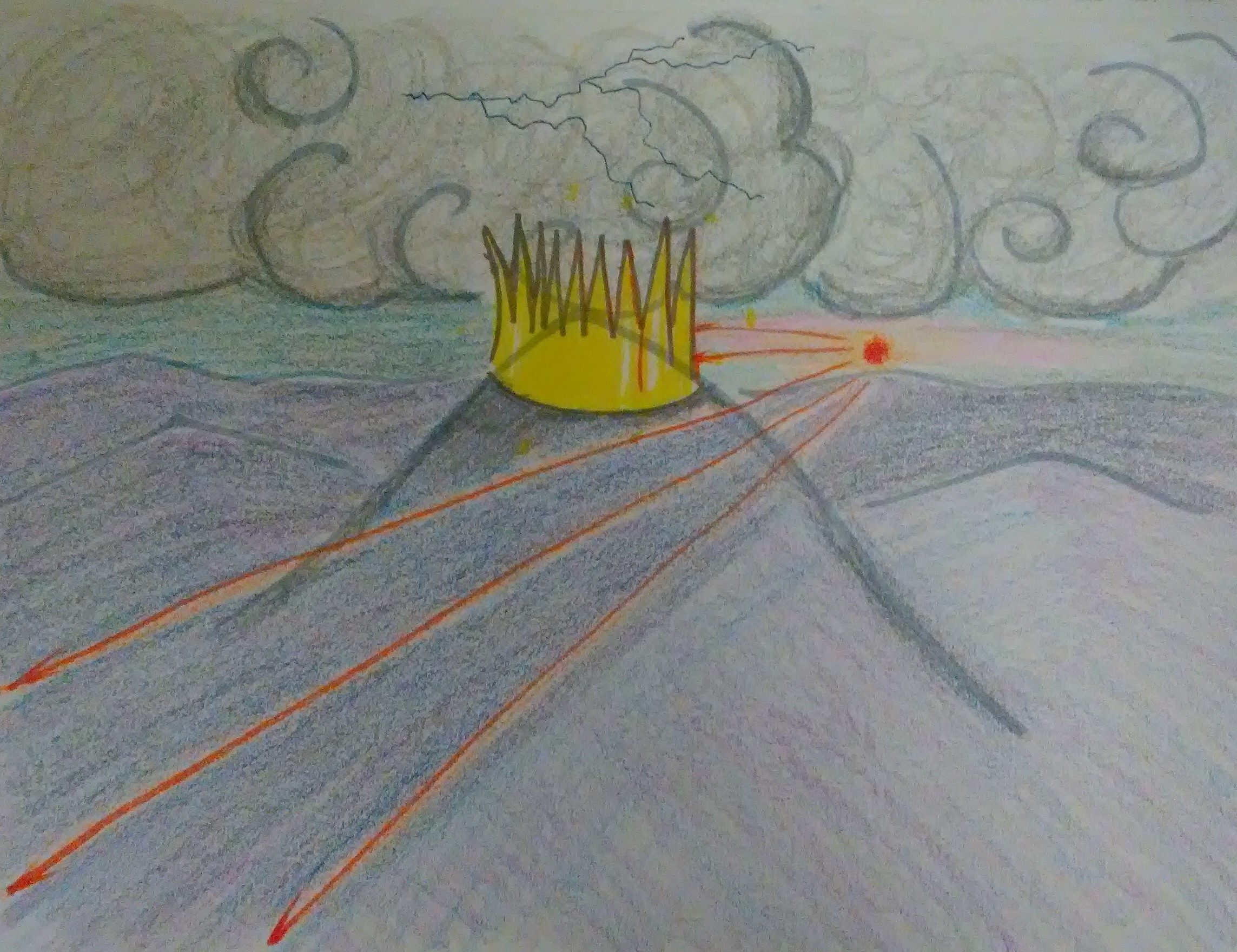 Stuck in my headribbonwriggles (49)in #drawing • 8 years ago I woke up this morning with a song stuck in my head. I don't understand the lyrics (they're in Lithuanian, haha!), but to me the music sounds like an epic sunset. With a thunderstorm. And yes, that mountain is wearing a crown. #creativity #art #song #synesthesia