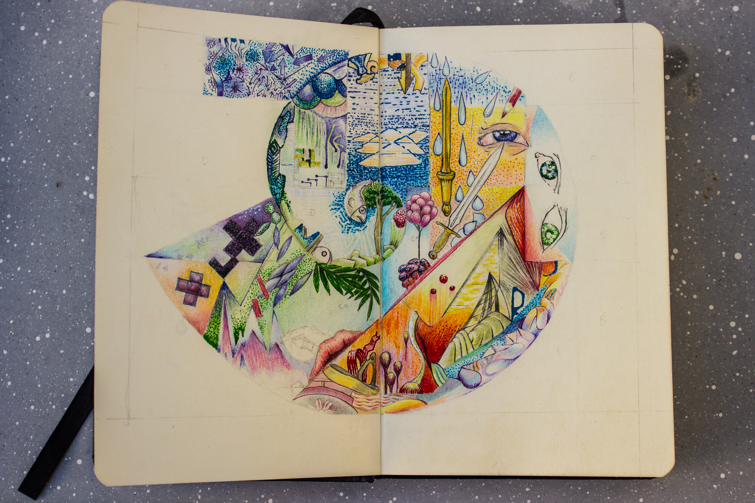 Spiralwildonkey (25)in #drawing • 7 years ago Made it just for killing time through classes... ended very colorful A6 moleskine Used every pen: fountain, ballpoint, watercolor, charcoal, etc. #bic #nonsense #moleskine #colorful