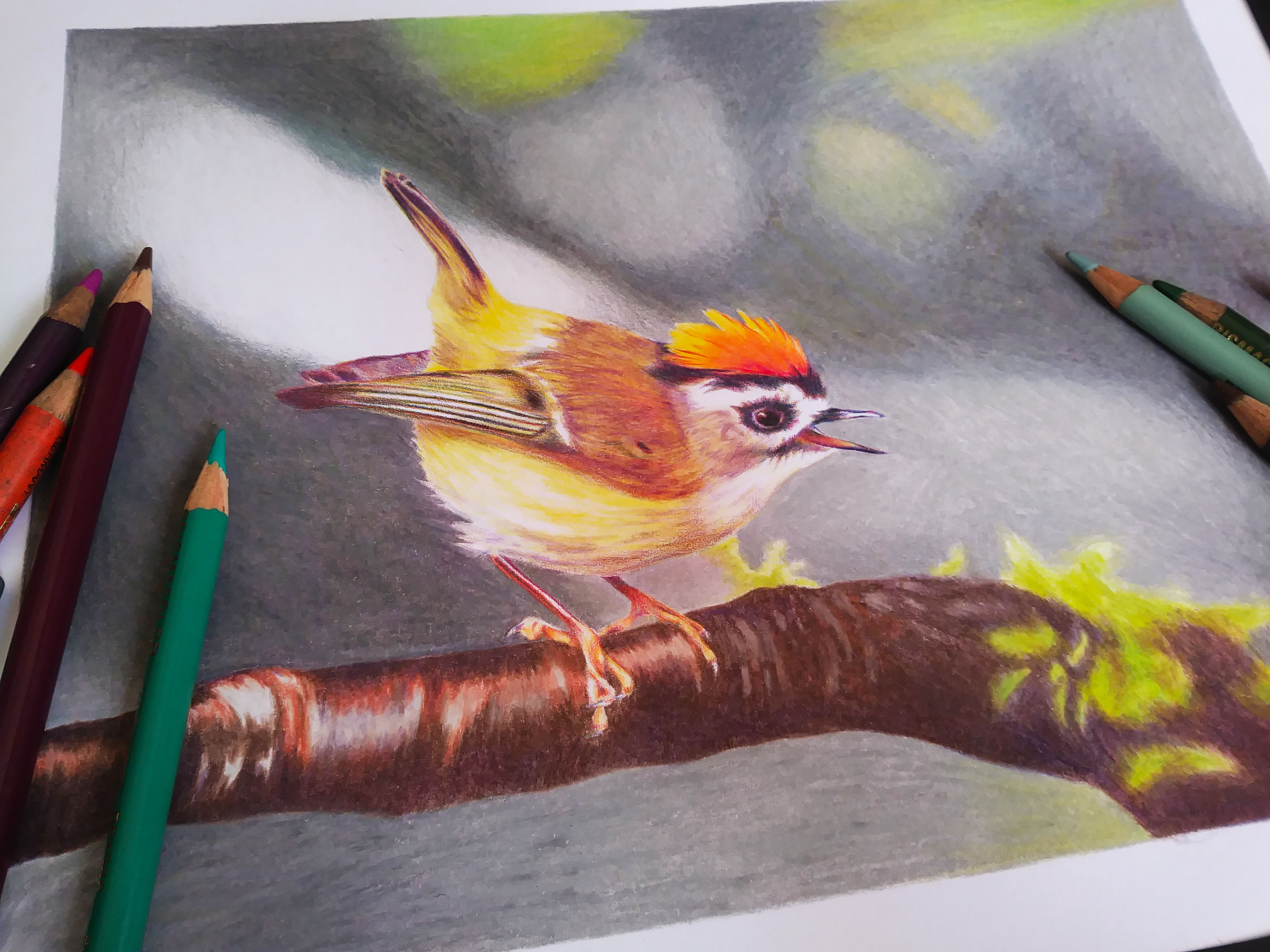 Hey! Esta vez les traigo un pajarito. Usé colores prismacolor premier para hacer este trabajo, me gusta mucho como quedó el pájaro, me encanta usar lápices de colores.